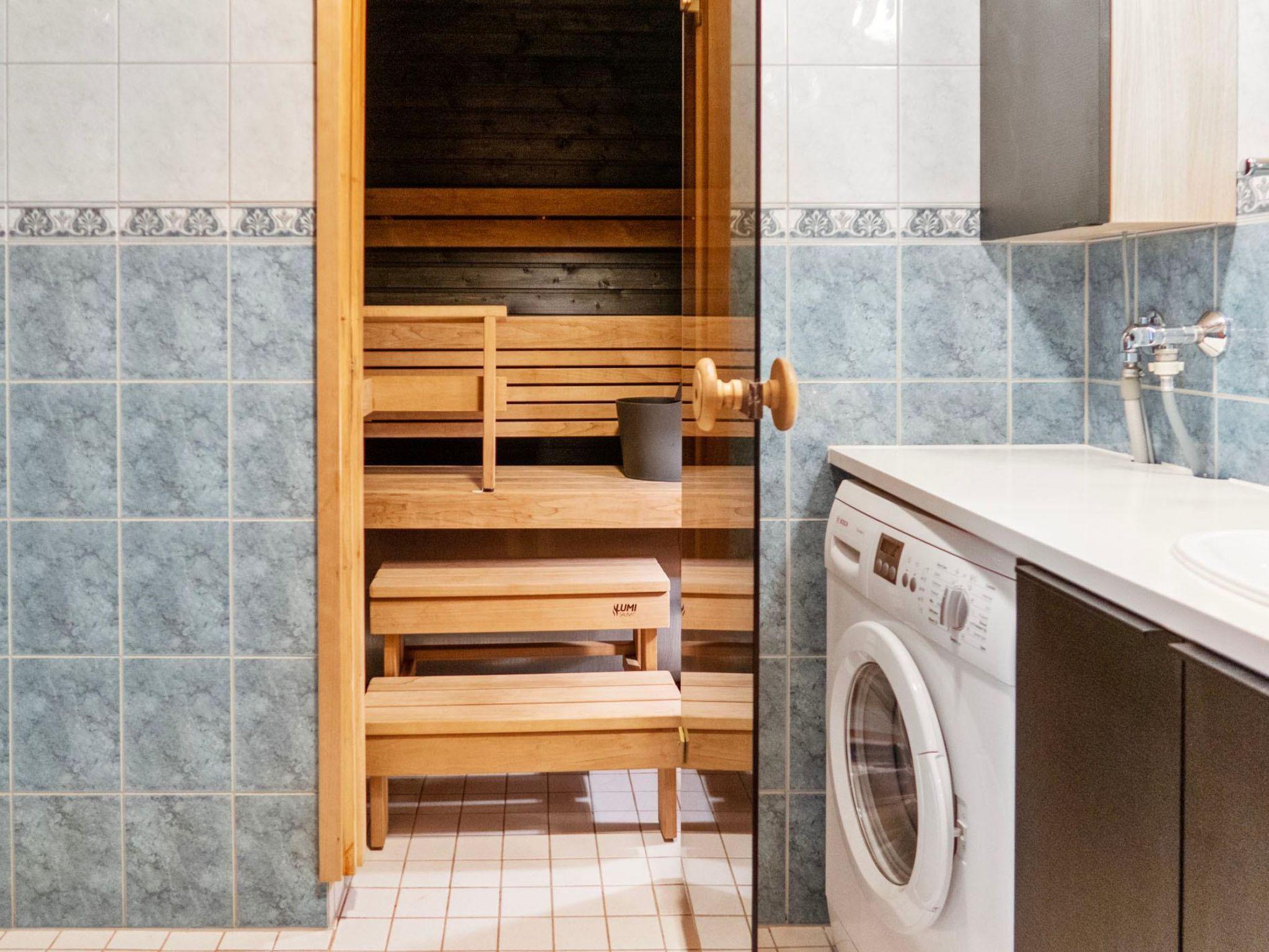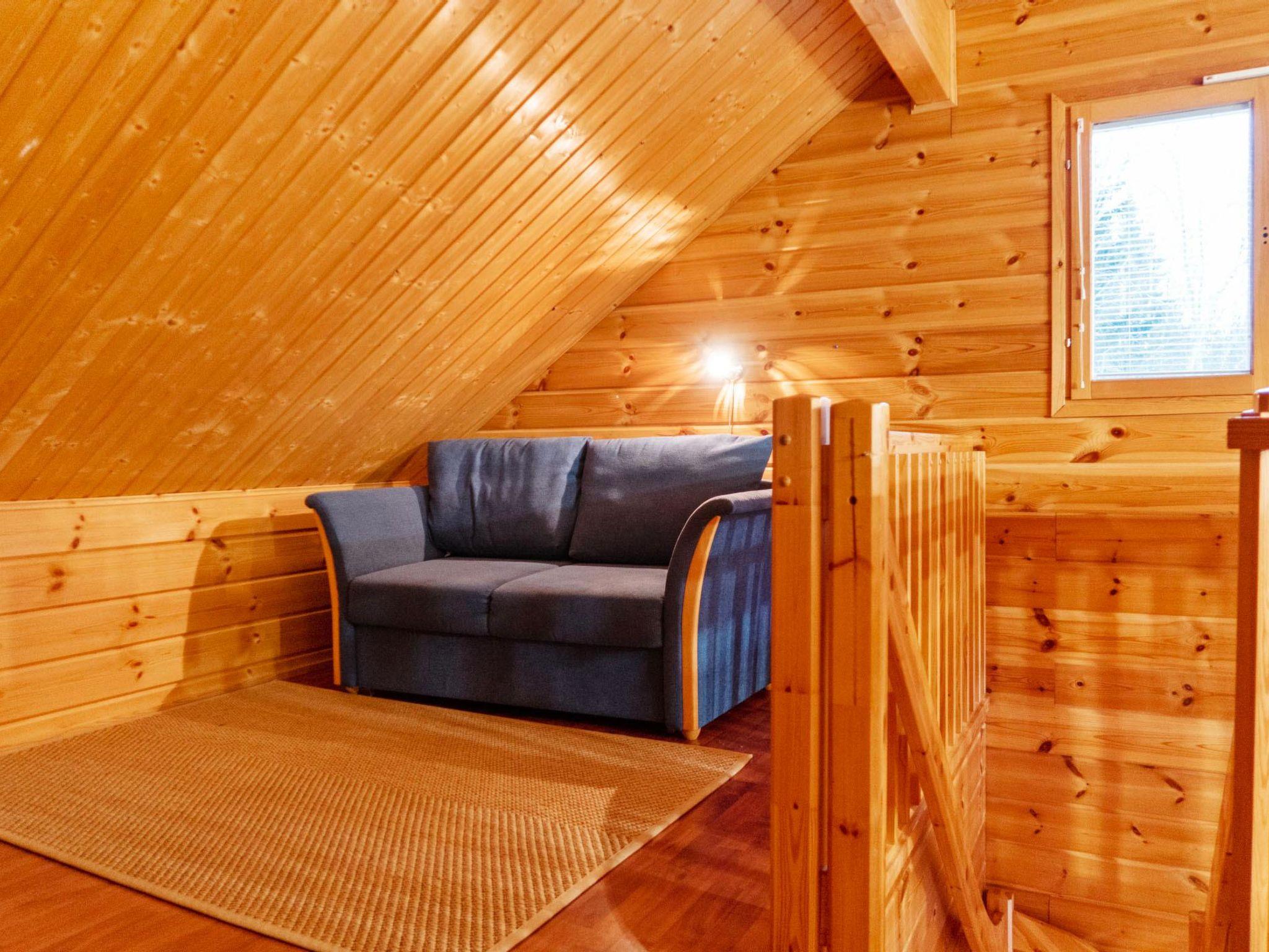 The area of ??the villa is 80 m², on two floors. Downstairs kitchen, bedroom with double bed (160 cm). Sauna, shower, separate wc. Upstairs, a bedroom with separate beds for 2 (2 x 80 cm), a loft hall with a sofa bed for 1-2 (width 120 cm) and wc.