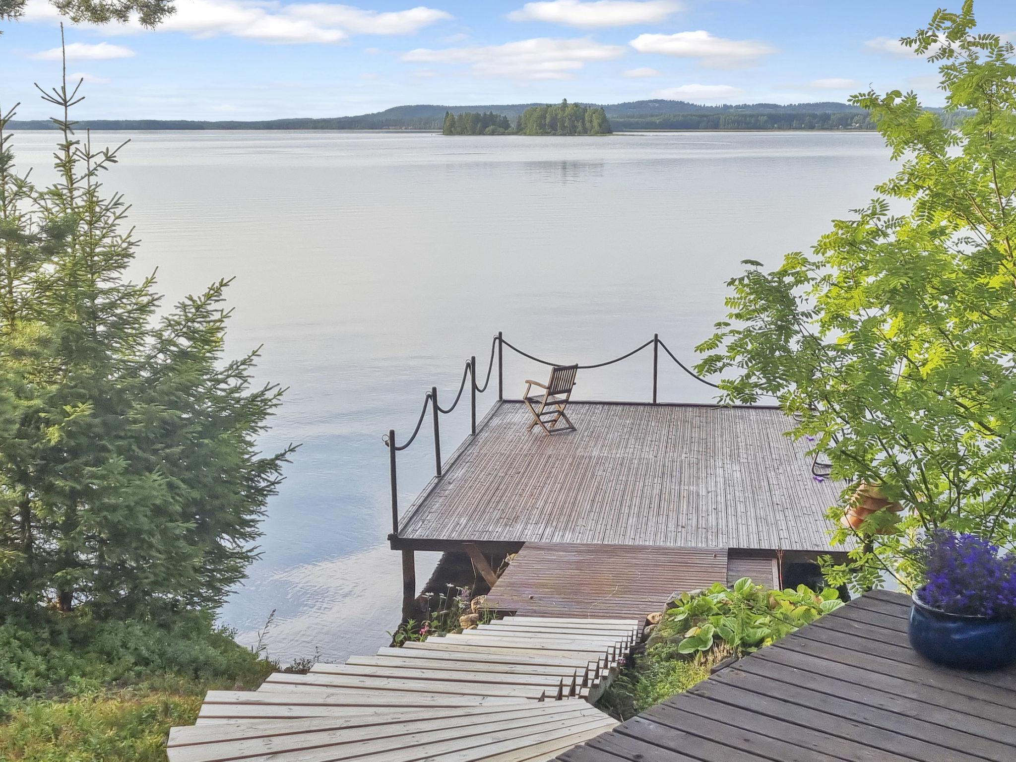 Cozy and atmospheric log villa, built in 1999. Location on own quiet lakeside plot in Vuokatti, on the shore of Lake Nuasjärvi (distance to the lake from the cottage 30 m, length of the lake 30 km, width 5 km). The beach is deep, rocky shore, hard gravel/sand bottom. Own shoreline approx. 300 meters, large pier and rowing boat.