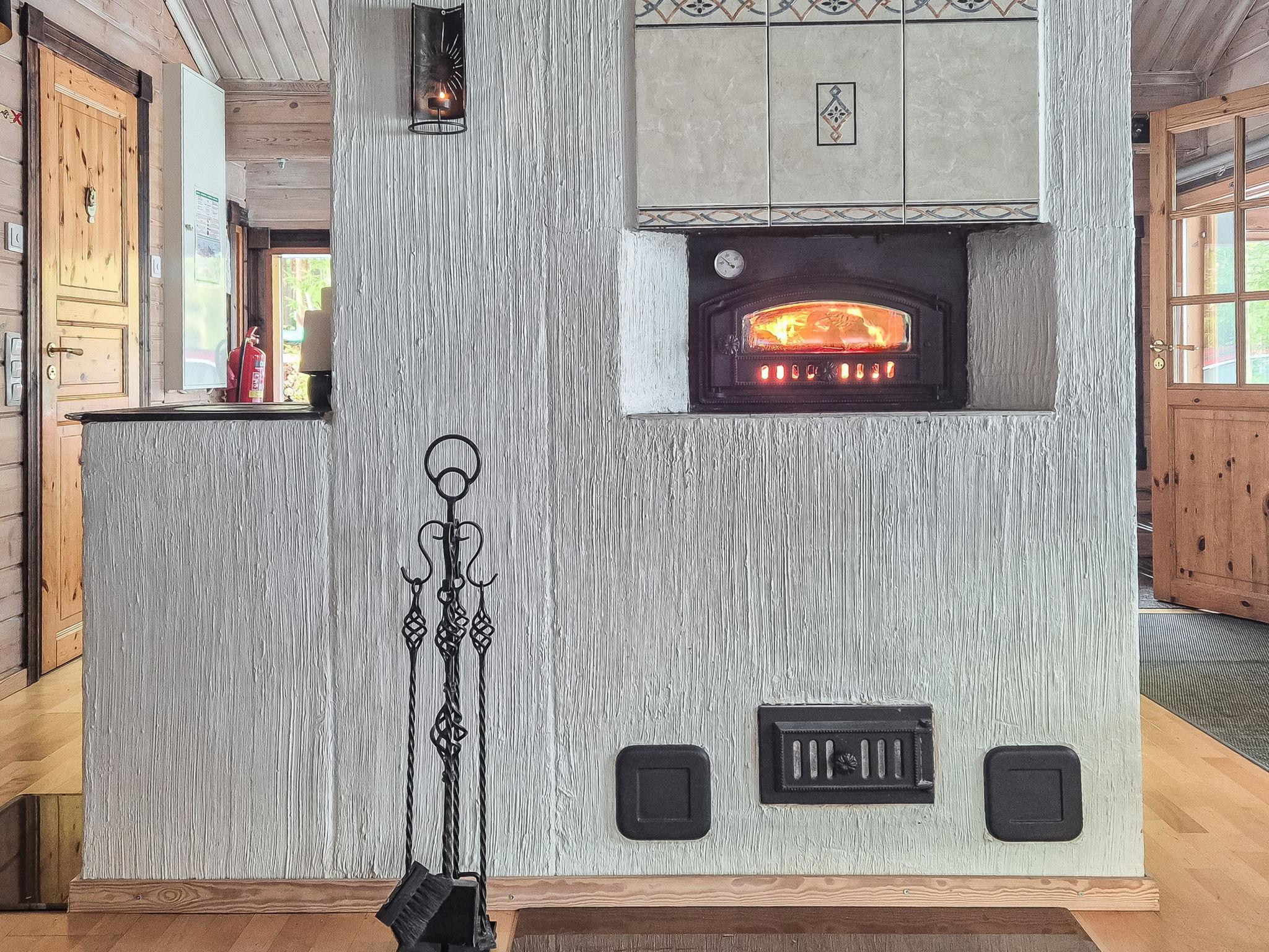 The cottage is 106 m², on two floors. In the spacious and bright living room, a dining set for 6-8, and a spacious plush sofa. In the living areas, a massive and atmospheric fireplace, hearth, and oven combination.