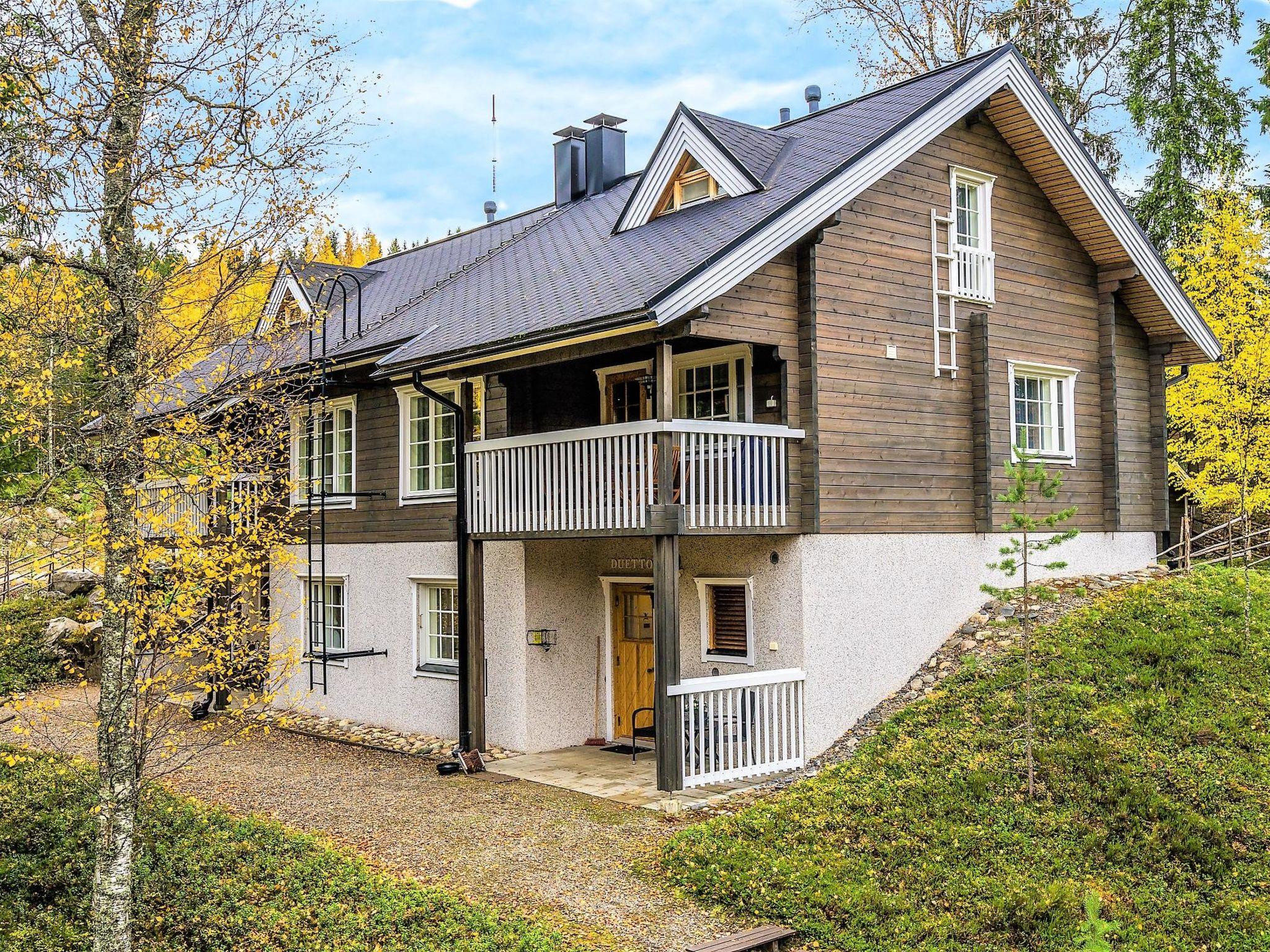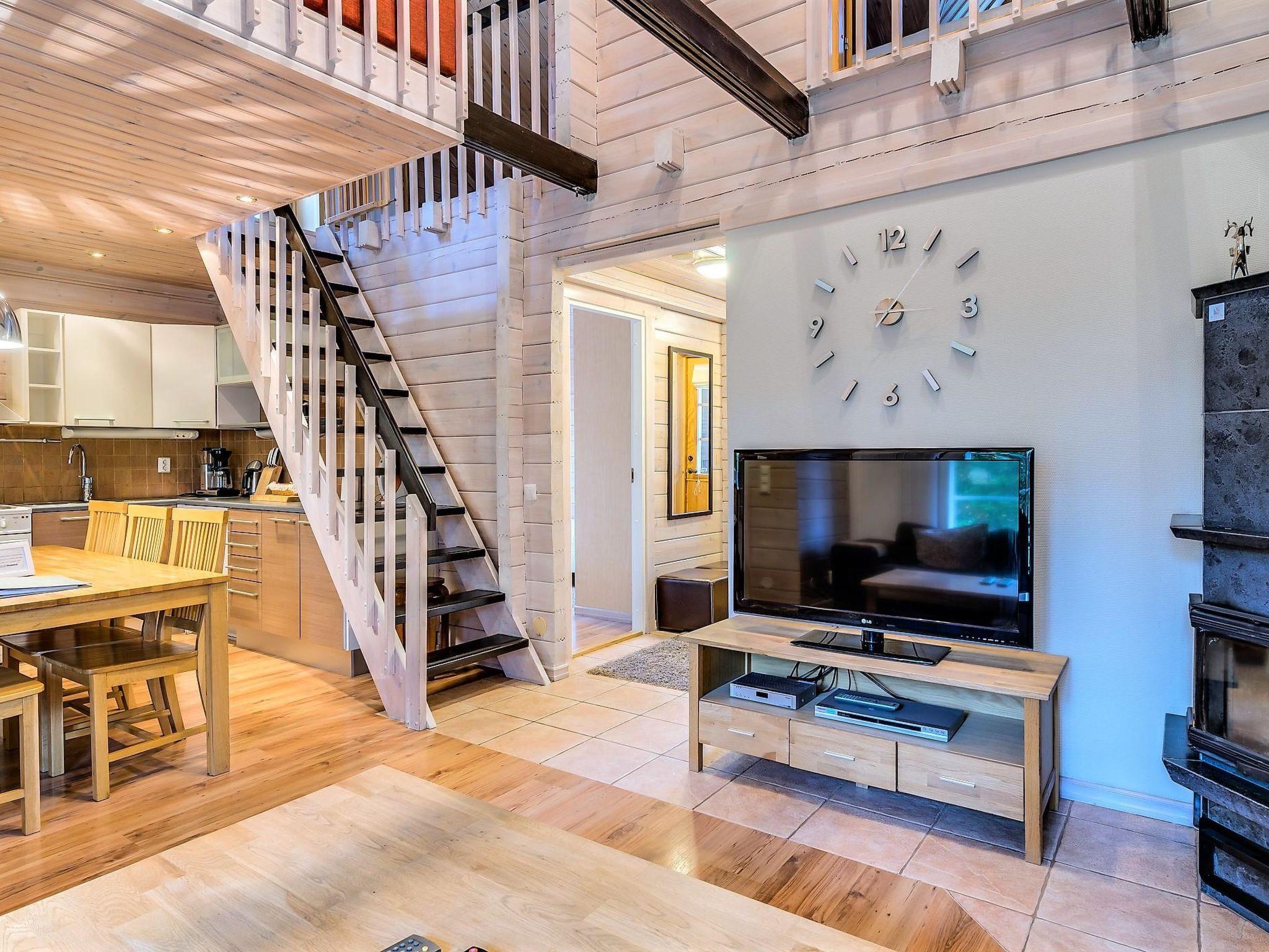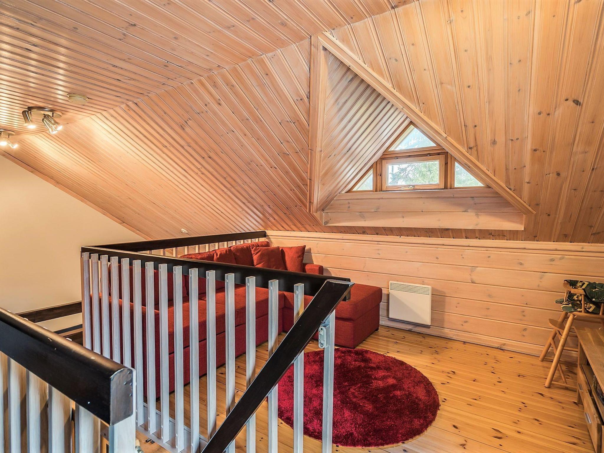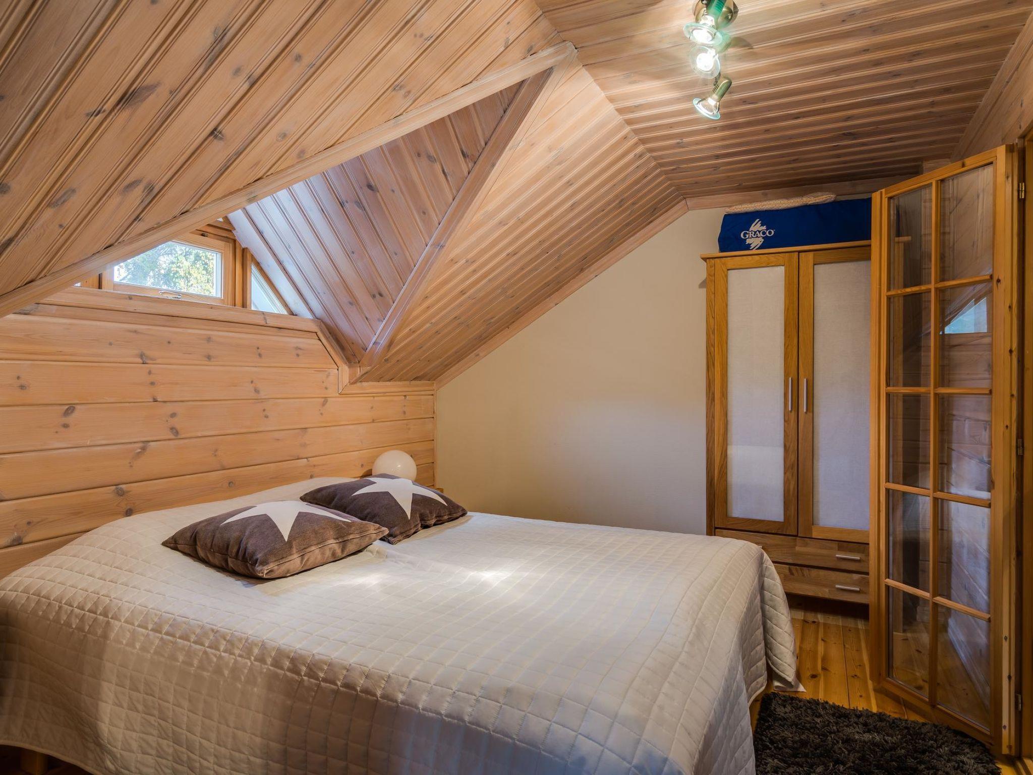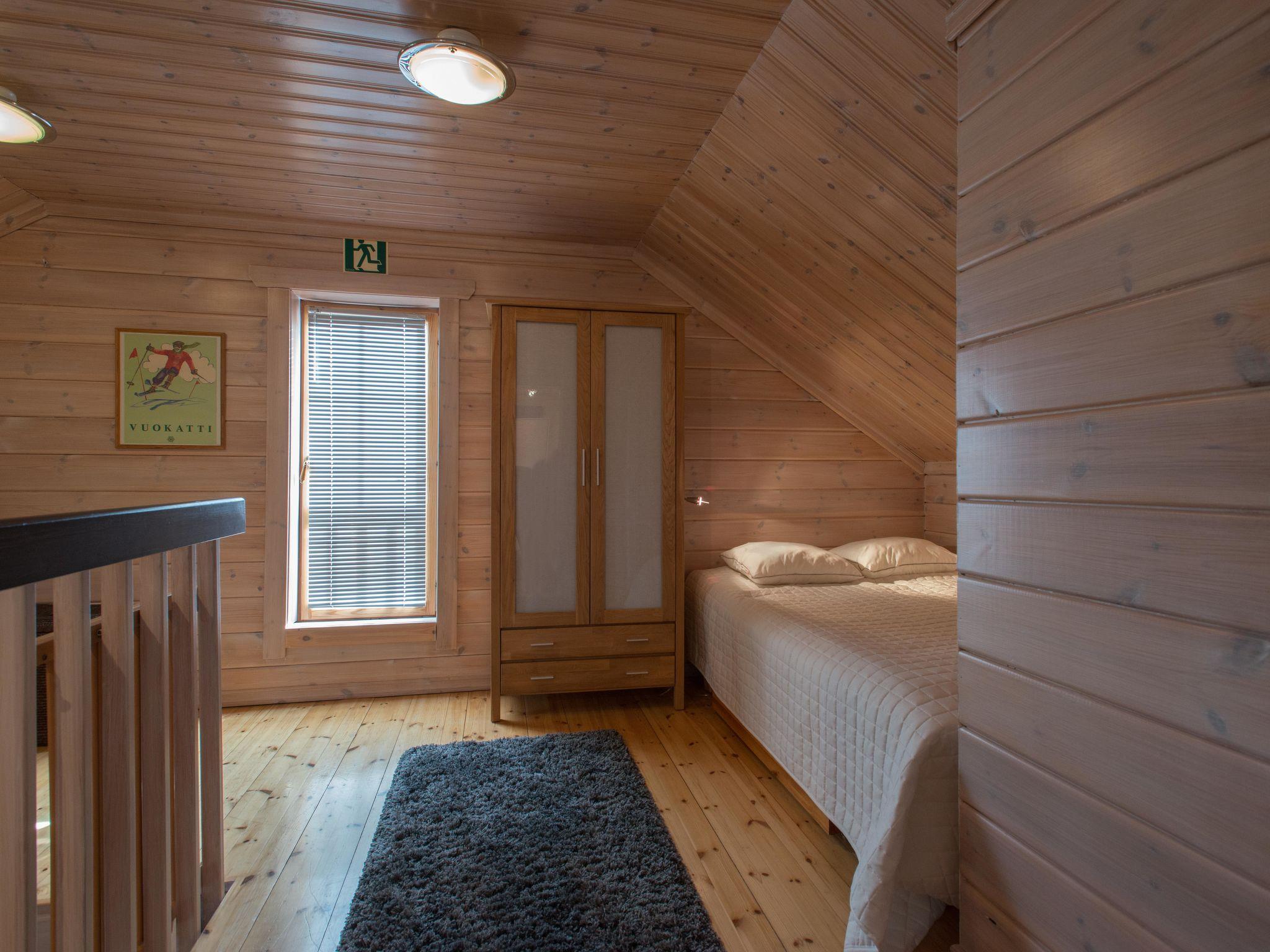 This semi-detached log holiday house located in Vuokatti ski centre was completed in 2003. Floor area 82m² , loft 27m². On ground floor there is combined living room & kitchen, bedroom with 2 beds, sauna (electric heating), washroom and toilet. Upstairs there is bedroom with 2 beds, loft vestibule with 140 cm wide bed and sofa bed and toilet. Bed and chair for a baby.
