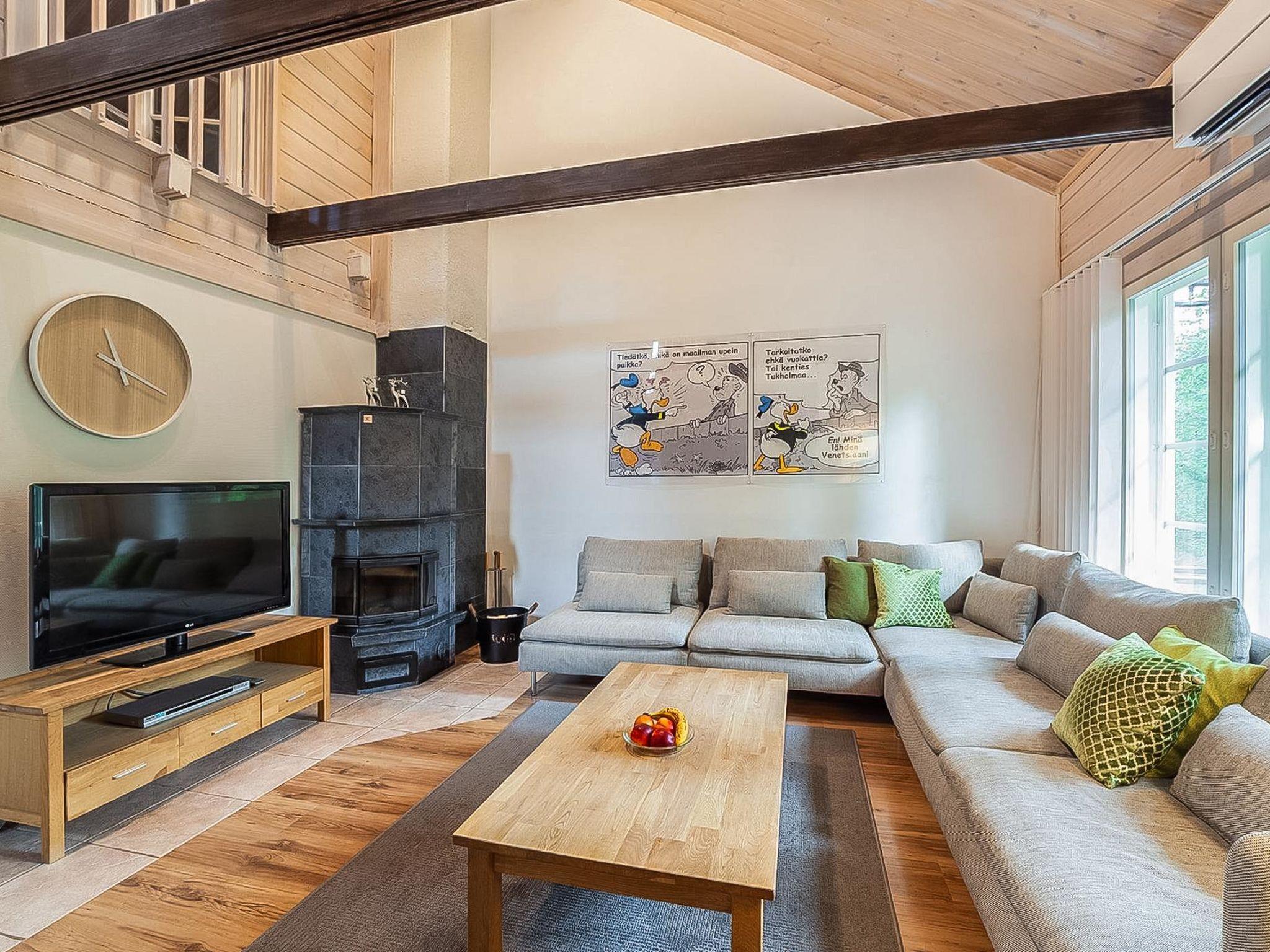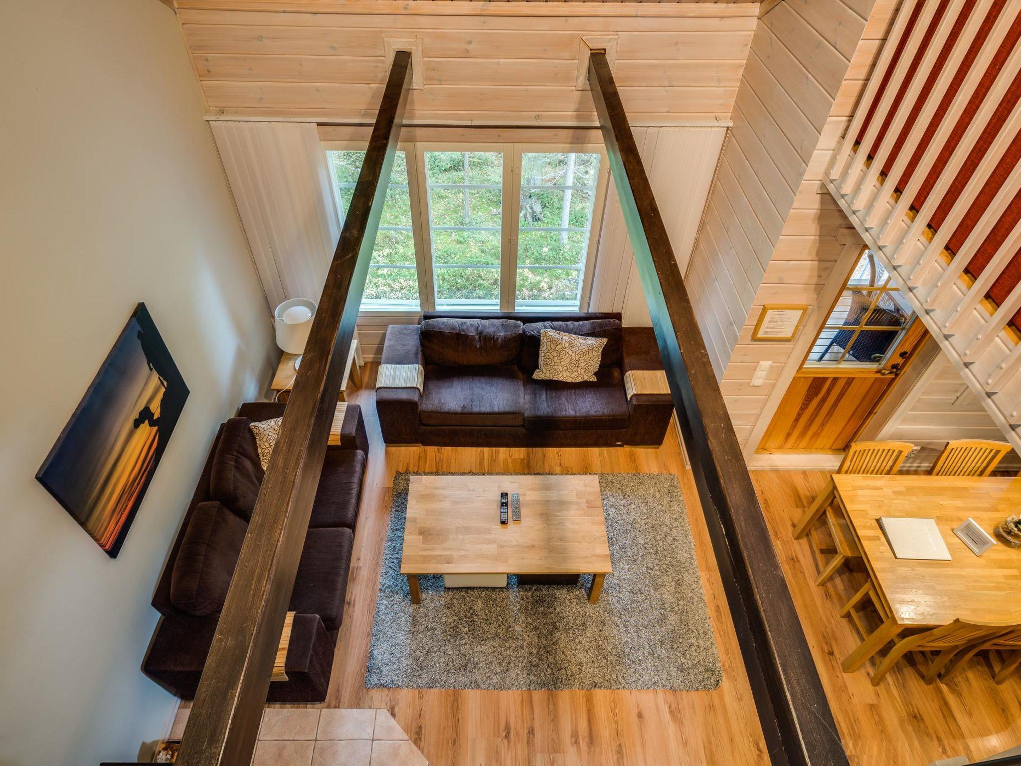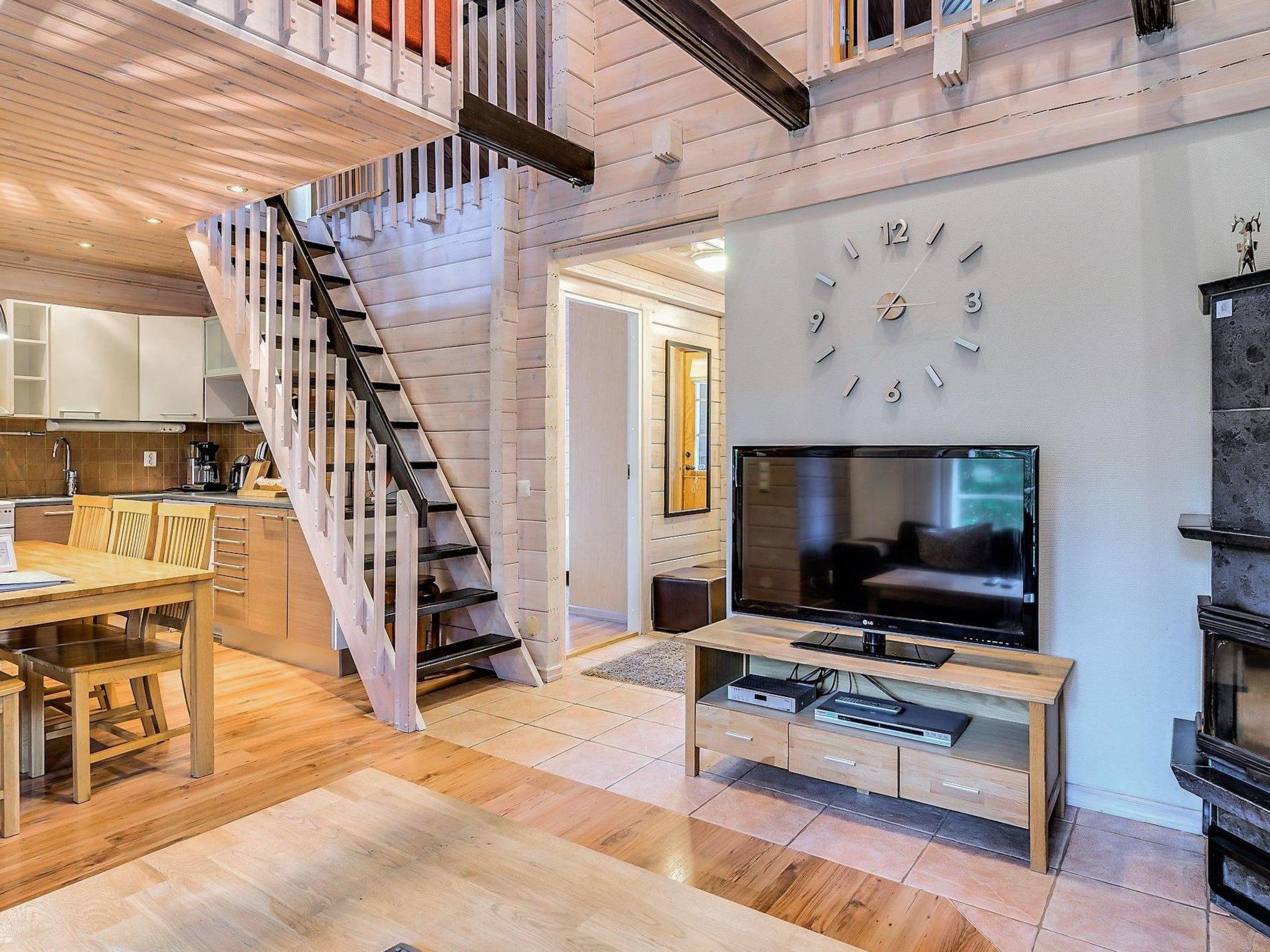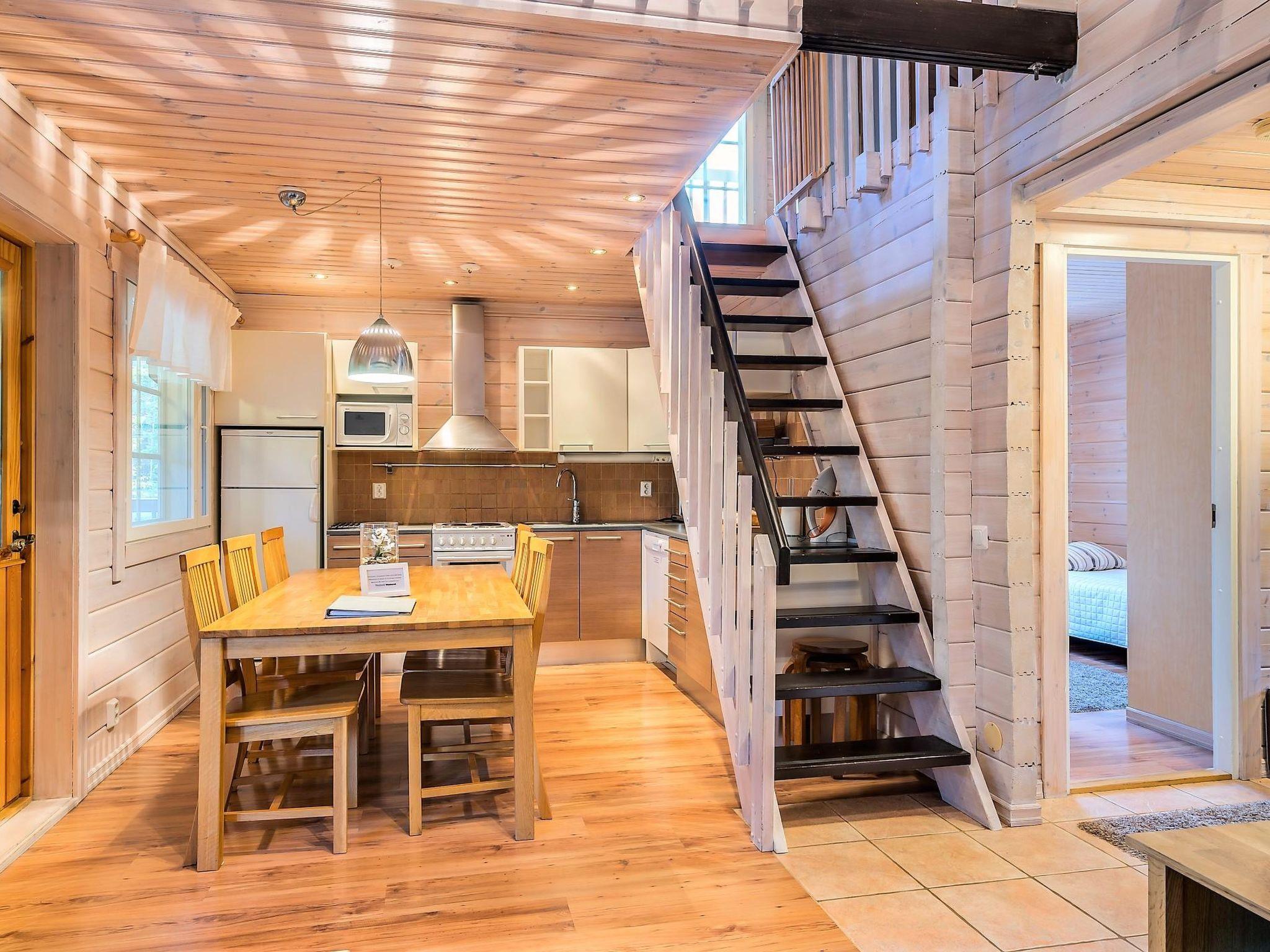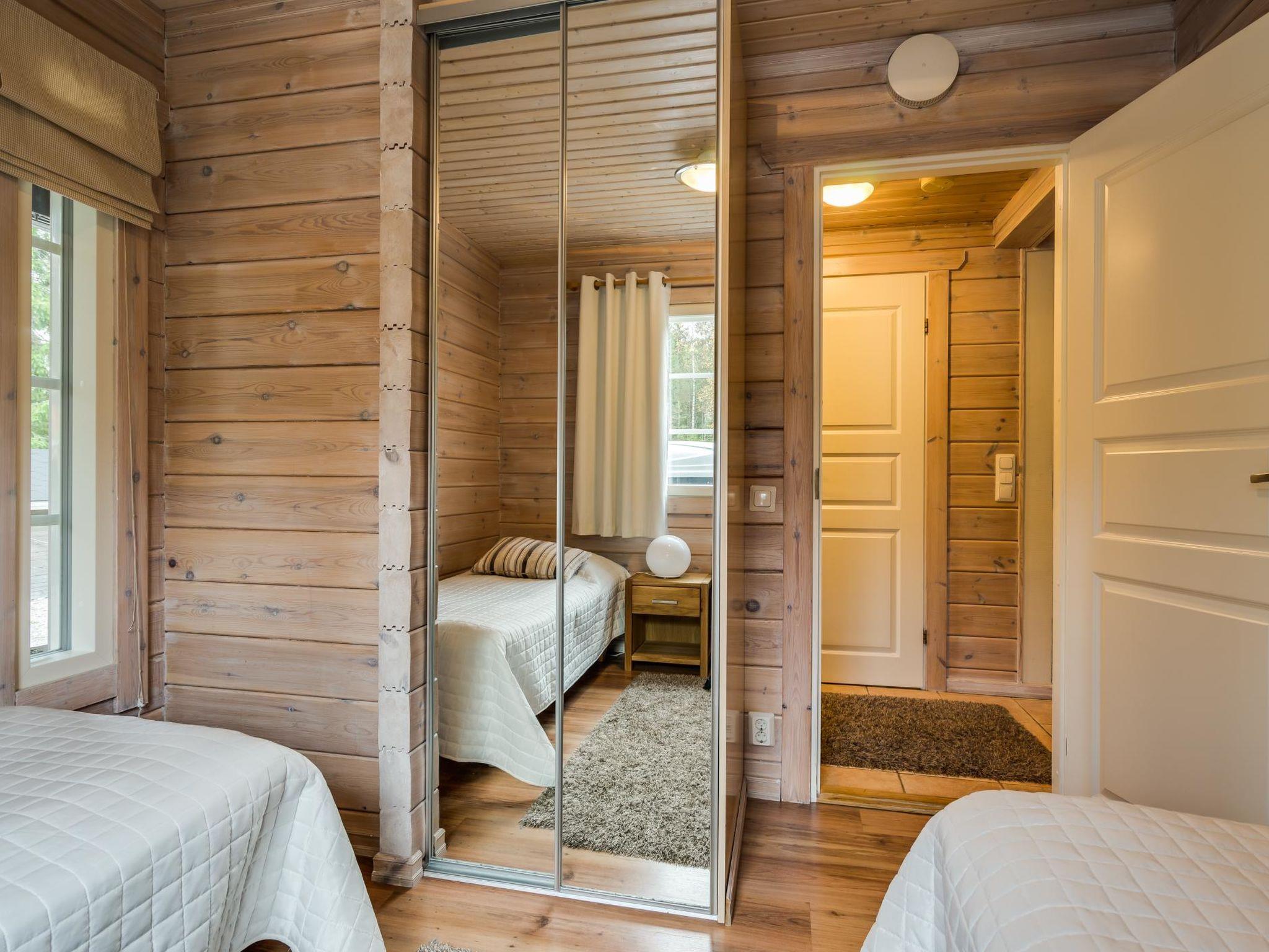 This semi-detached log holiday house located in Vuokatti ski centre was completed in 2003. Floor area 82m² , loft 27m². On ground floor there is combined living room & kitchen, bedroom with 2 beds, sauna (electric heating), washroom and toilet. Upstairs there is bedroom with 2 beds, loft vestibule with 140 cm wide bed and sofa bed and toilet. Bed and chair for a baby.