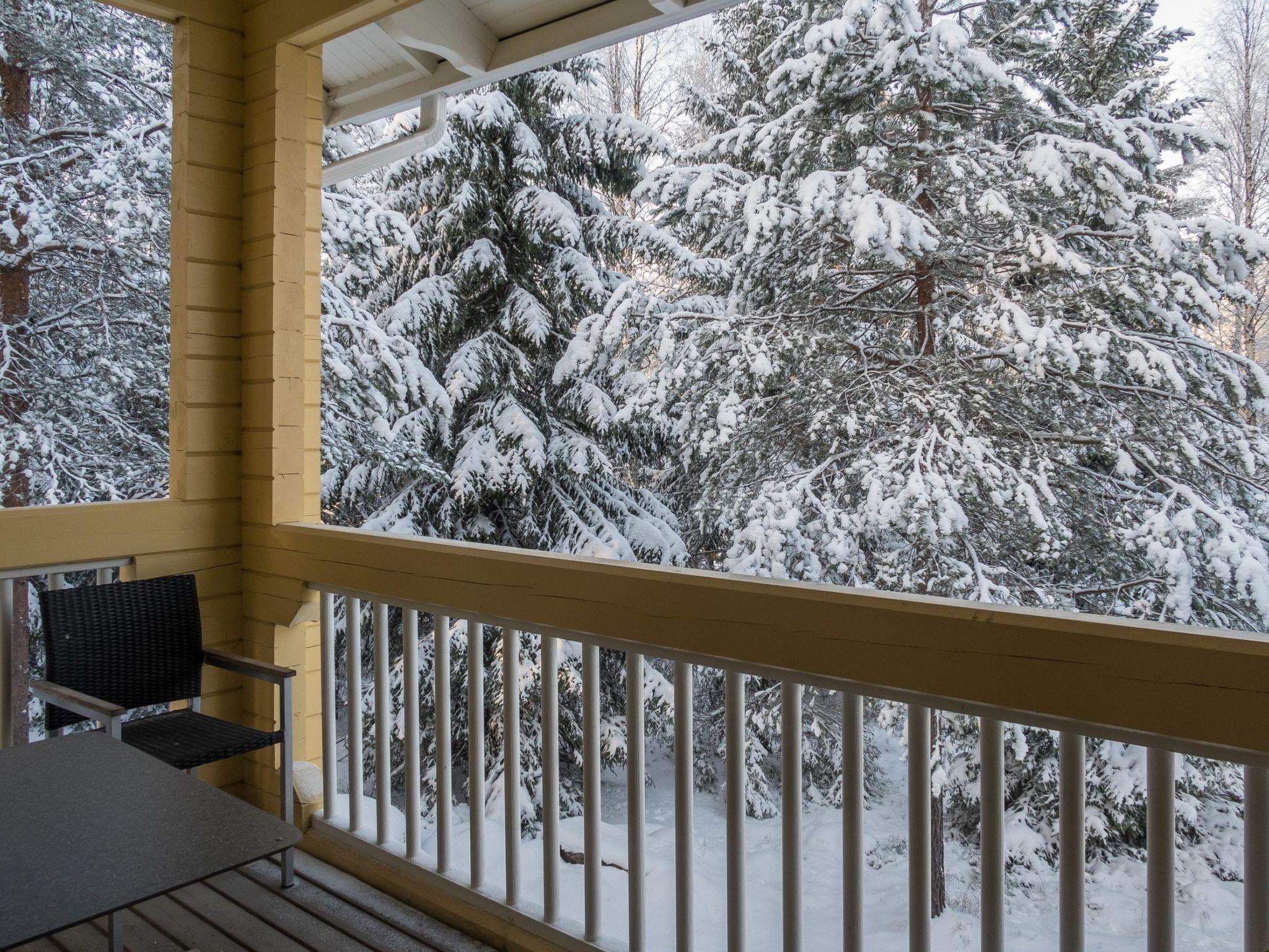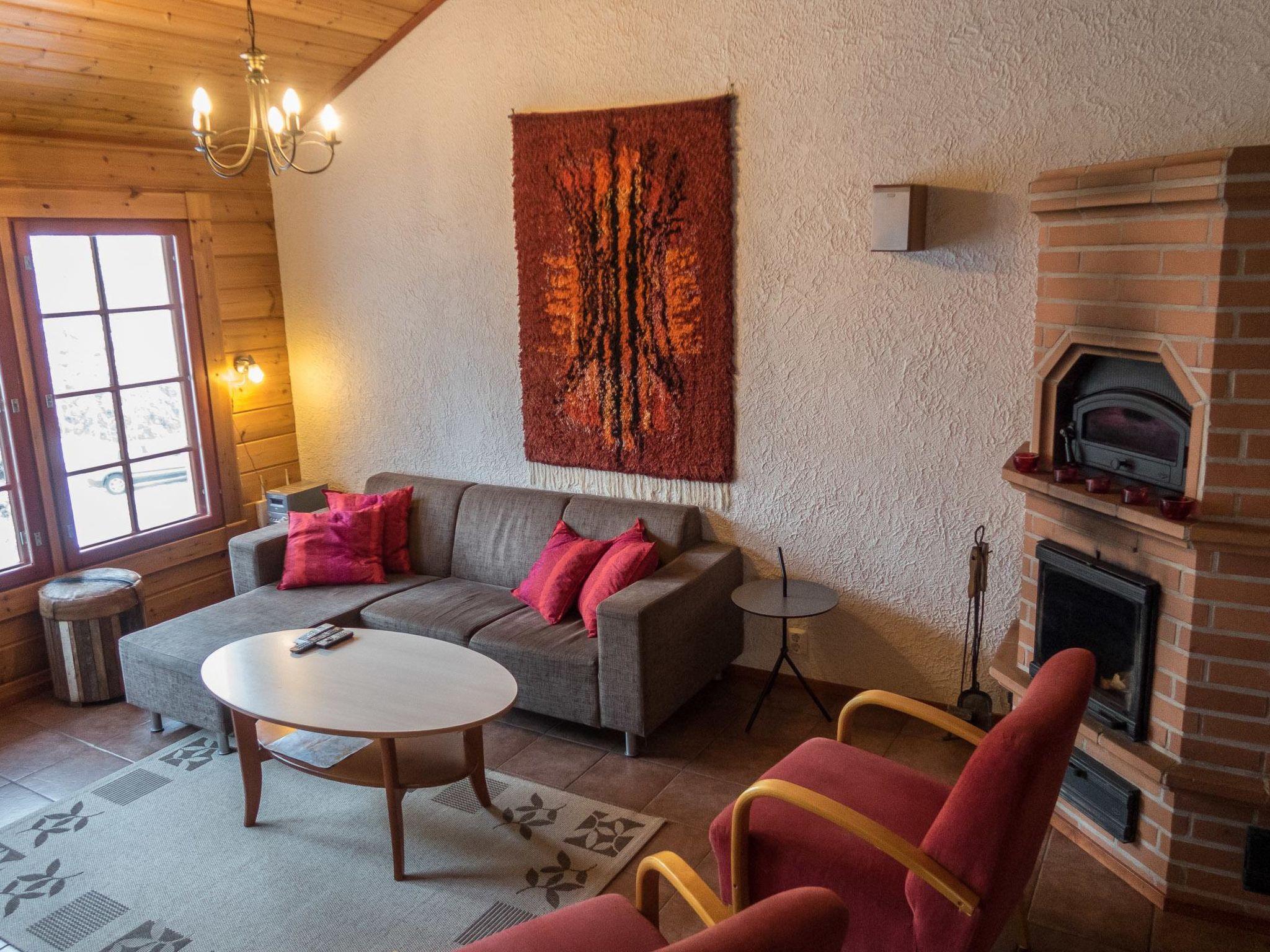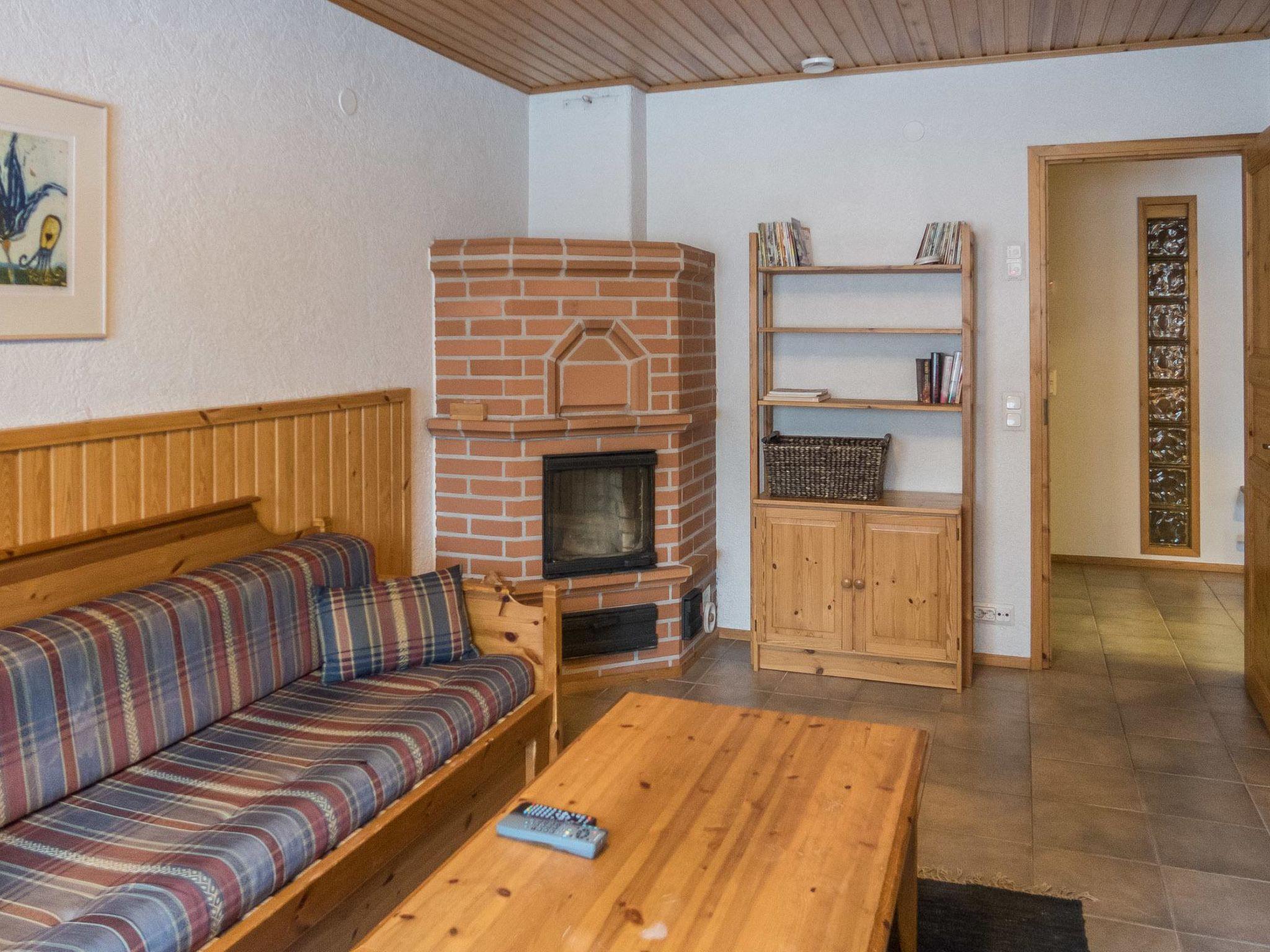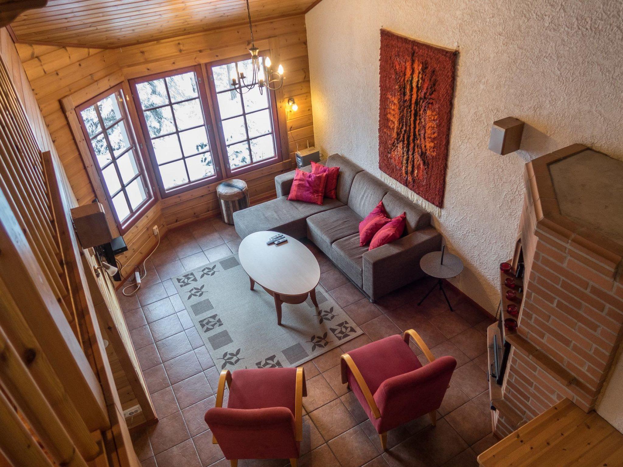 This apartment in log-made semi-detached house in Vuokatti ski slope area was completed in 1999. Floor area 90 m², loft 20 m². On the ground floor there is fireroom with sofa bed for 1-2 persons and bedroom for three persons with bunkbed (lower bed can be enlarged for two). Sauna (electric heating), washroom, toilet. Upstairs there is kitchen, living room, one bedroom with twin bed and shower/toilet. Loft with separate beds for three. Balcony. Wifi.