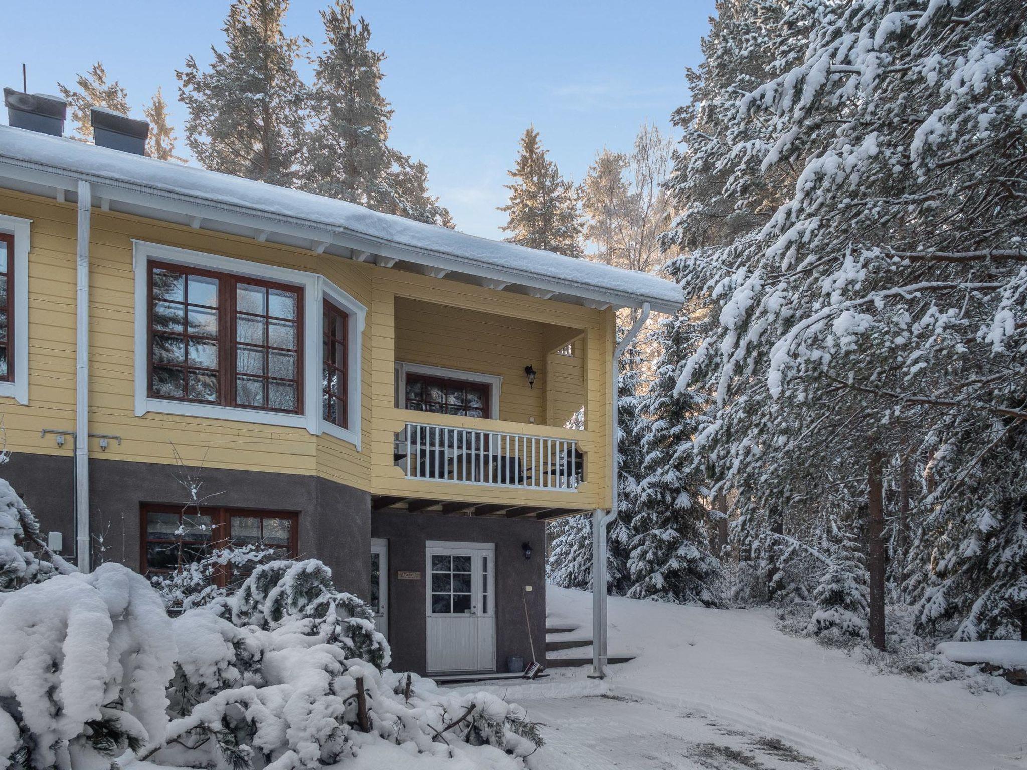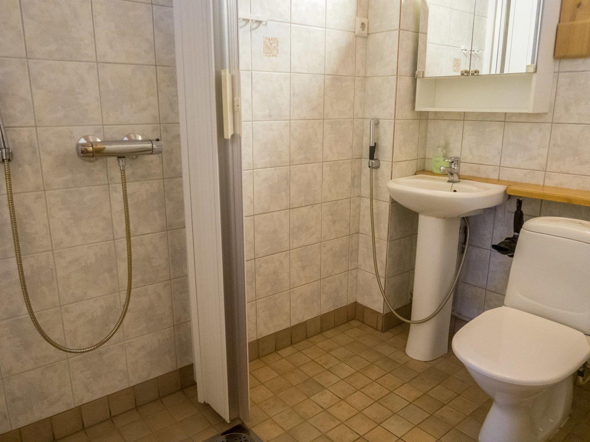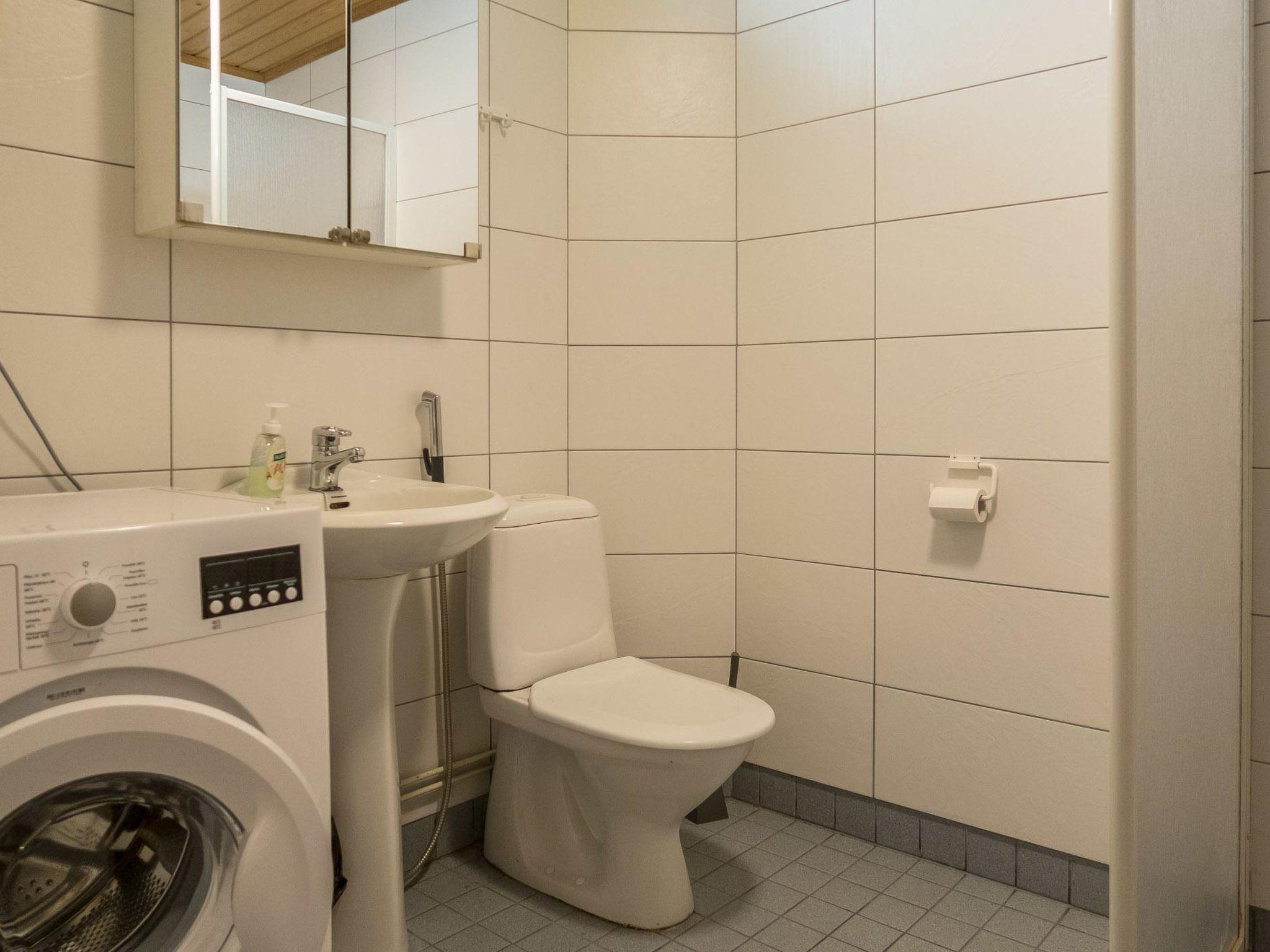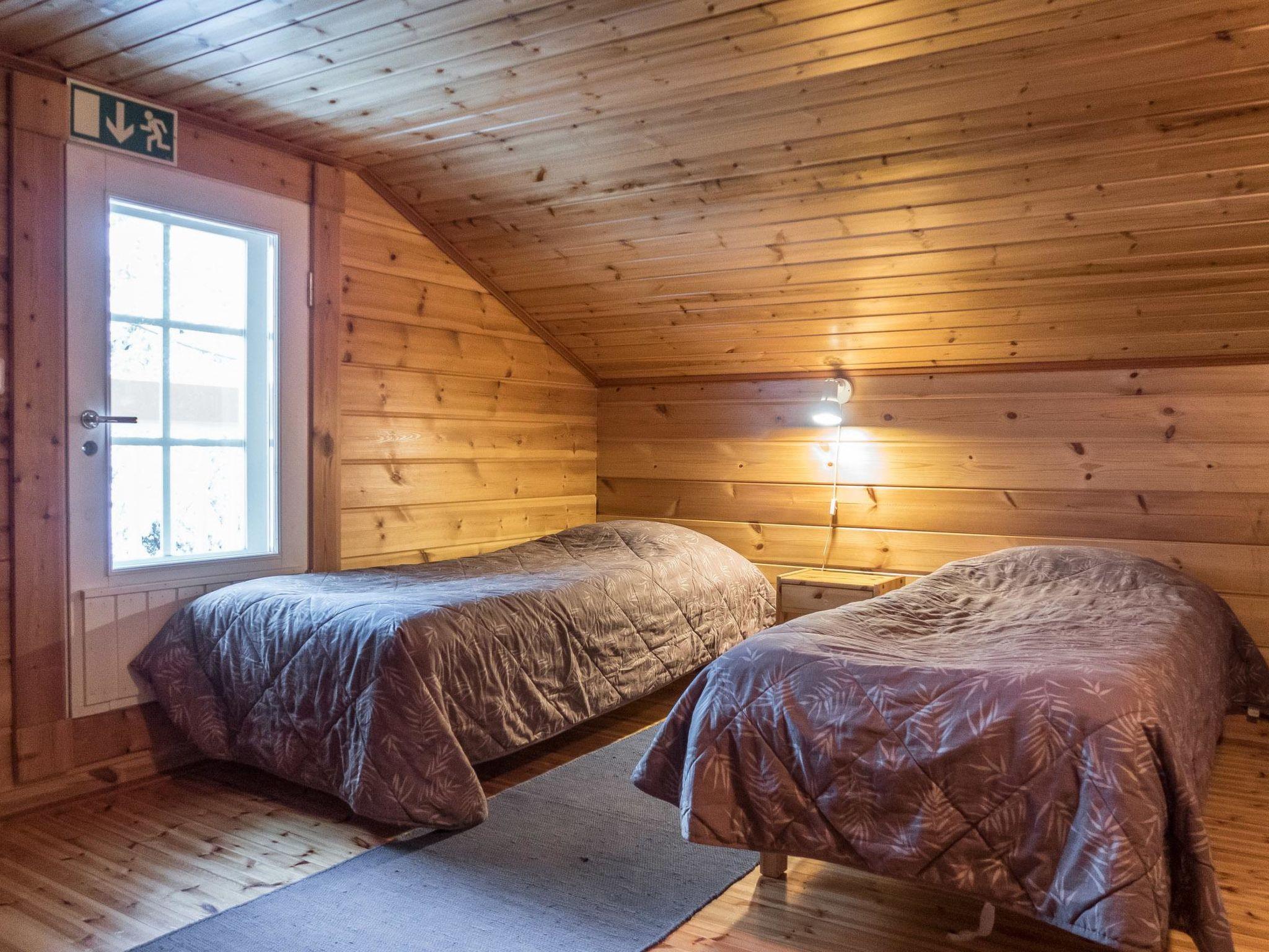This apartment in log-made semi-detached house in Vuokatti ski slope area was completed in 1999. Floor area 90 m², loft 20 m². On the ground floor there is fireroom with sofa bed for 1-2 persons and bedroom for three persons with bunkbed (lower bed can be enlarged for two). Sauna (electric heating), washroom, toilet. Upstairs there is kitchen, living room, one bedroom with twin bed and shower/toilet. Loft with separate beds for three. Balcony. Wifi.