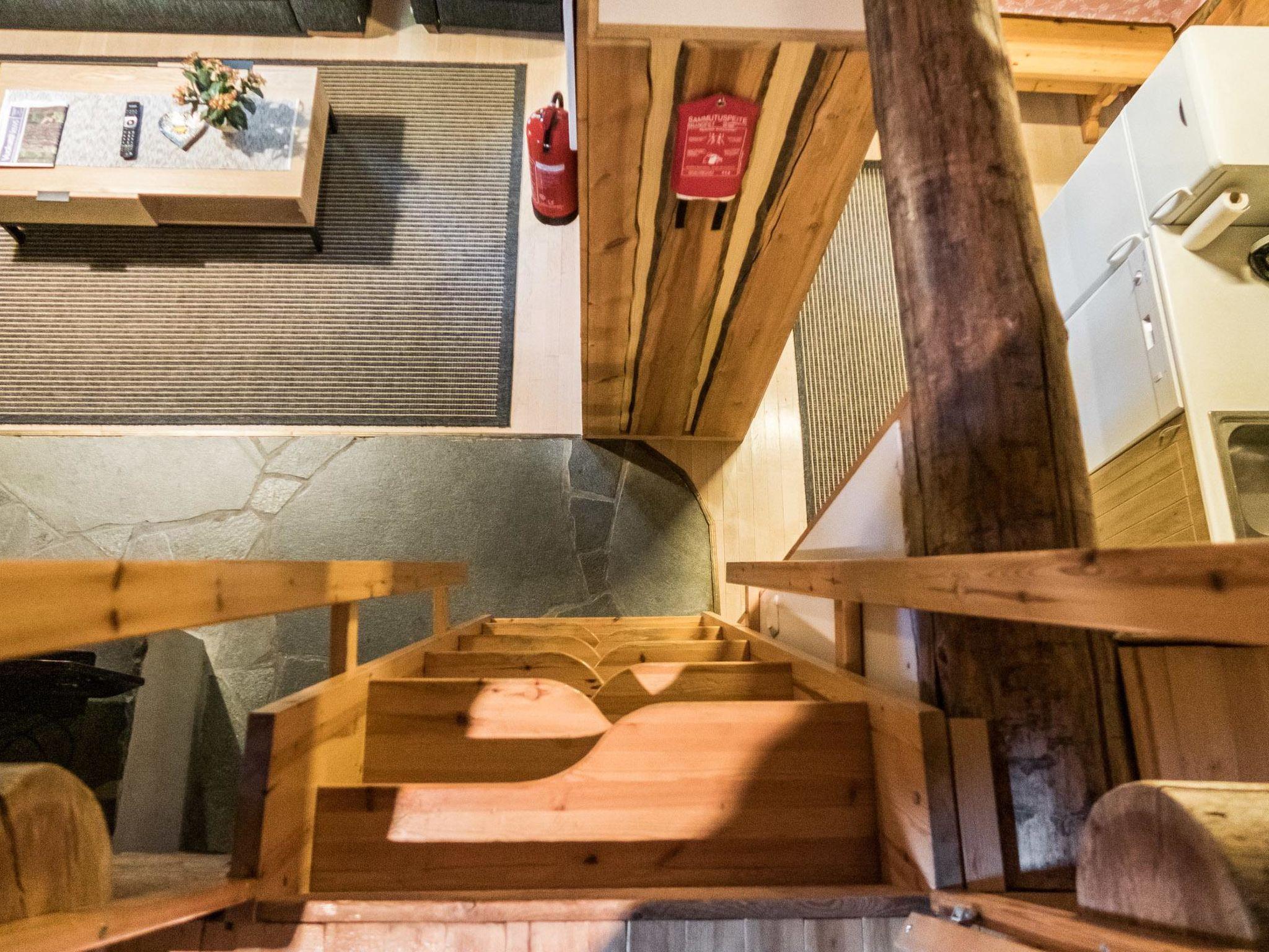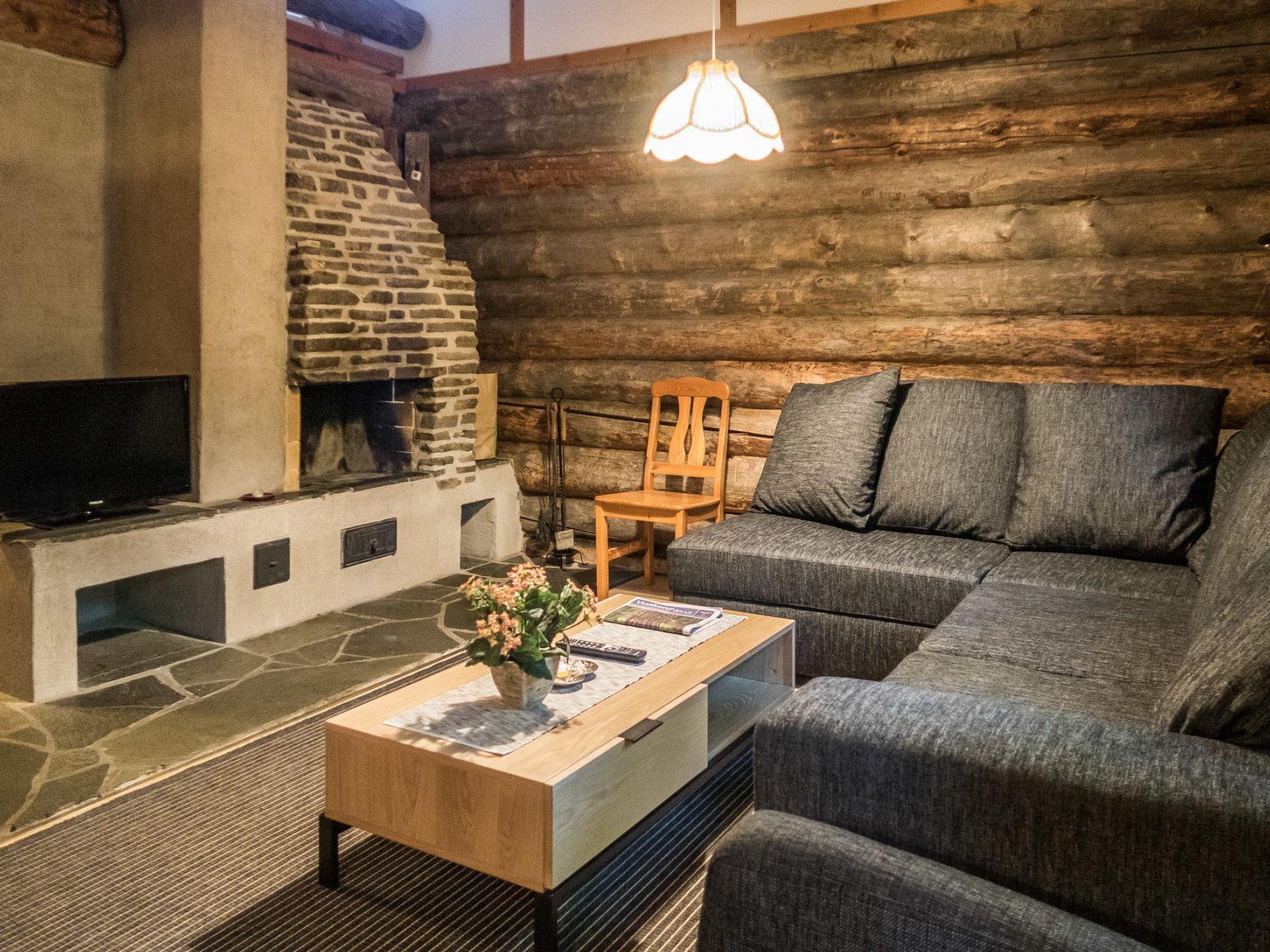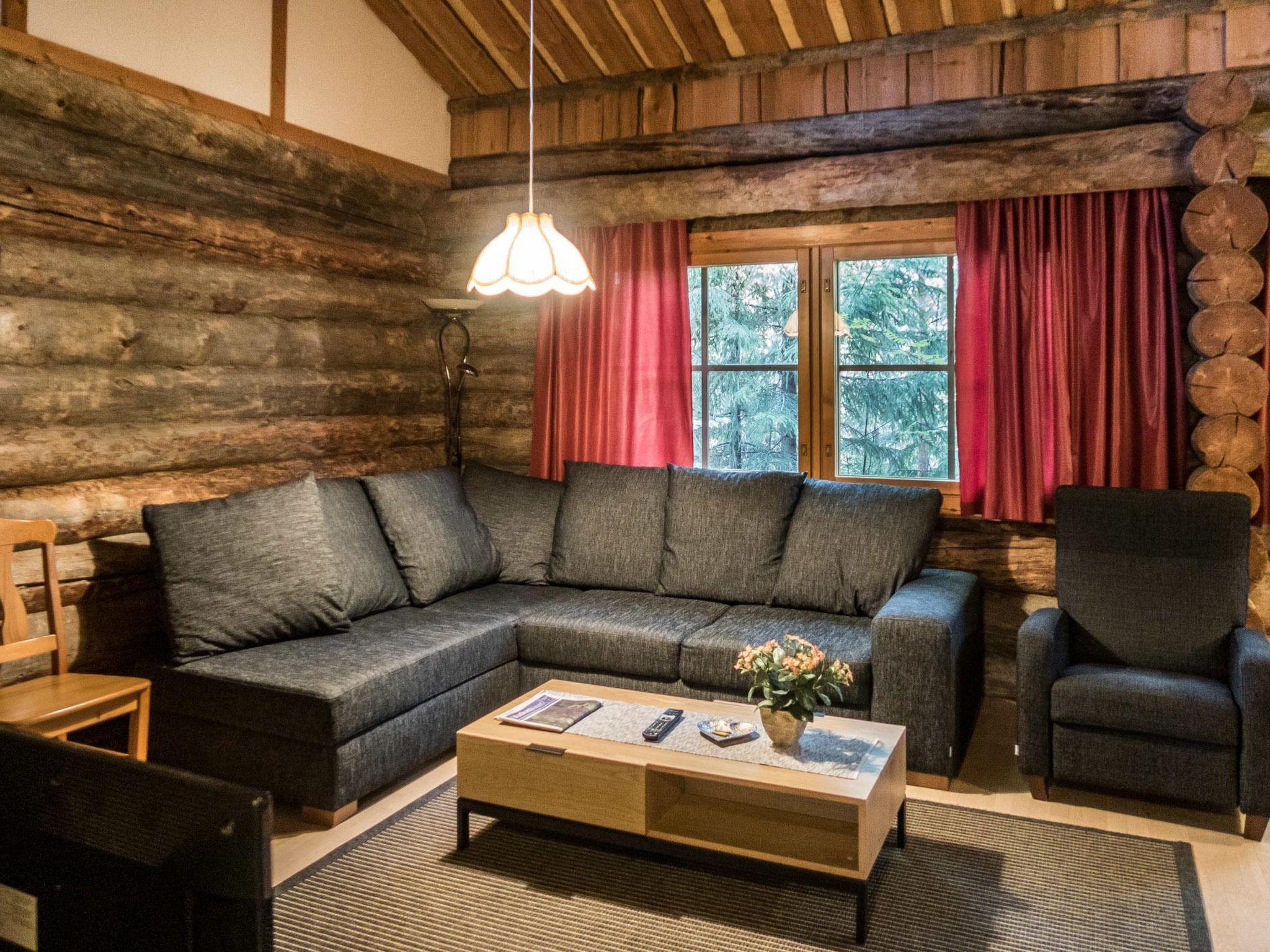 This apartment in semi-detached log house located in Vuokatti ski centre was completed in 1990. Floor area 52 m², loft 23 m². Combined living room & kitchen, bedroom: 2 beds, loft (23 m²): 4 beds (divided with one wall). Sauna (electric), washroom and toilet. Travel bed for a baby.