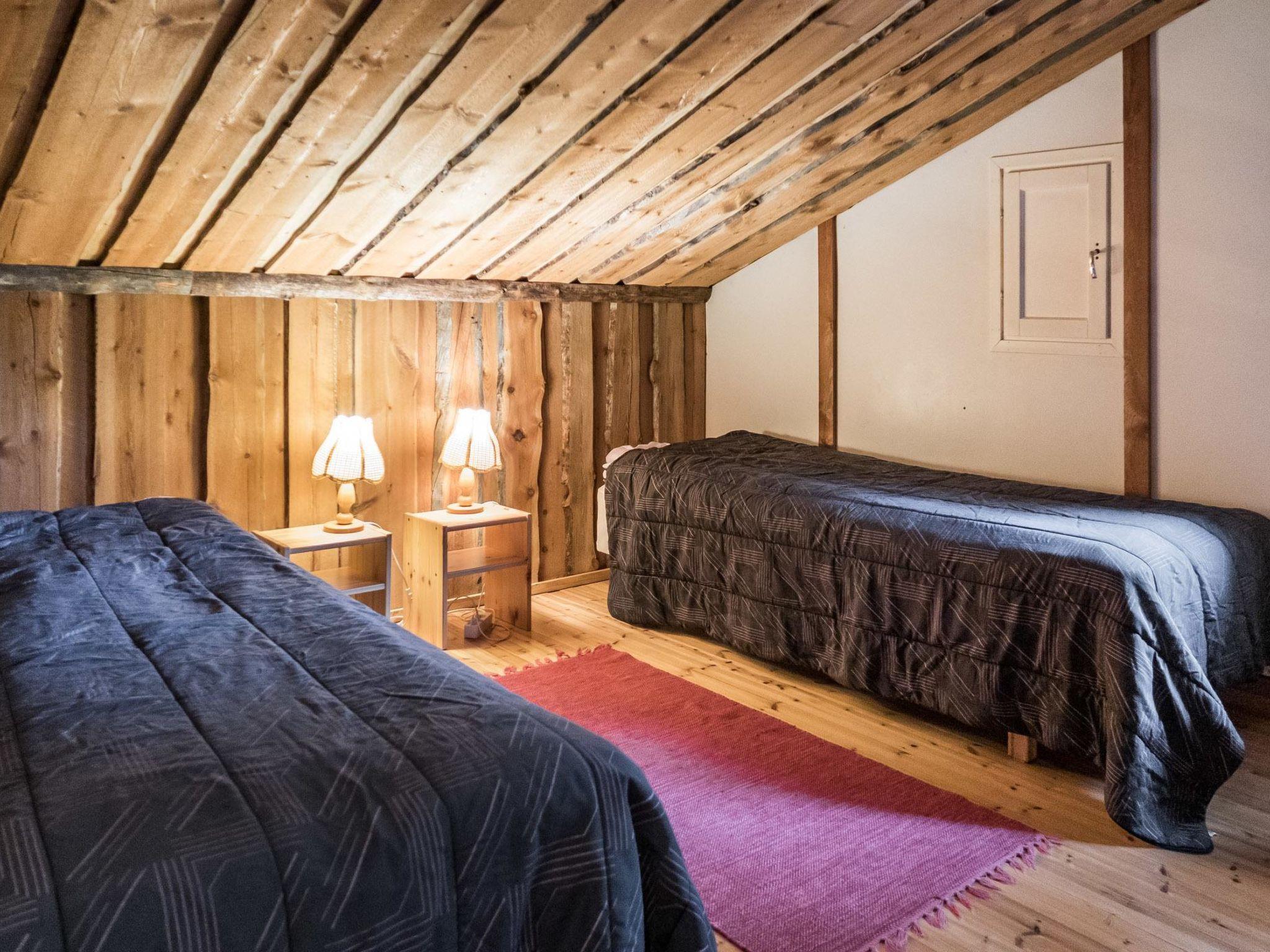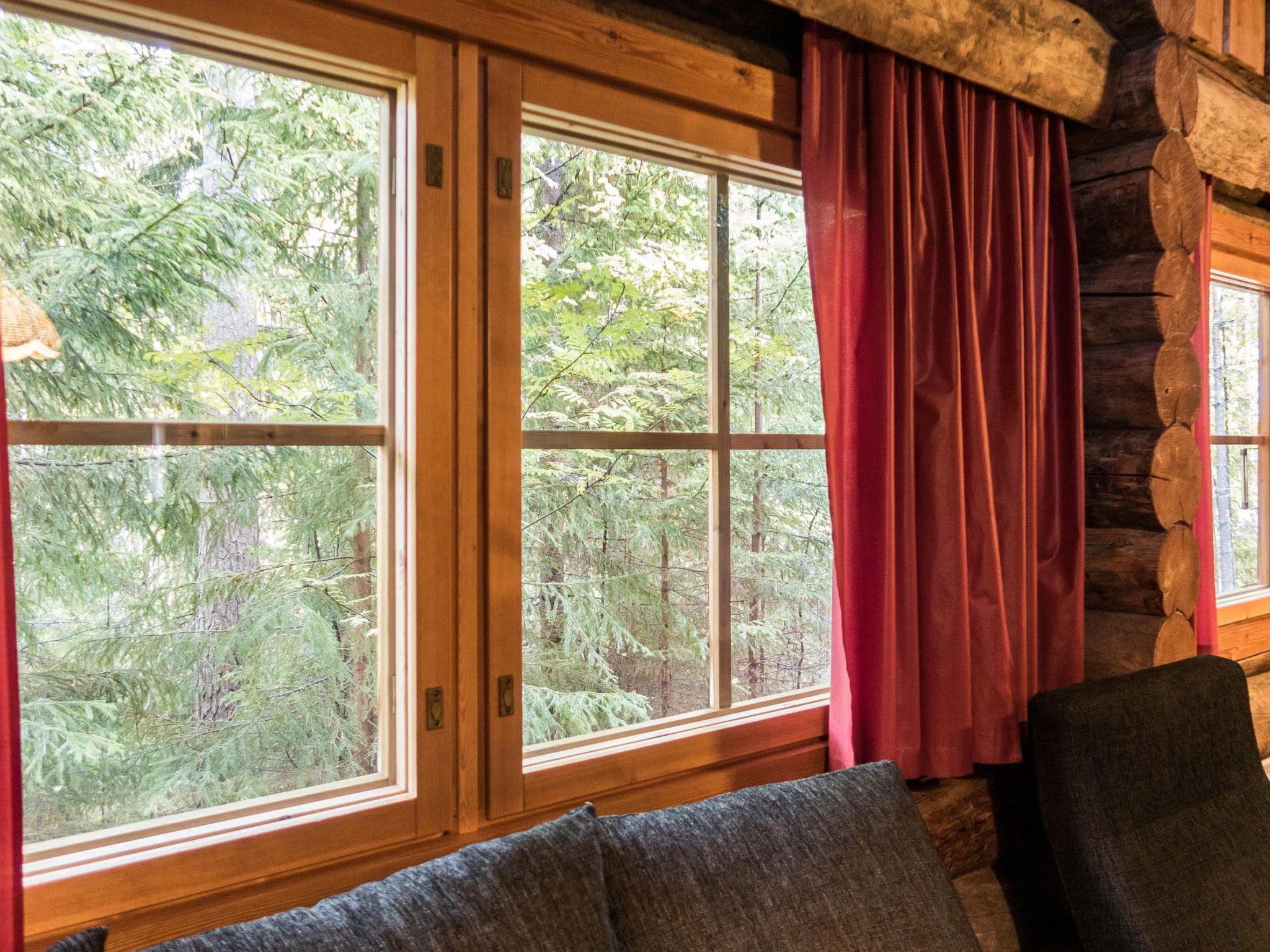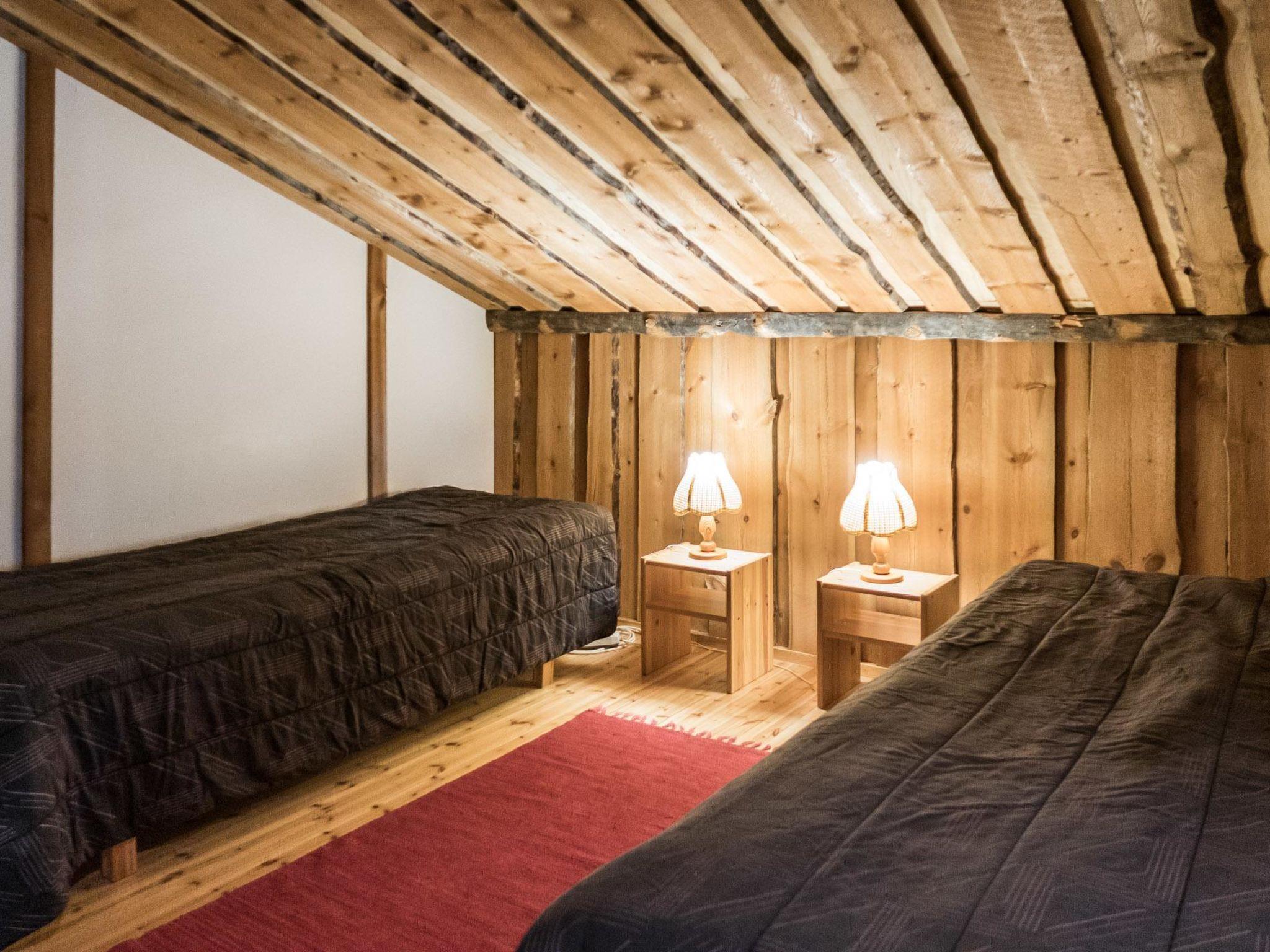 This apartment in semi-detached log house located in Vuokatti ski centre was completed in 1990. Floor area 52 m², loft 23 m². Combined living room & kitchen, bedroom: 2 beds, loft (23 m²): 4 beds (divided with one wall). Sauna (electric), washroom and toilet. Travel bed for a baby.