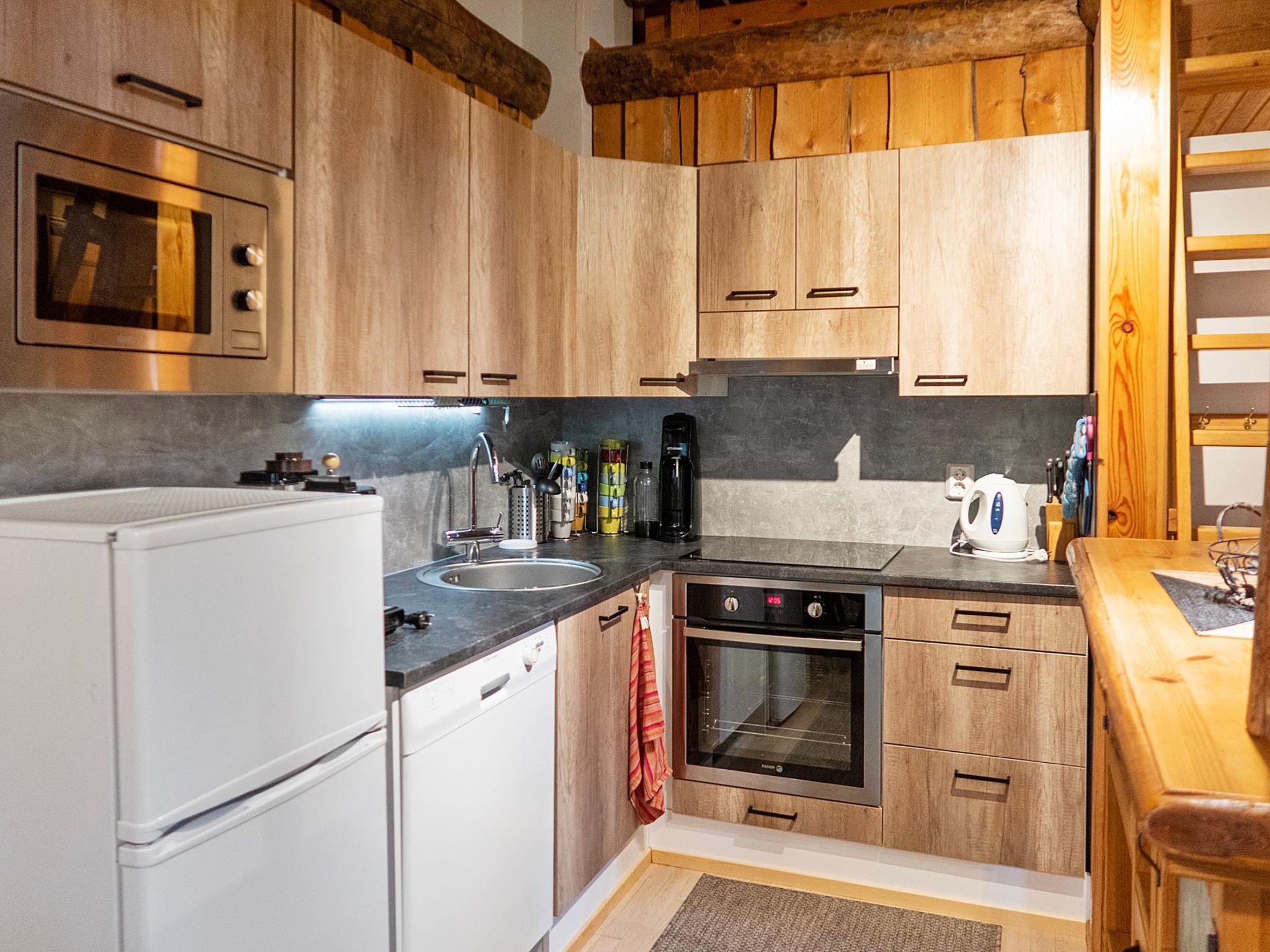 This apartment in semi-detached log house located in Vuokatti ski centre was completed in 1990. Floor area 52 m² + loft 23 m². Combined living room & kitchen (kitchen renovated in 2022), bedroom with twinbed and one child bed. Loft with separate beds for two and twin bed (divided with wall). Extra: two mattress. Sauna (electric heating), washroom and toilet. Terrace.
