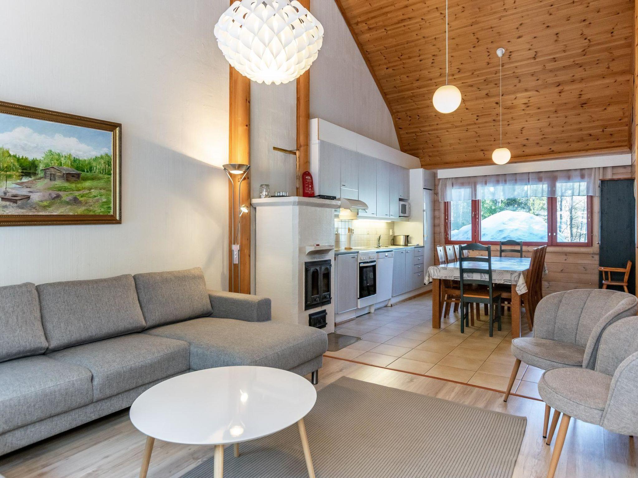 This apartment in log semi-detached house by Lake Nuasjärvi in Vuokatti was completed in 2000. Floor area 80 m², upstairs 30 m². On the ground floor there is combined living room & kitchen and two bedrooms, upstairs there is two bedrooms. All bedrooms with separate beds for two, loft with bed for one. Sauna (electric heating), washroom, 2 toilet. Terrace with the gas barbeque (use only on summertime). Separate store/ serviceroom for the skies. 2 x TV. Internet connection, russian TV chanels (Channel One Russian, NTV Mir ja Euronews).