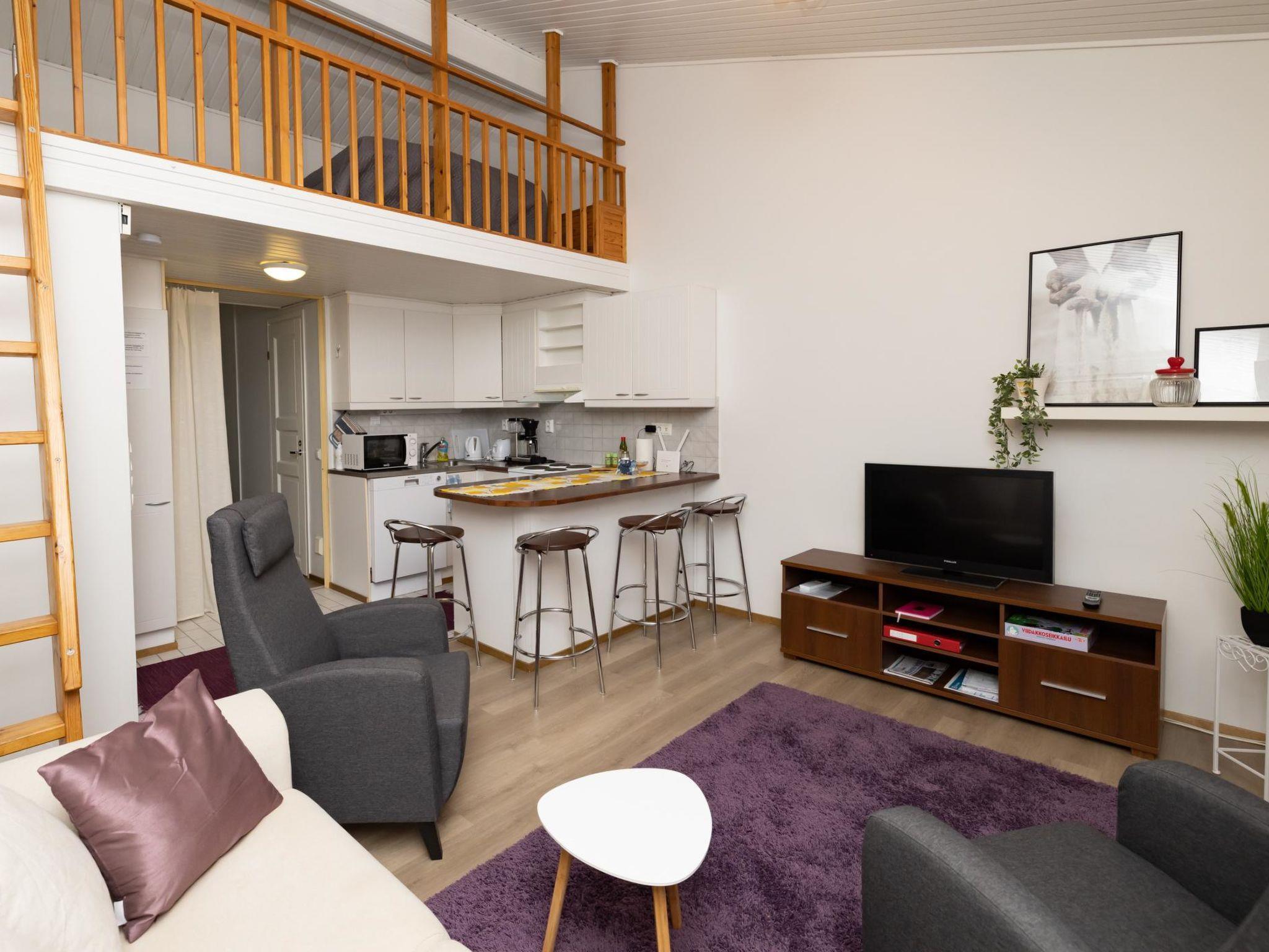 A confortable rowhouse in Vuokatti, near Katinkulta spa hotel. Graduated in 1990 built and renovated in 2018. Area: 35 m² + loft 11 m², kitchen, living room, a bedroom with doublebed. Sauna (electric stove), shower / toilet. Open loft with two beds, 80 cm wide and 120 cm wide. Living room with sofa bed for one person (120 cm wide). Terrace with furniture / dinning for 4 and grill.