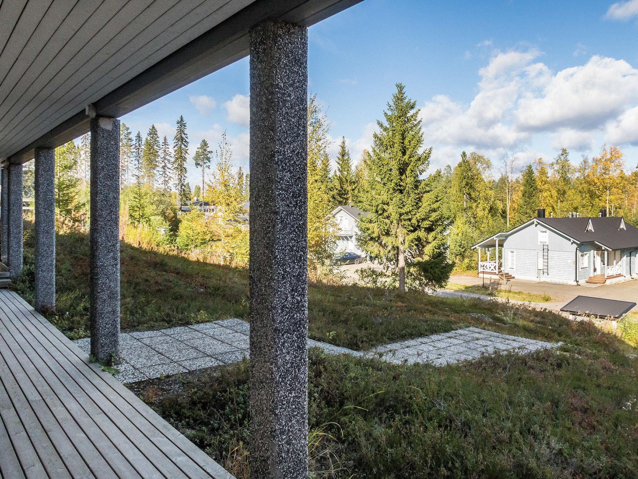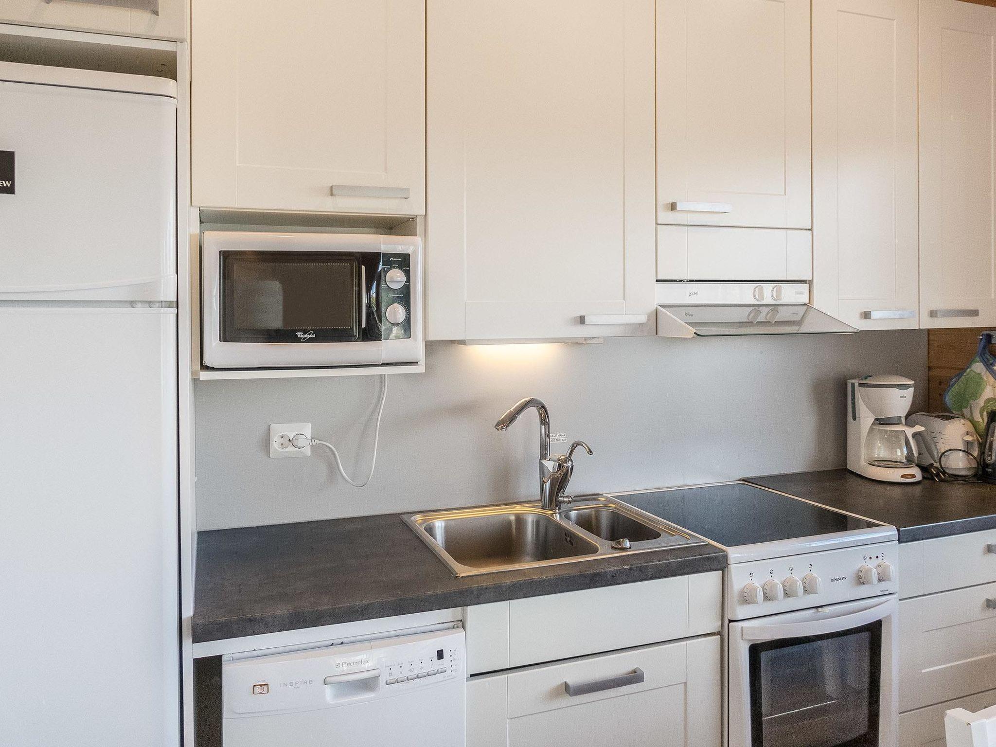 This apartment in semi-detached house, located in Vuokatti ski centre, was completed in 2008. Floor area 67,5 m² (loft 27 m²). Three floors in this house, apartment in floors 2 and 3, steps to apartment. Both floors with terrace. In the first floor a warm storage. On the ground floor (2. floor) in apartment there is combined living room & kitchen, a bedroom with twin bed, sauna (electric heating), washroom and toilet. Upstairs (3.floor) in the loft there is one bedroom with three separated beds and a child´s bed. Also two mattresses to use at extra bed.