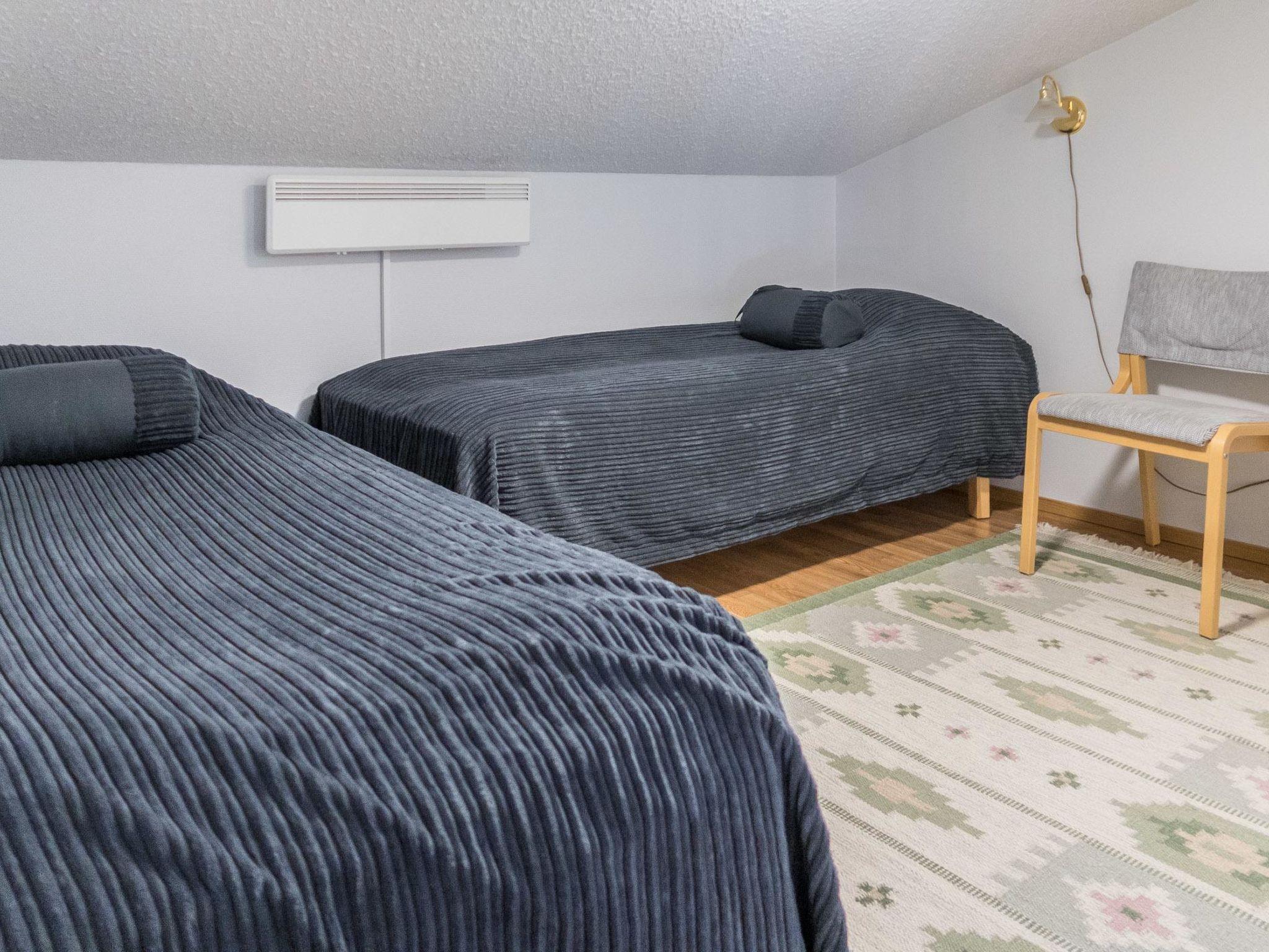 This row house apartment in Jäätiö, Vuokatti in the vicinity of Holiday Club Katinkulta was completed in 2008. Floor area 75m². Combined living room and kitchen, bedroom with twin bed, sauna (electric heating), washroom/WC. Upstairs; bedroom with two beds, open alcove with two separate beds, and extrabed (sofa bed) for two in the open loft and wc. This apartment has it´s own fireplace, terrace and separate room for skies. For a baby: bed, high chair and pot.