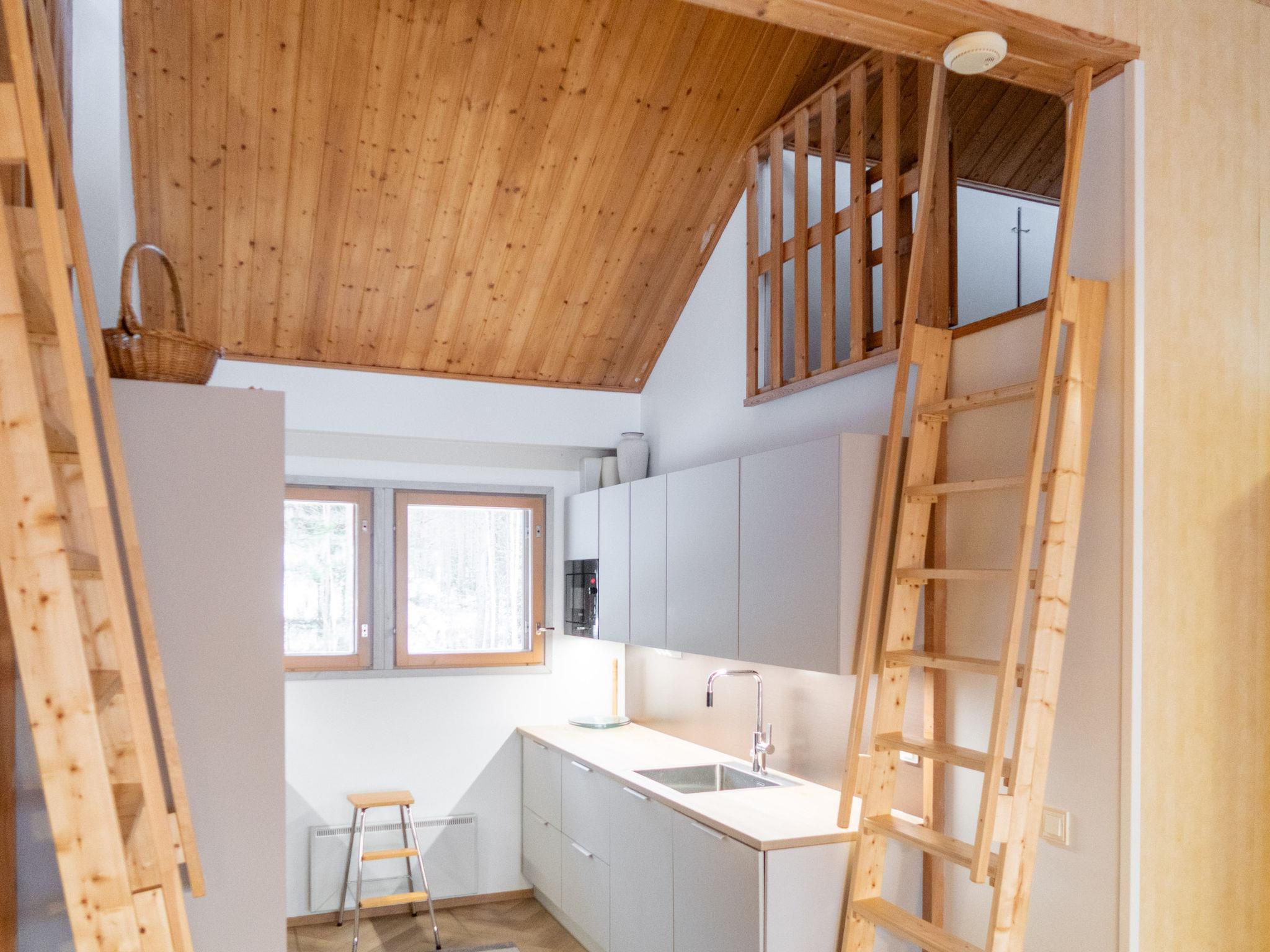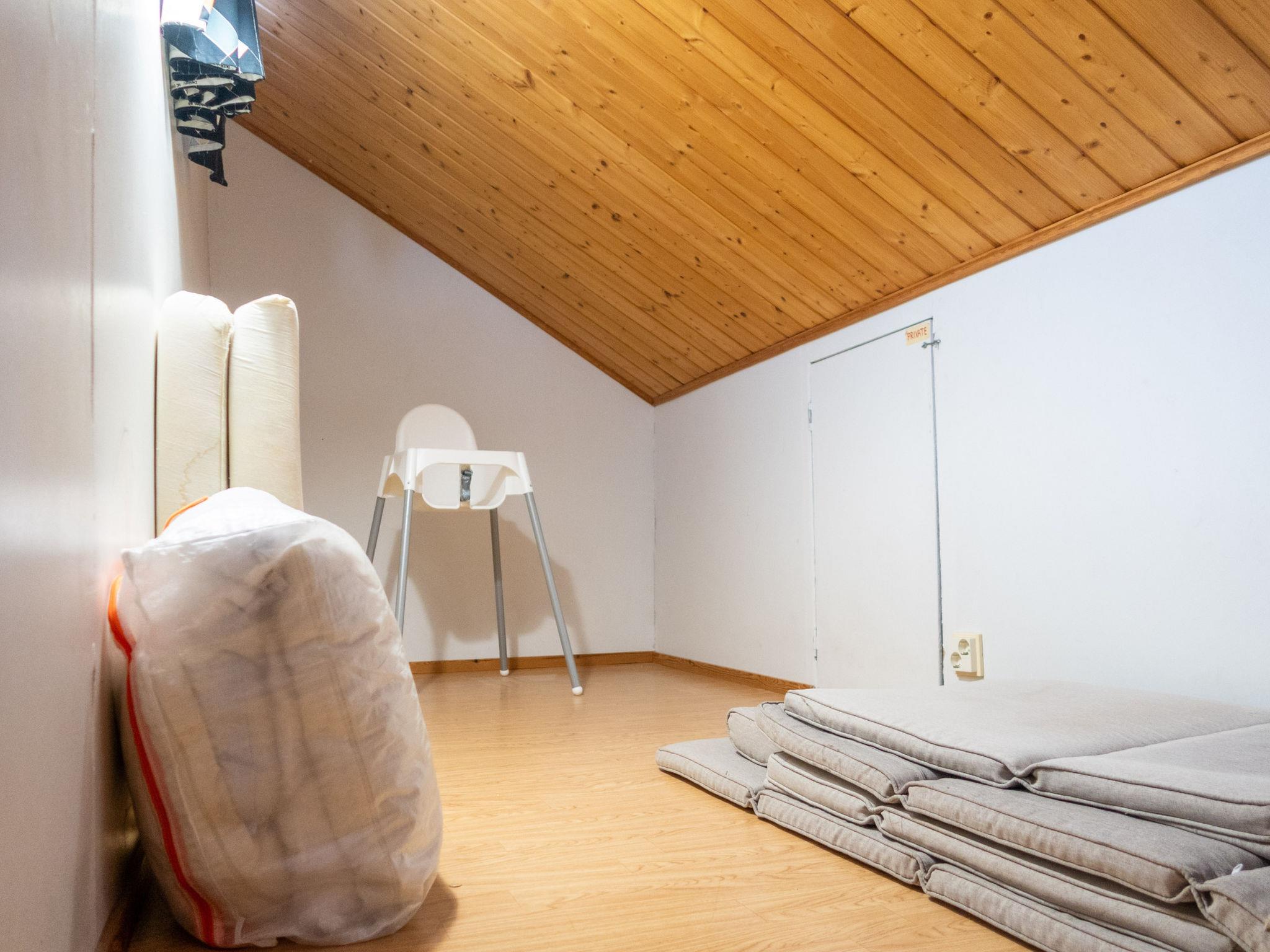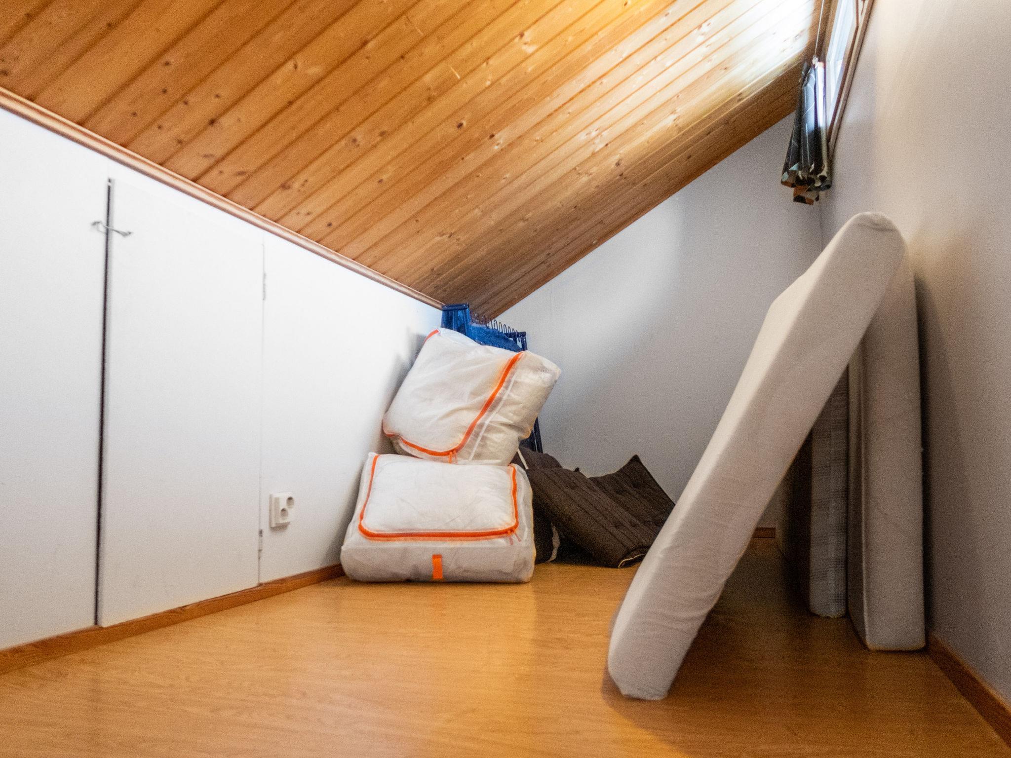 Two bedrooms with double beds (can be made into separate beds if necessary). In addition, two small sleeping lofts with mattresses for a total of 4 (access to the loft is via a so-called sloping ladder, the ladder was updated in -24). Separate toilet, shower and spacious sauna (5-6 people, electric heater).