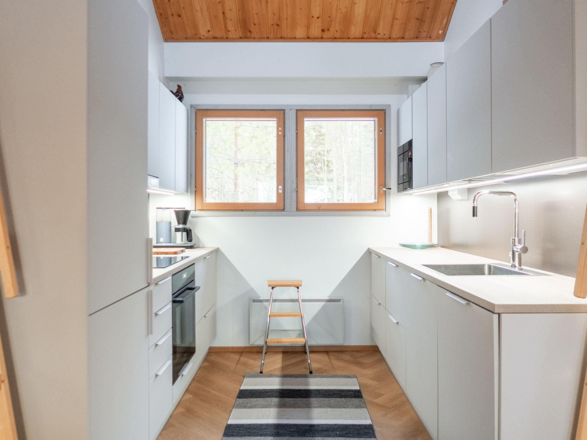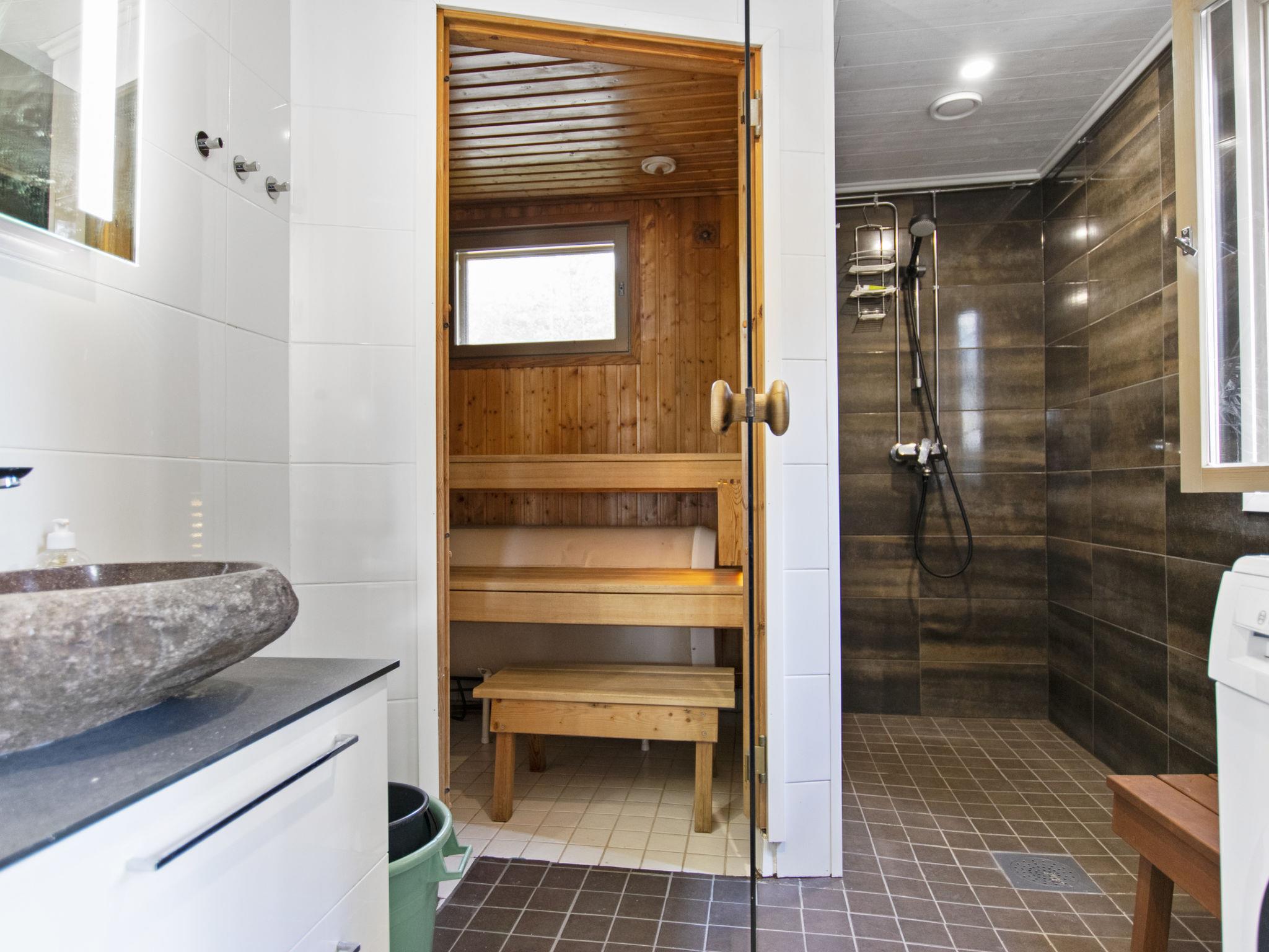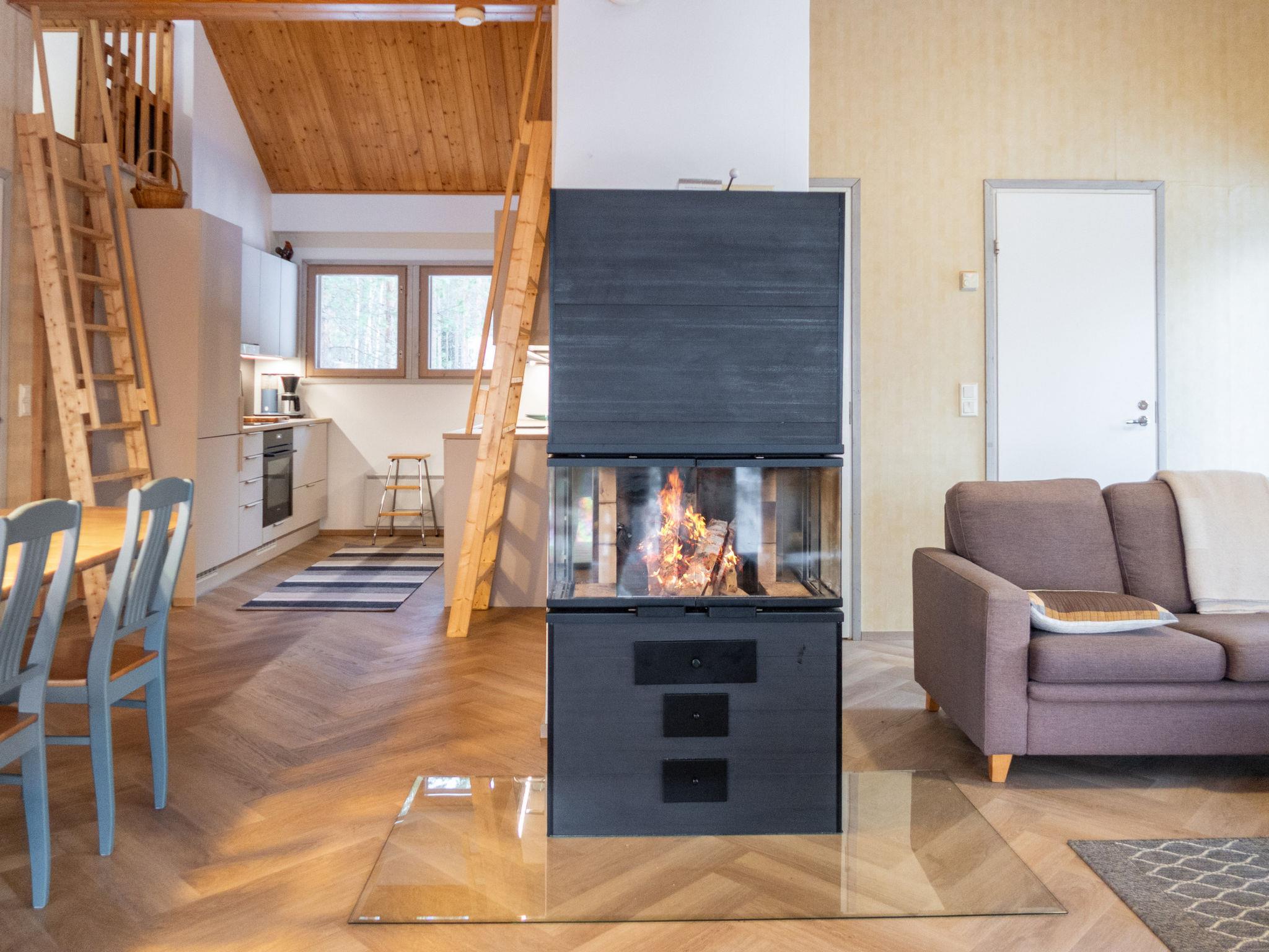 Two bedrooms with double beds (can be made into separate beds if necessary). In addition, two small sleeping lofts with mattresses for a total of 4 (access to the loft is via a so-called sloping ladder, the ladder was updated in -24). Separate toilet, shower and spacious sauna (5-6 people, electric heater).