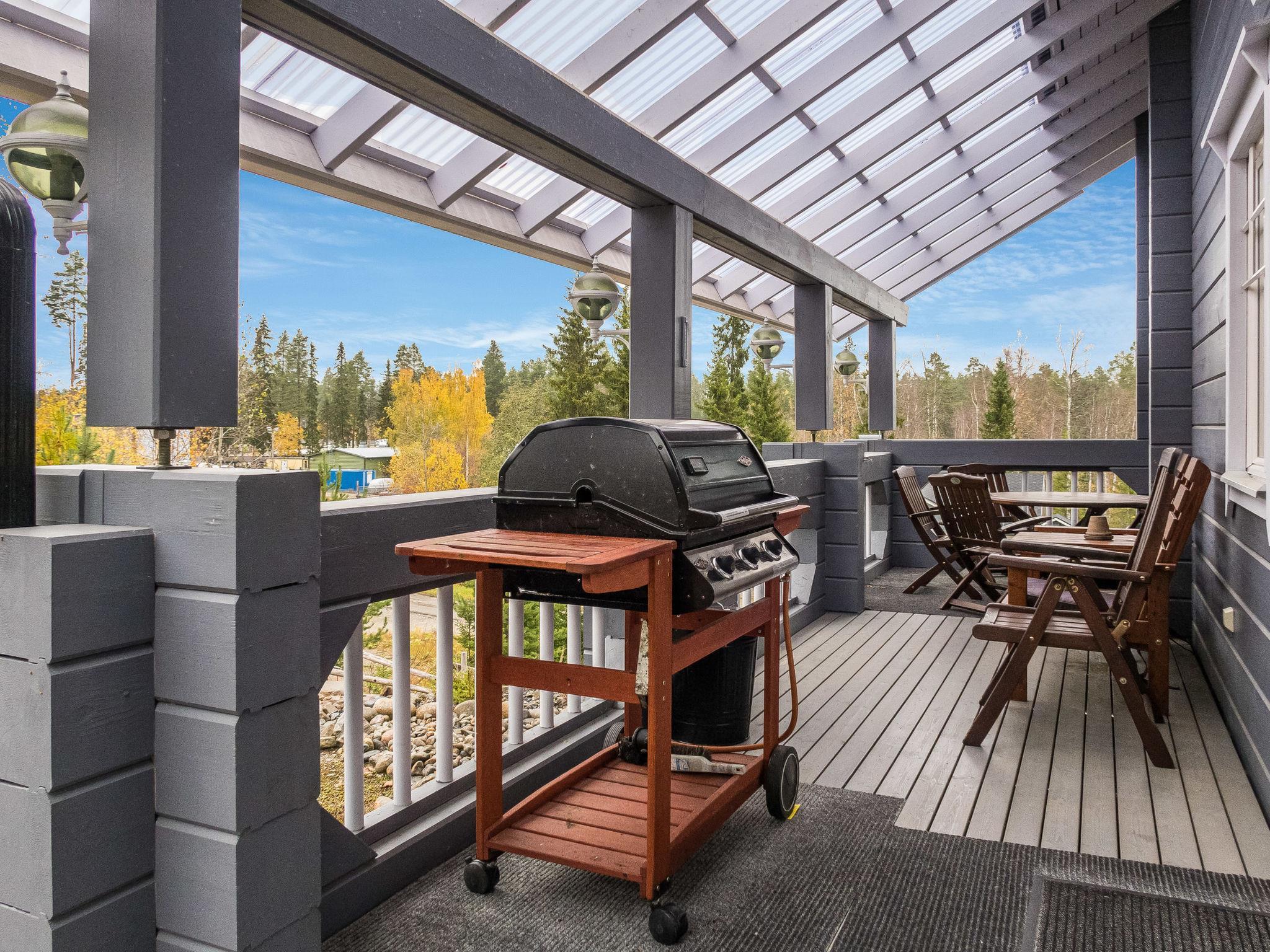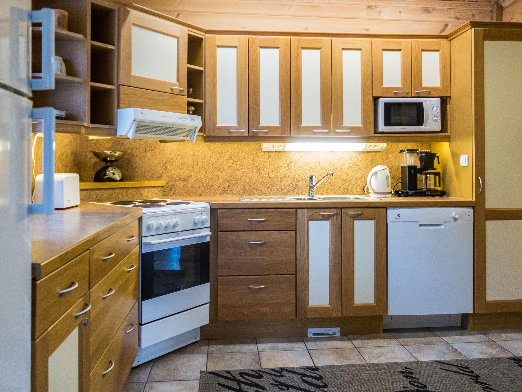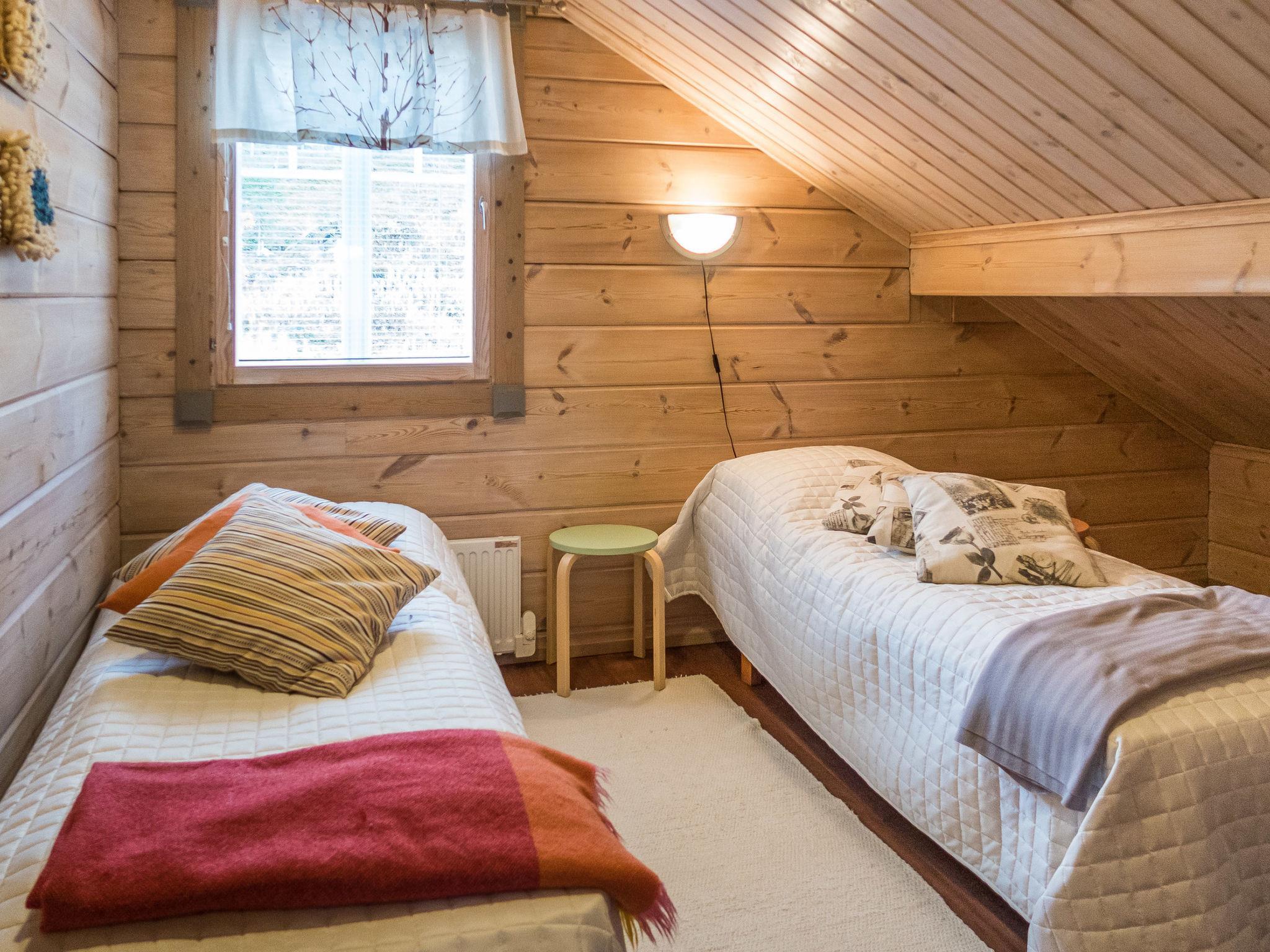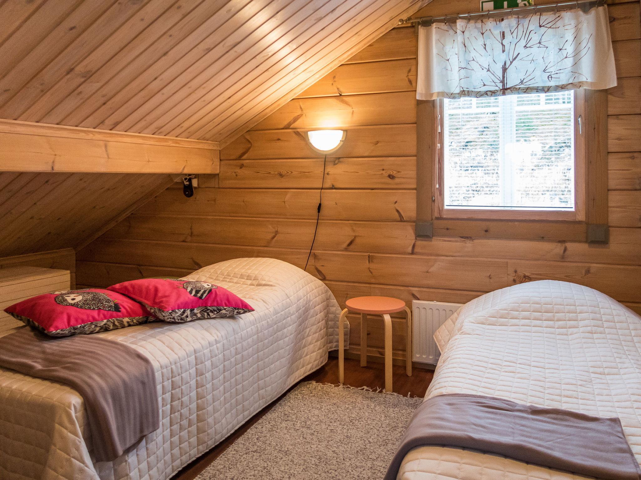 This separate loghouse is built 2003. It located in Ski Center Vuokatti (slopes 100 m). Living area 117 m² in two floors. Downstairs there is a separate kitchen, living room with fire place. Dinning table for 8 persons. Bedroom with twin bed. On 2nd floor there is two bedrooms with two separate bed for each. There are two mattresses that can be used as extra beds. Open loft with small sofa and tv. Utility room, bathroom (2 showers), sauna (electric heating), separate toilet on 1st floor. Terrace with furniture and gas grill (use on summertime).