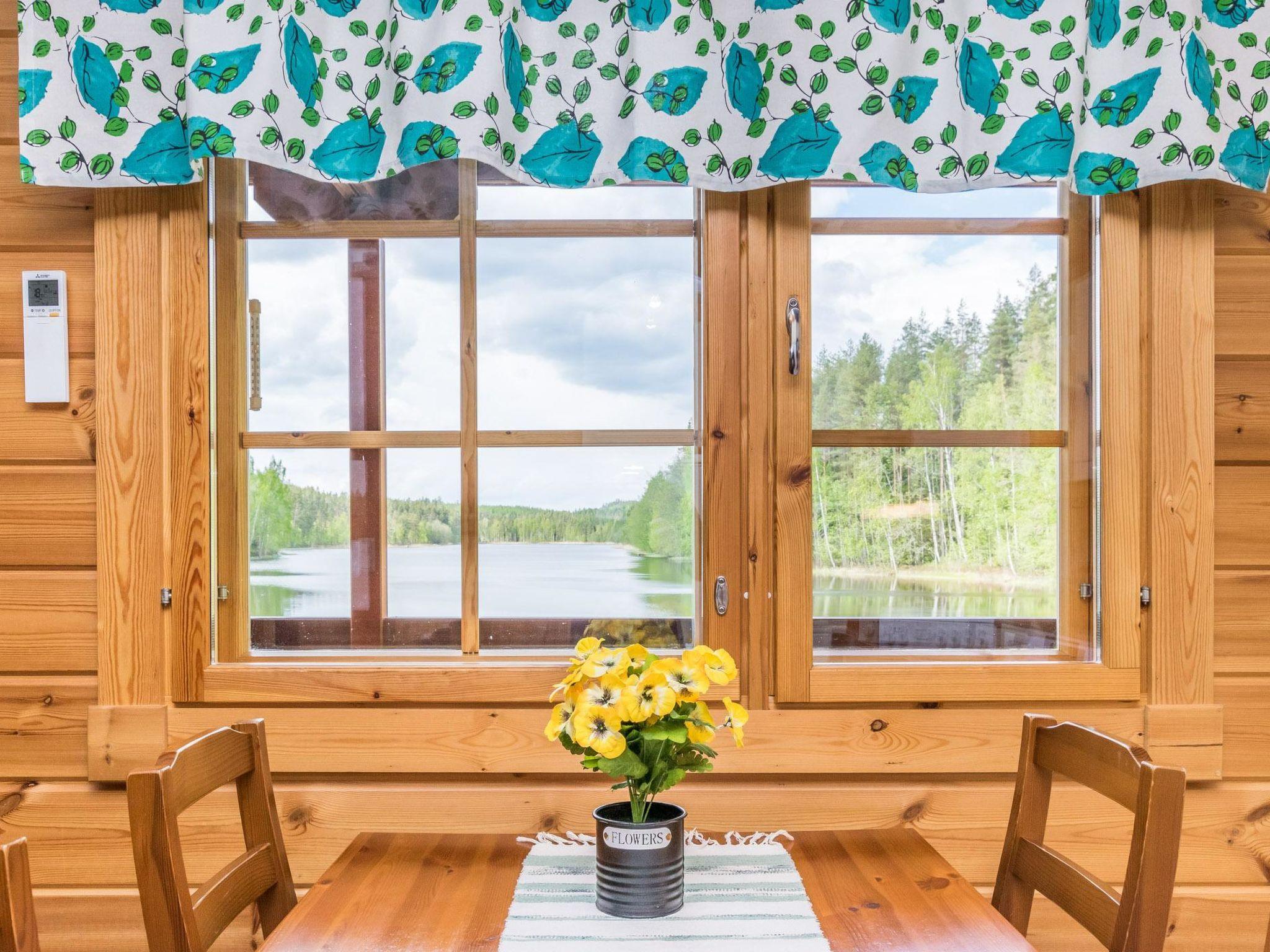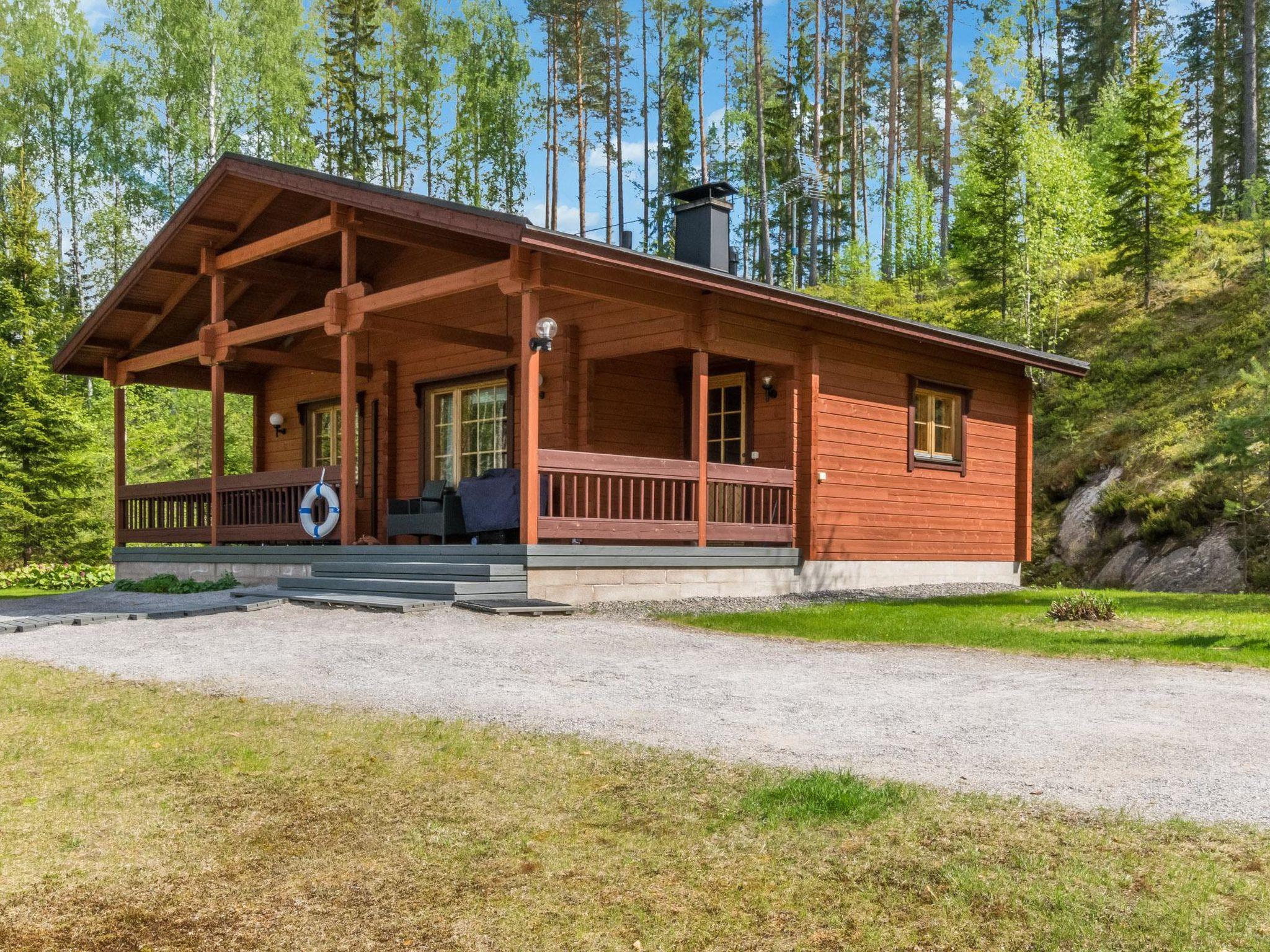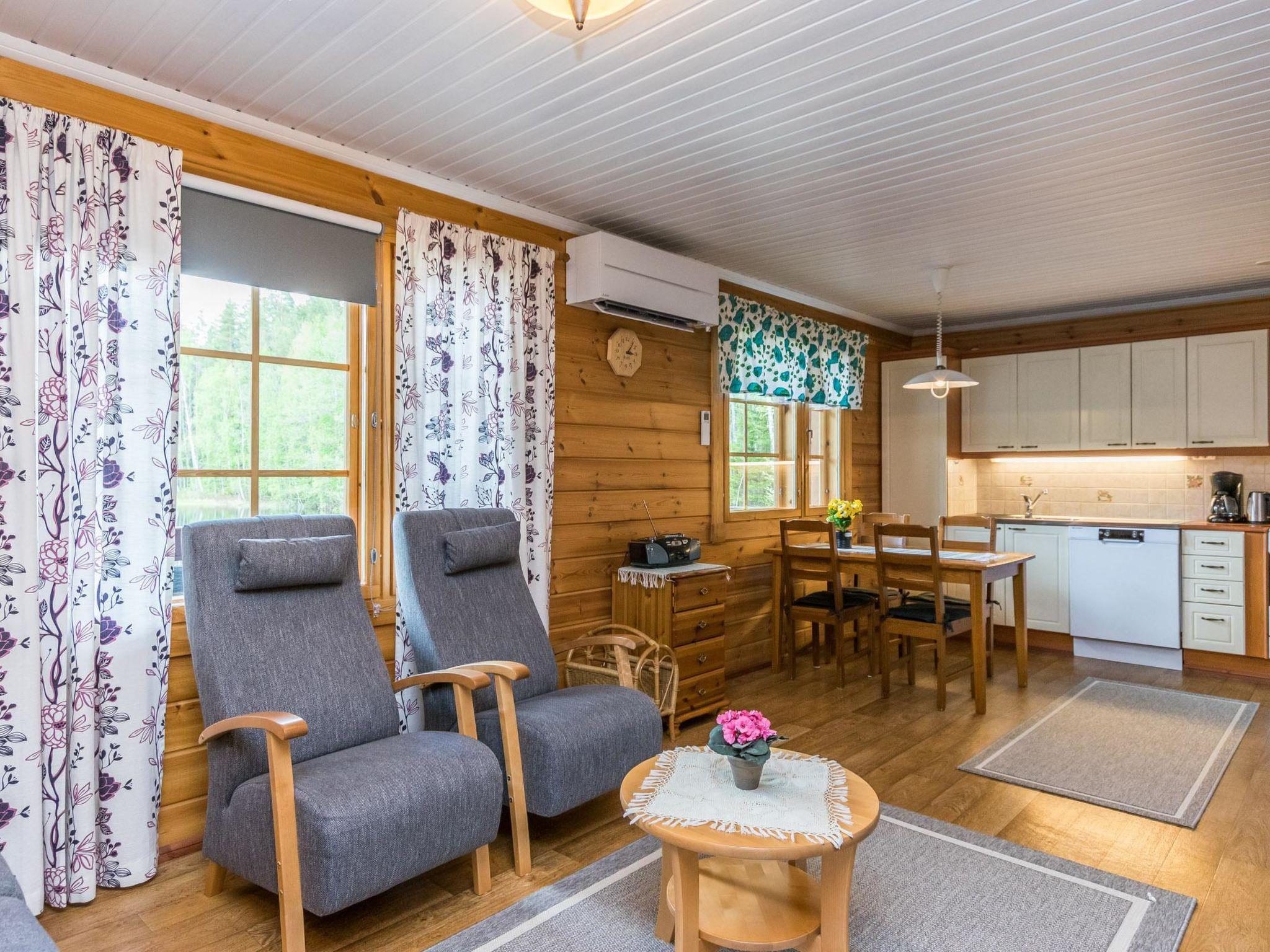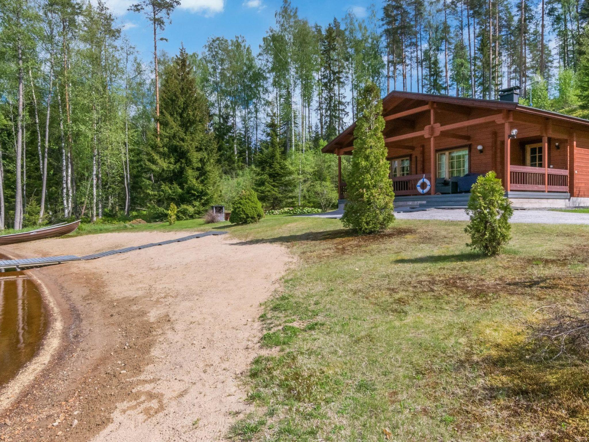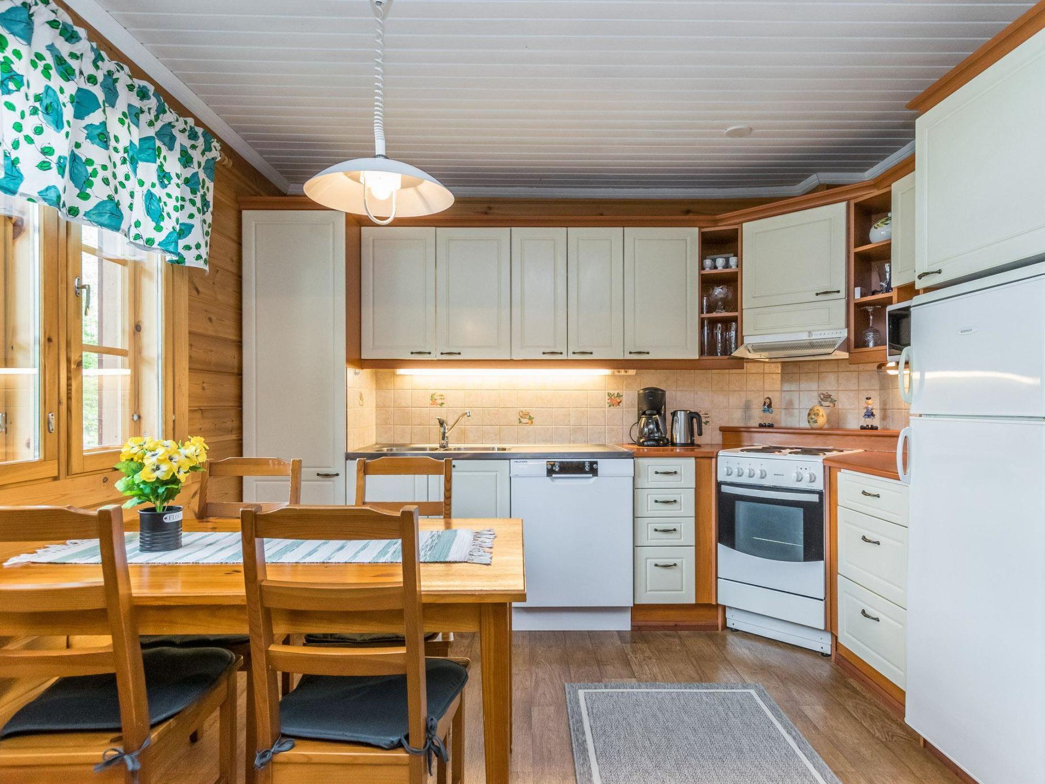 50 km south of Savonlinna, L.Lauttajärvi 15 m (length 1 km, width 150 m), shallow, hard sanded bottom, own boat. Log cottage 2005, living room/ kitchen 2 extra beds, bedroom double bed, utilities room/ changing room, washroom, sauna, open porch.