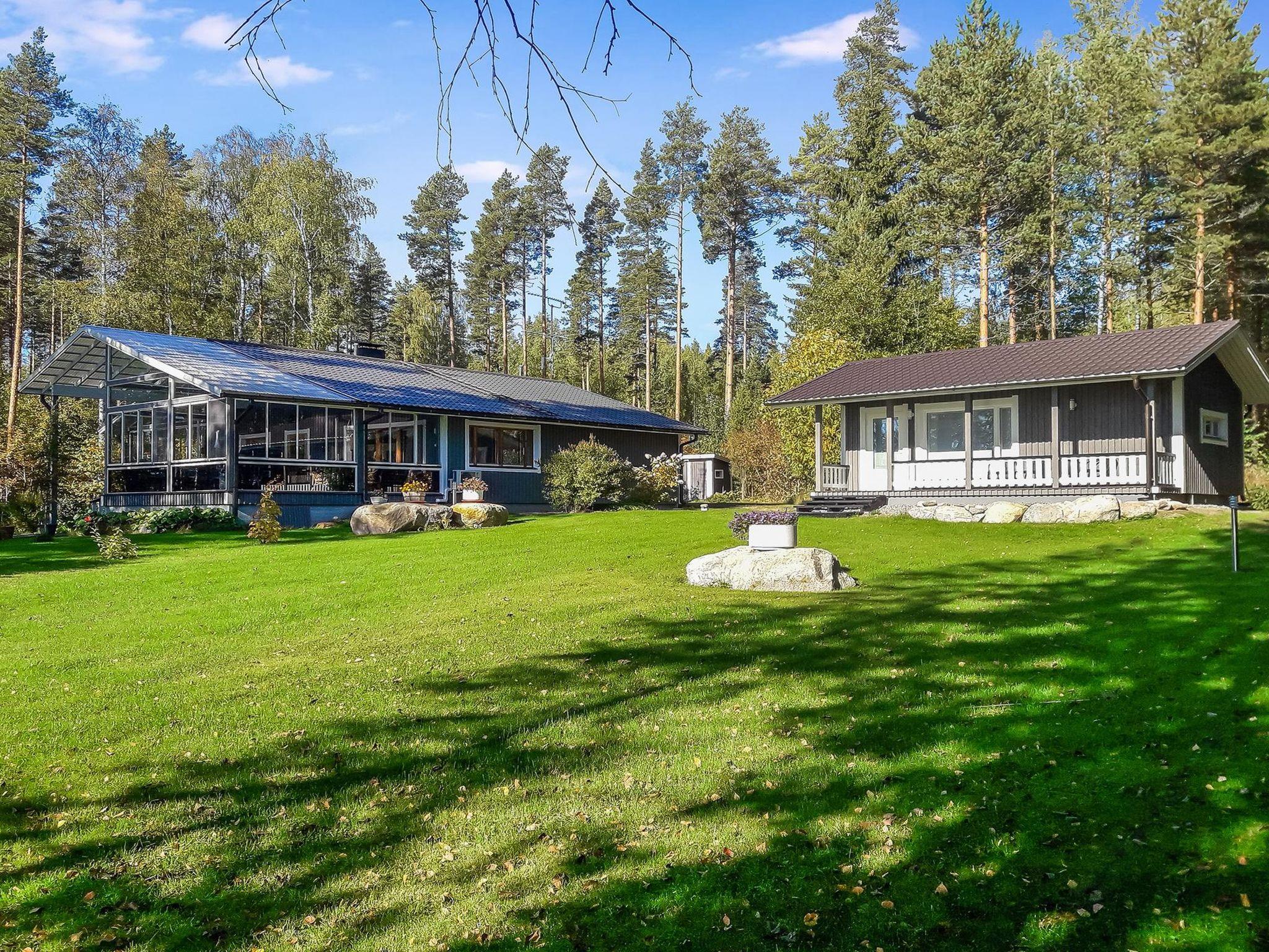 Spacious, mostly lawn plot with a great view of lake Saimaa. The cabin has a large 50 m² glazed terrace.