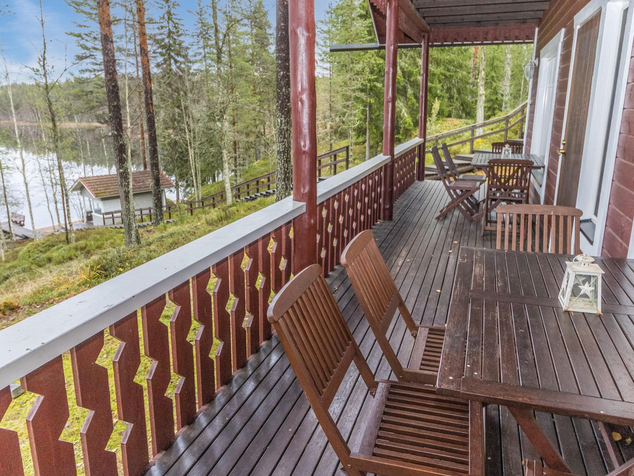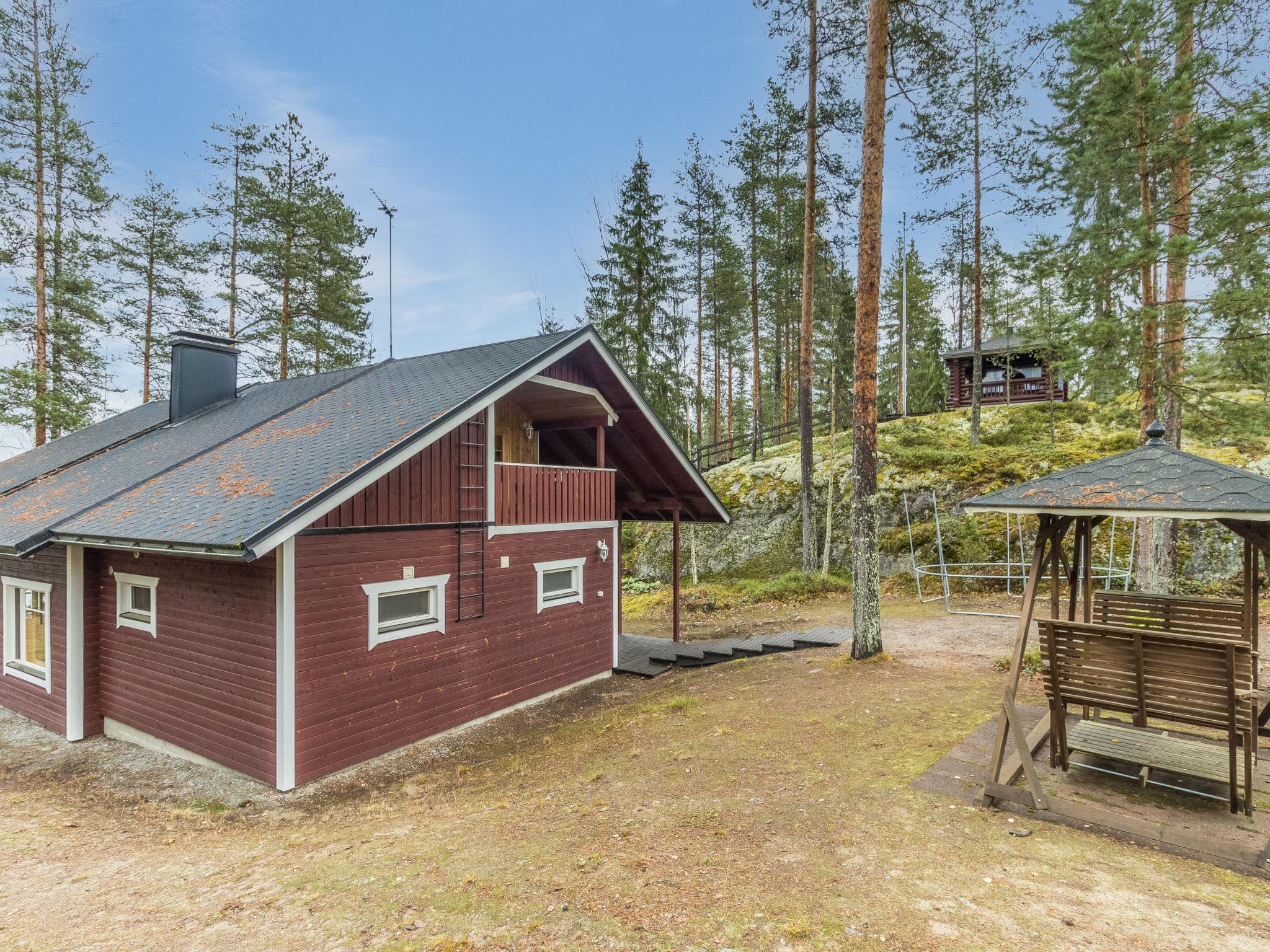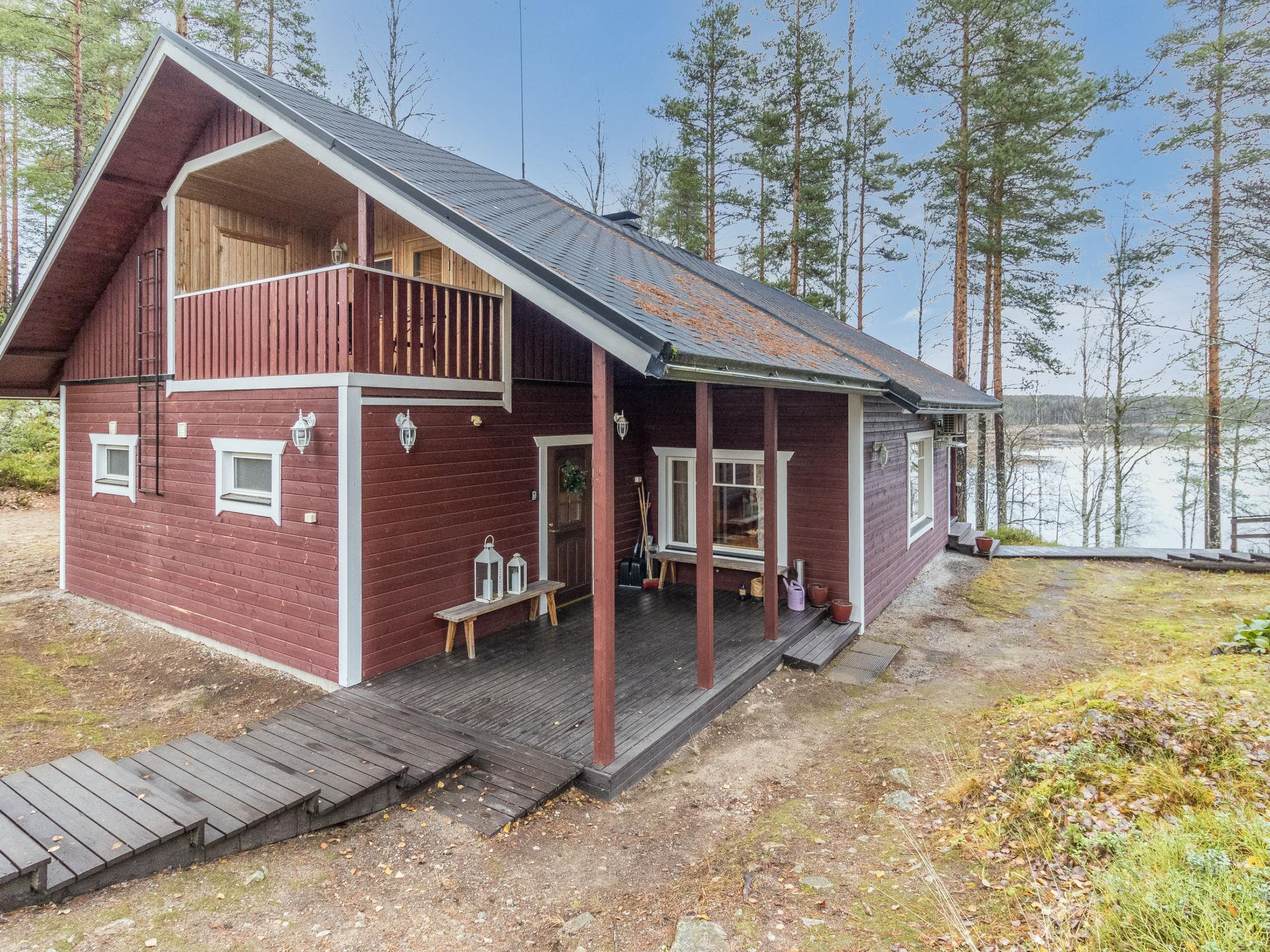 This hand-carved 160 m² log cabin offers an authentic Finnish cabin atmosphere combined with modern amenities. The cabin was built in 1994 and renovated in 2005. The location is unique: the plot offers magnificent views of Lake Saimaa. The distance to Helsinki is 301 km, and Savonlinna is only 49 km away. At the shore, a separate wood-heated lakeside sauna lets you enjoy traditional Finnish steam and take a refreshing dip directly into the clear lake water. On the cliff above the shore, a cozy grill shelter provides the perfect spot to enjoy summer evenings and the setting sun.