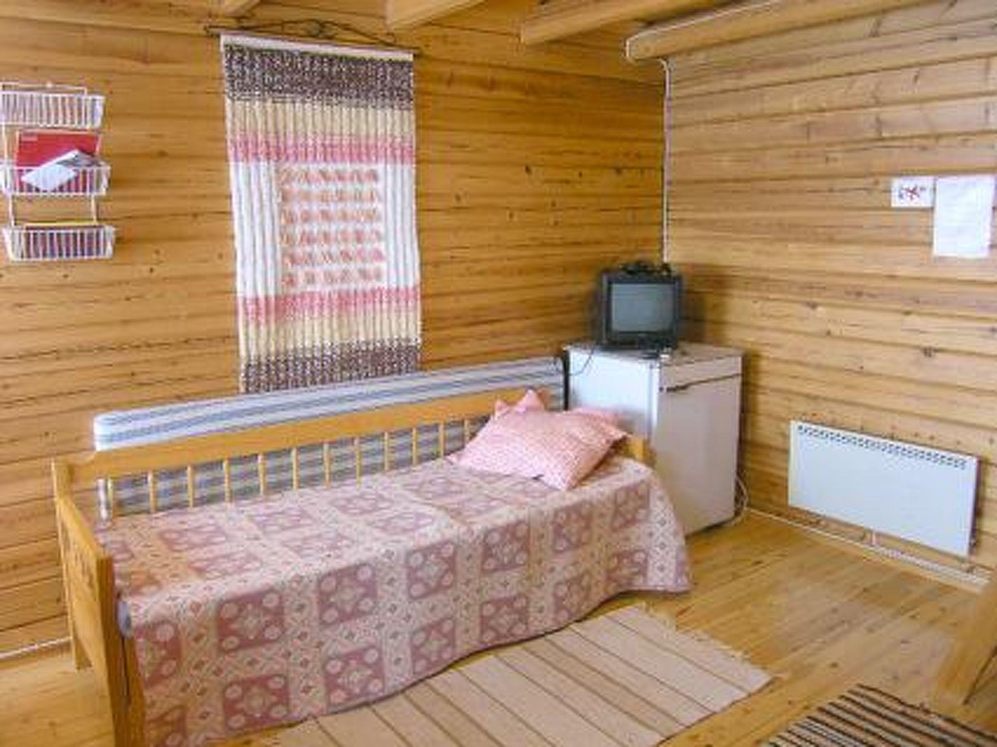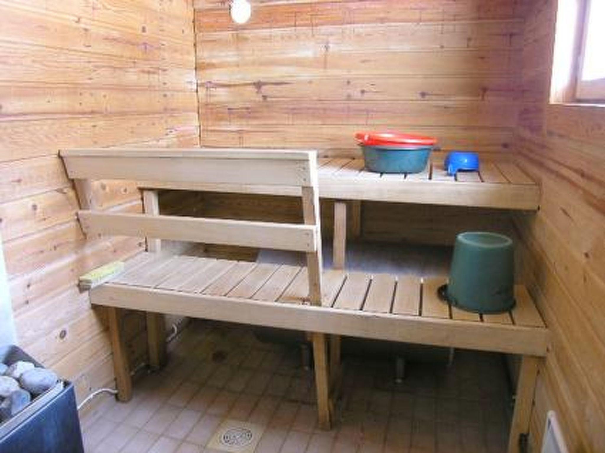 Log cabin, built in 1988, livingroom with bunk for one, four mattresses on the loft (steep stairs to loft, max. height of 1.35 m), sauna with electric stove, bathroom, separate toilet, small covered porch.