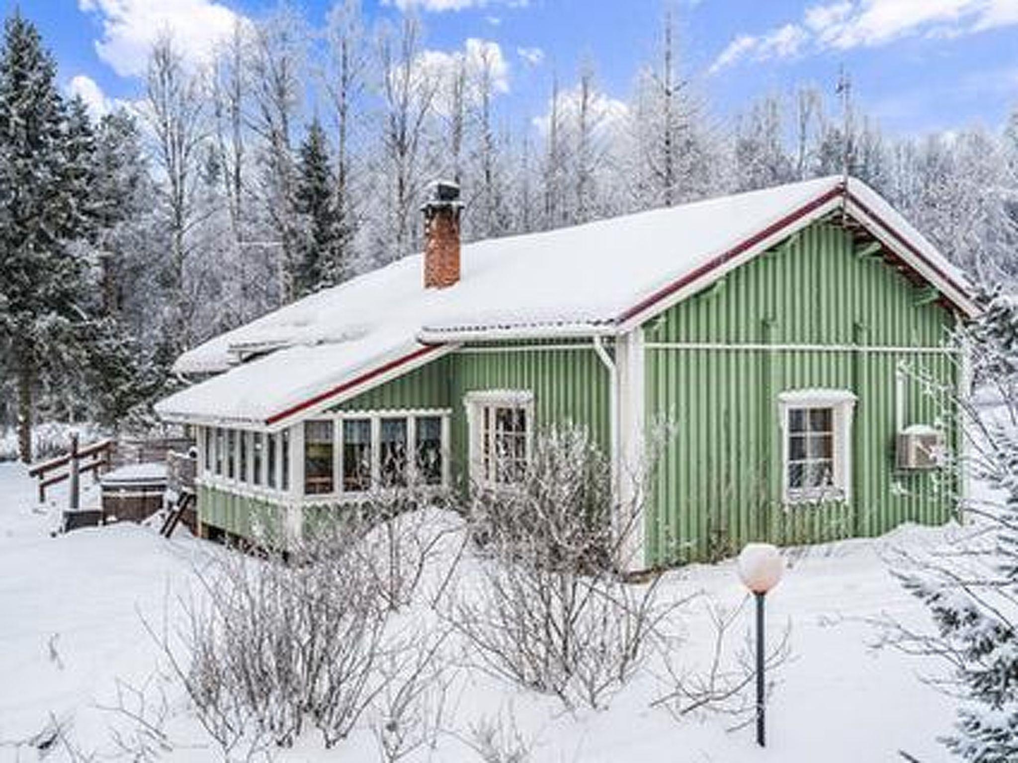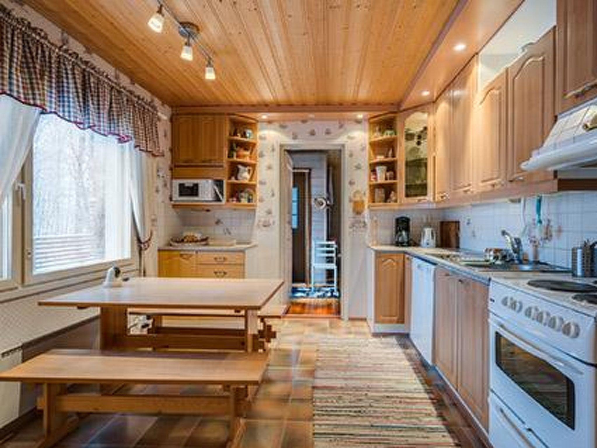 Log and wooden board house, originally built during 1930s, last renovated 2004, living room/kitchen still has original log walls visible, walls in other rooms are covered. Large living room with convertible sofa/bed, kitchen, bedroom with double bed, sauna (wood-burning stove), washroom, room with fireplace (convertible sofa/bed), WC, glazed "summer room" with electric light.