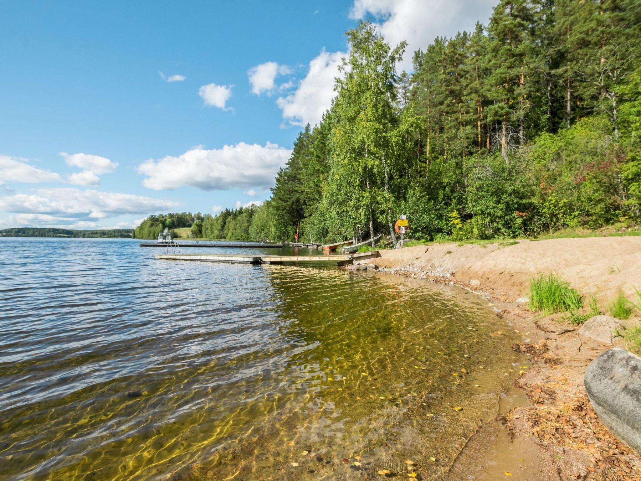 30 km north-east of Tampere, L.Näsijärvi/Paarlahti bay 300 m, public swimming shore with shallow, hard sandy bottom, boat on swimmiing shore.