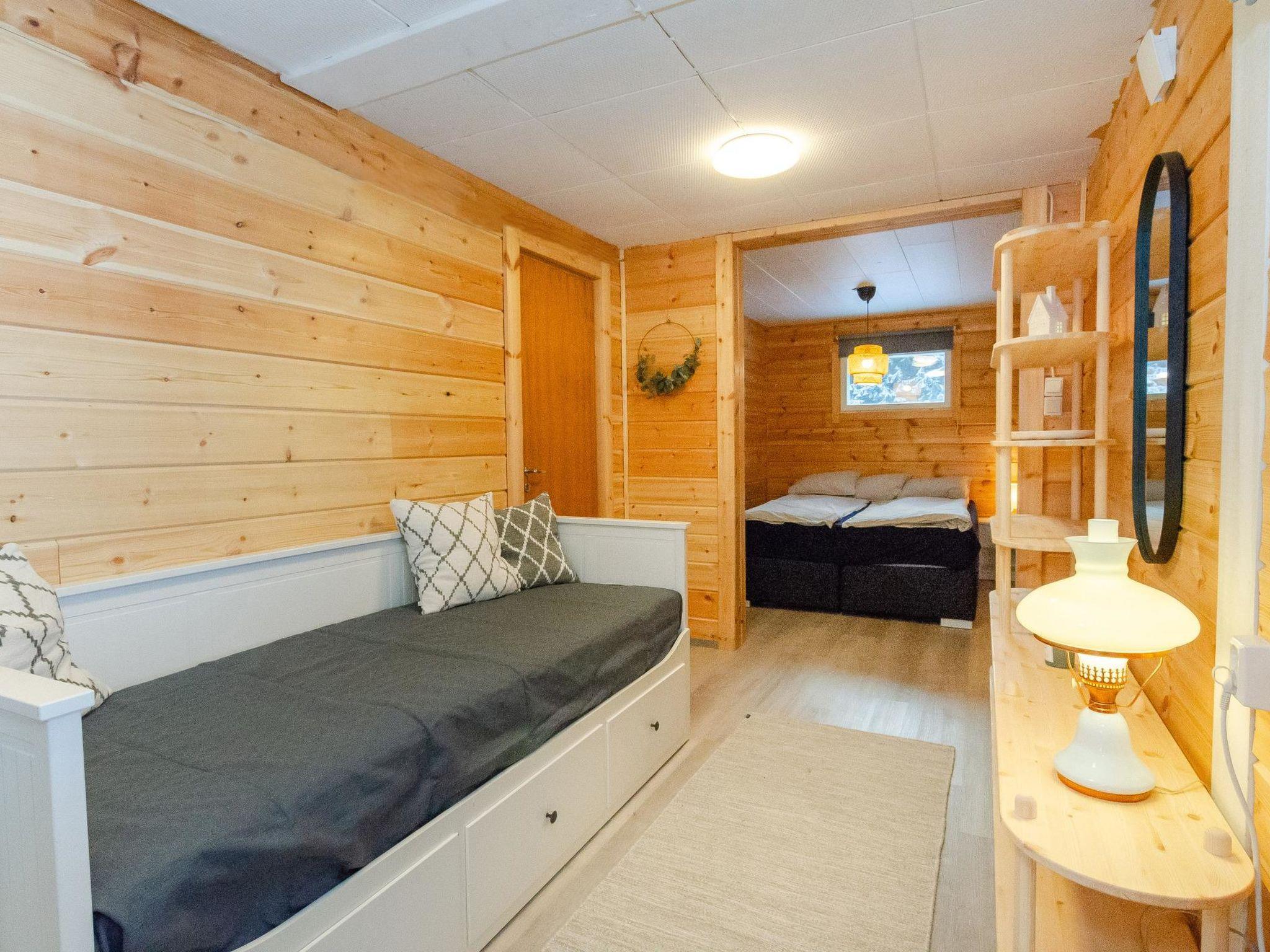 Holiday cabin, built in 1965 and fully renovated in 2023. The living room and bedroom both feature pull-out sofa beds, with an additional double bed in the bedroom alcove. Access from the bedroom to the bathroom and sauna, which has a wood-burning sauna stove. Terrace.