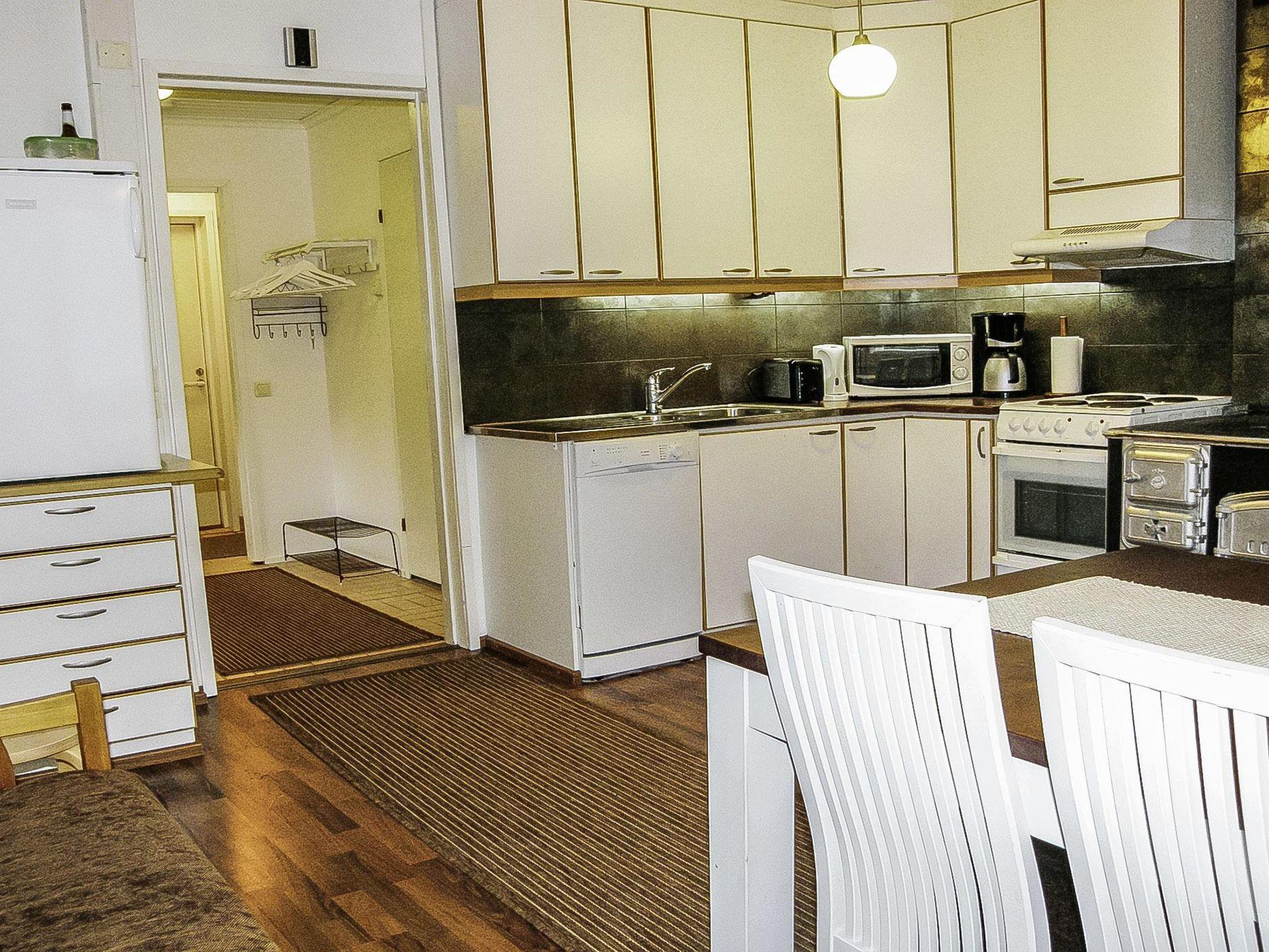 In the cottage Air heat pump for cooling and heating. The kitchen is also equipped with e.g. toaster, kettle, coffee maker, tableware for six people and versatile cooking utensils, in addition to an electric and wooden stove with a small baking oven.