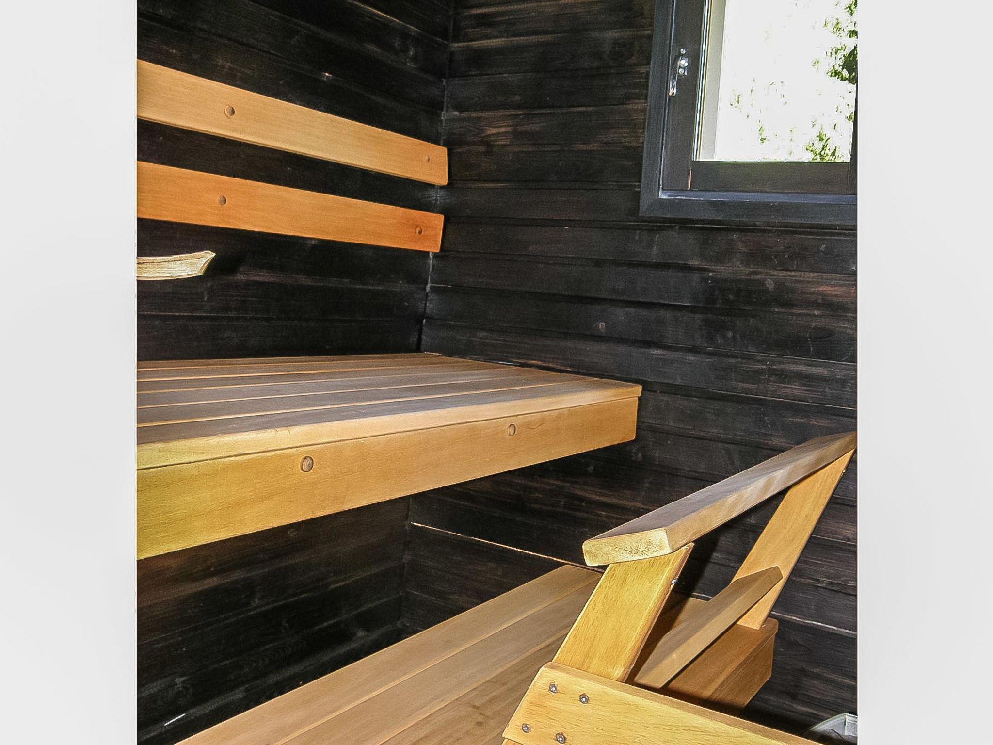 Wooden cottage, built in 1940, expanded in 1995 and renovated, and equipment renovated in 2012/2018. The living room / kitchen has a sofa that can be used as 2 separate beds, the bedroom has a double bed. Laundry room (washing machine), sauna, entrance hall (with freezer), small porch-terrace. Under floor heating.