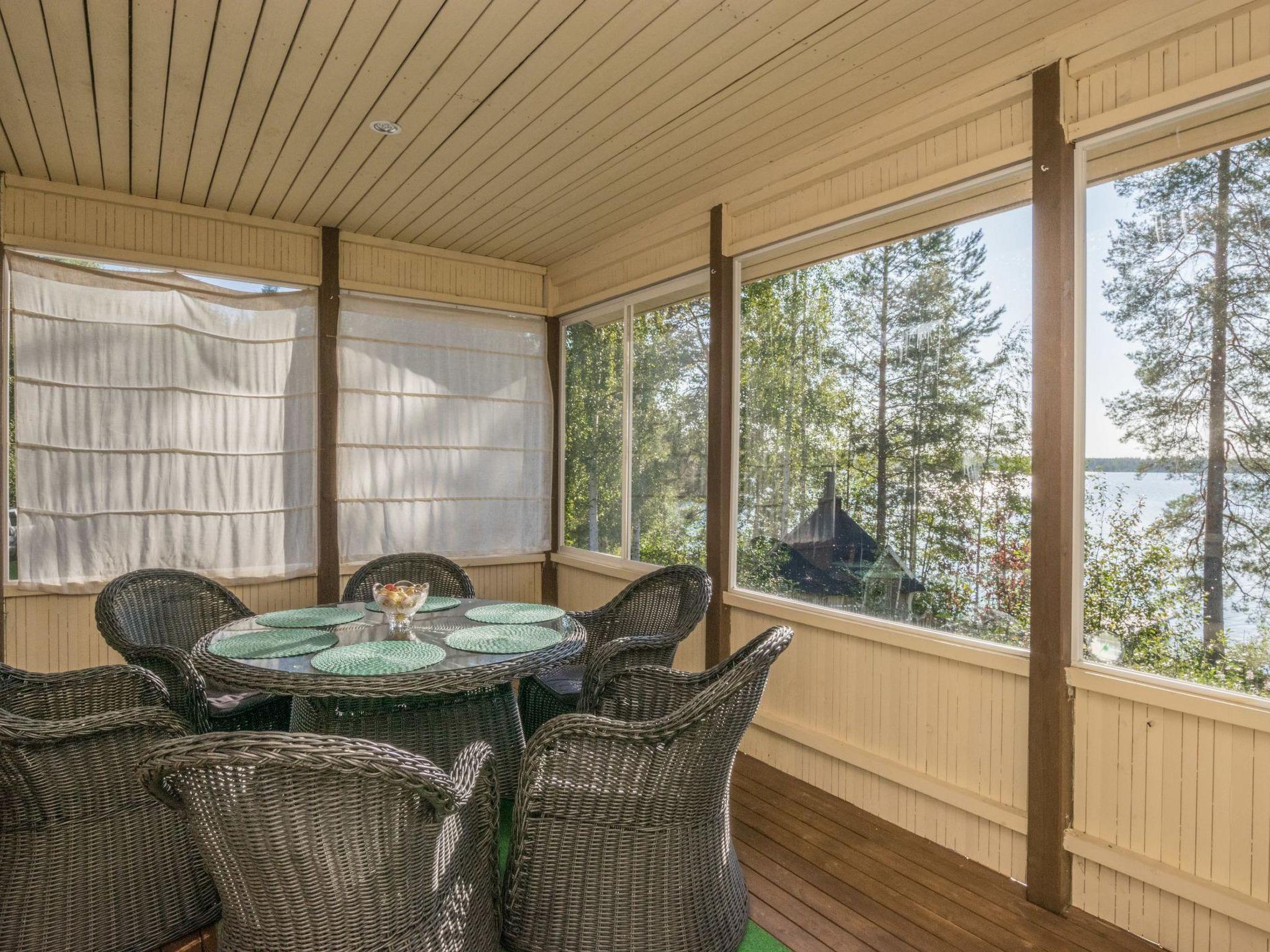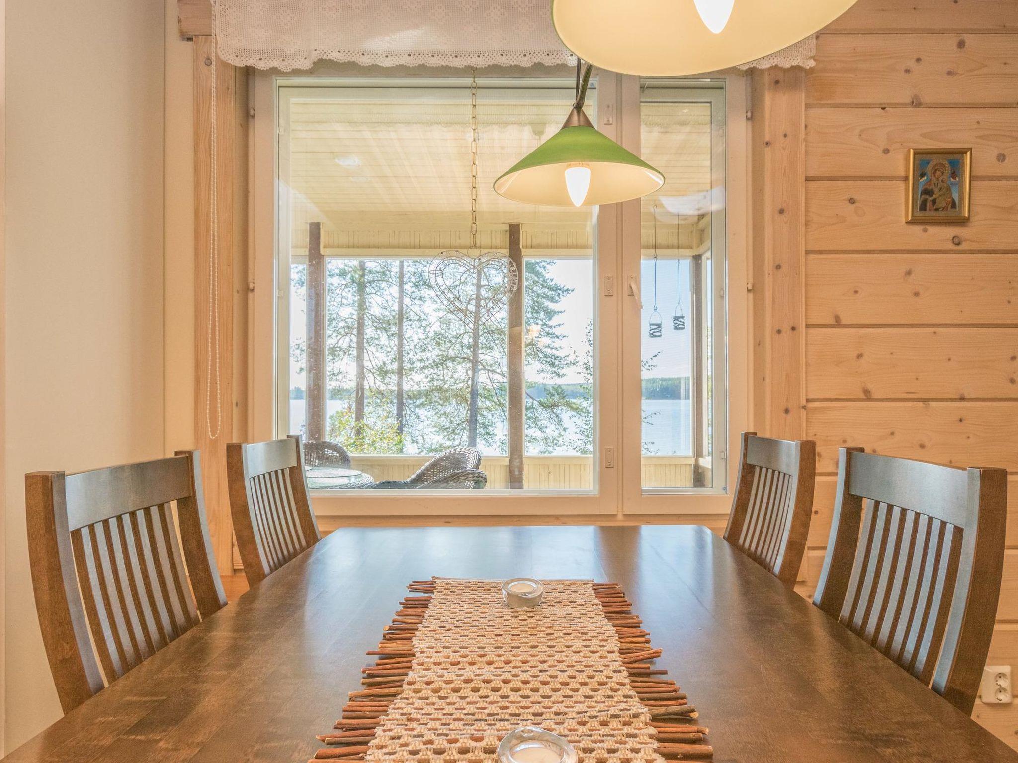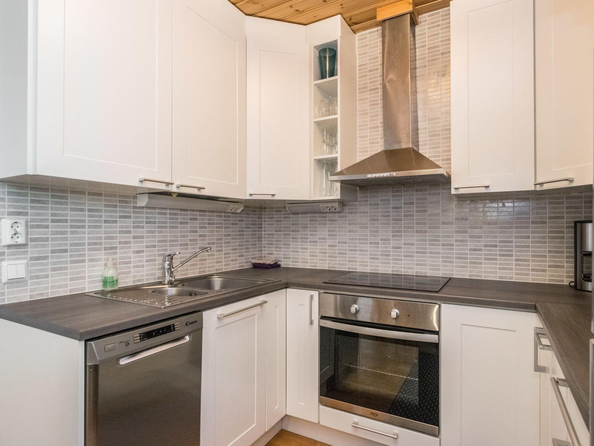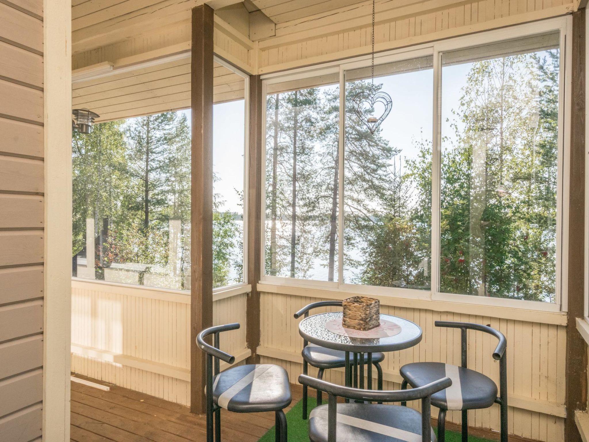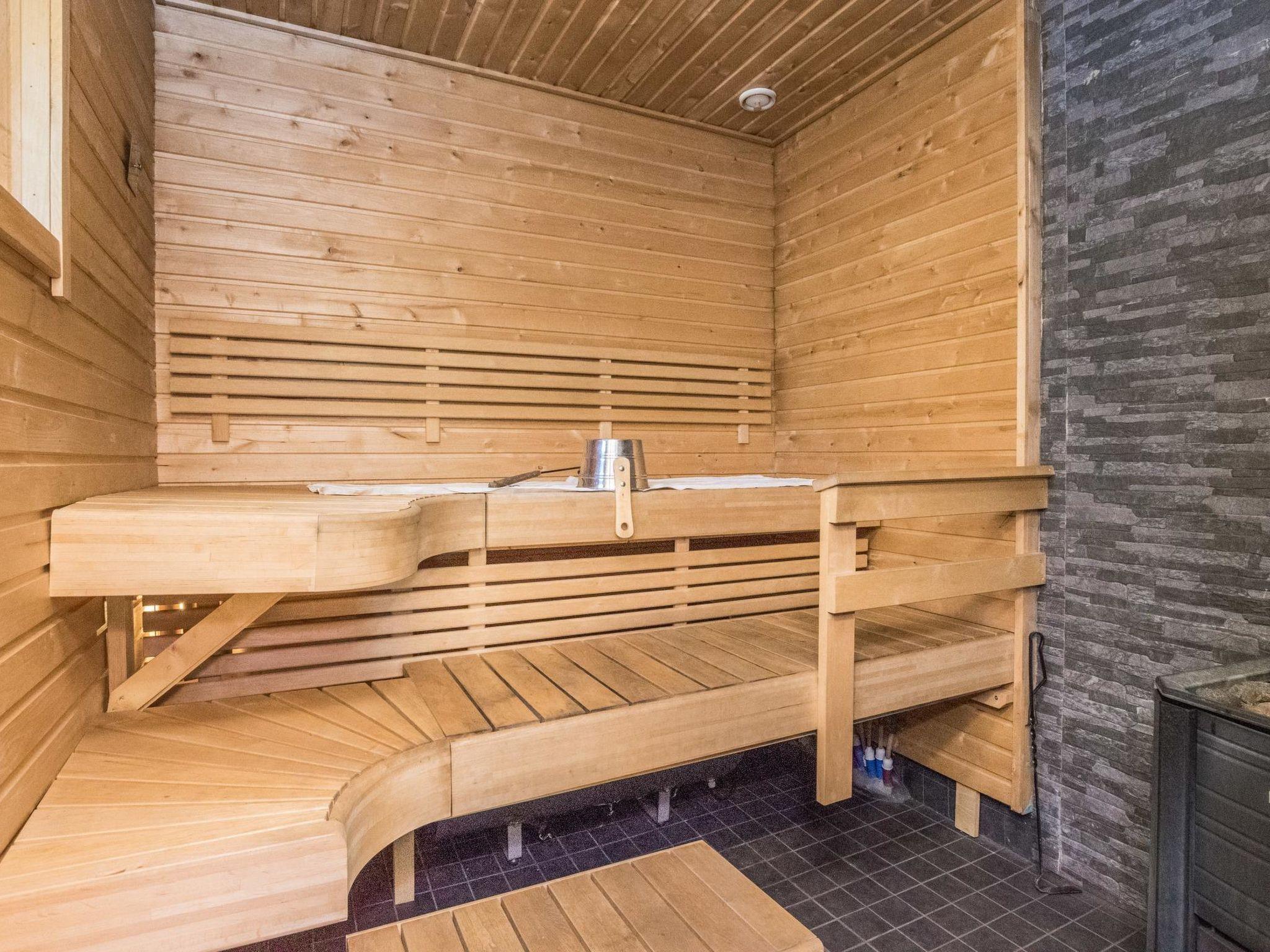 Wooden, inside log-paneled cottage built in 2013, combinated kitchen-living room with sofa bed for two, vestibule, bedroom with double bed and extra bed, bedroom with 2 beds, washroom with walk-in shower and toilet, wood heated sauna, utility/dressing room, spacious glass terrace with two seating groups.