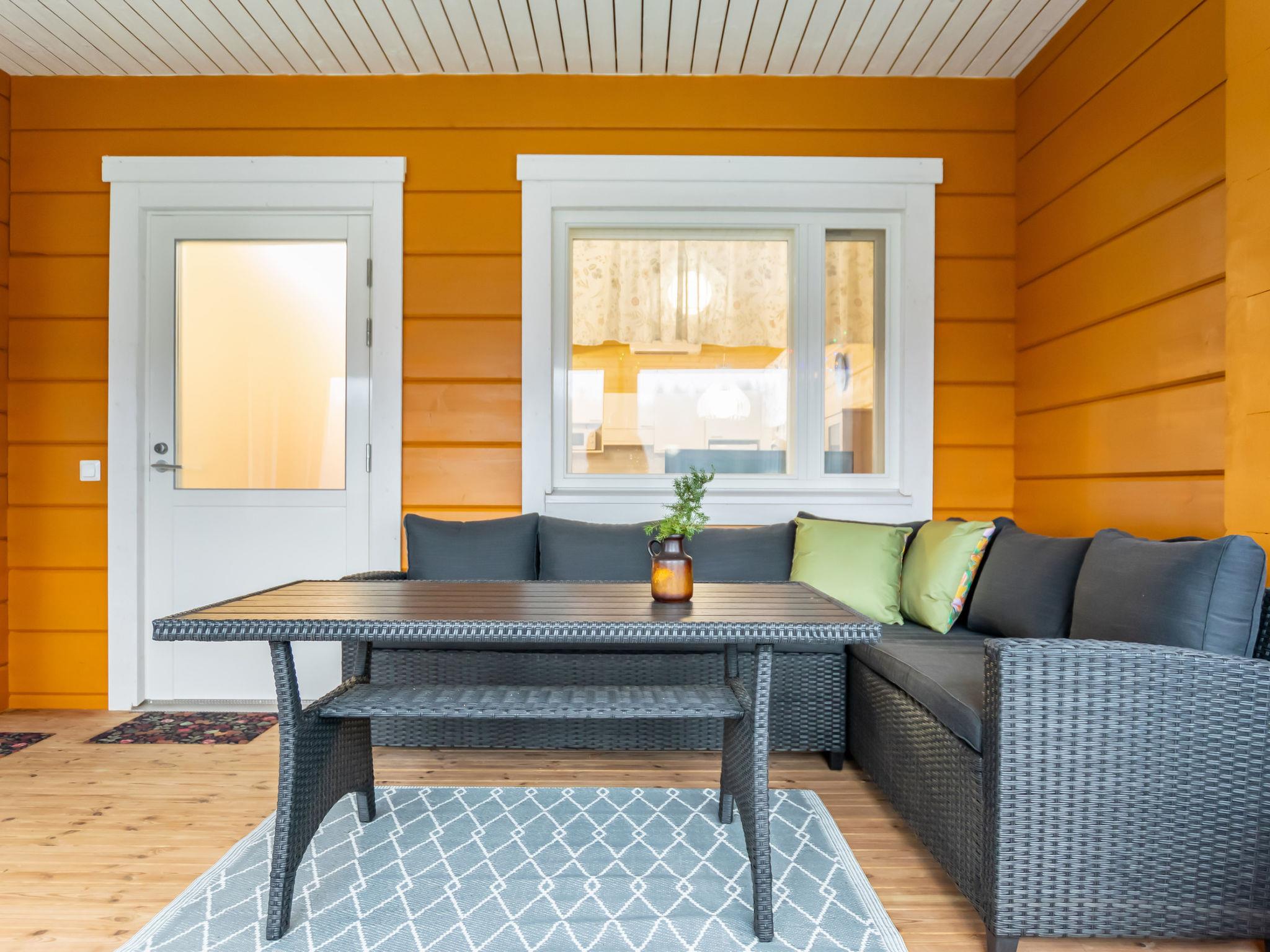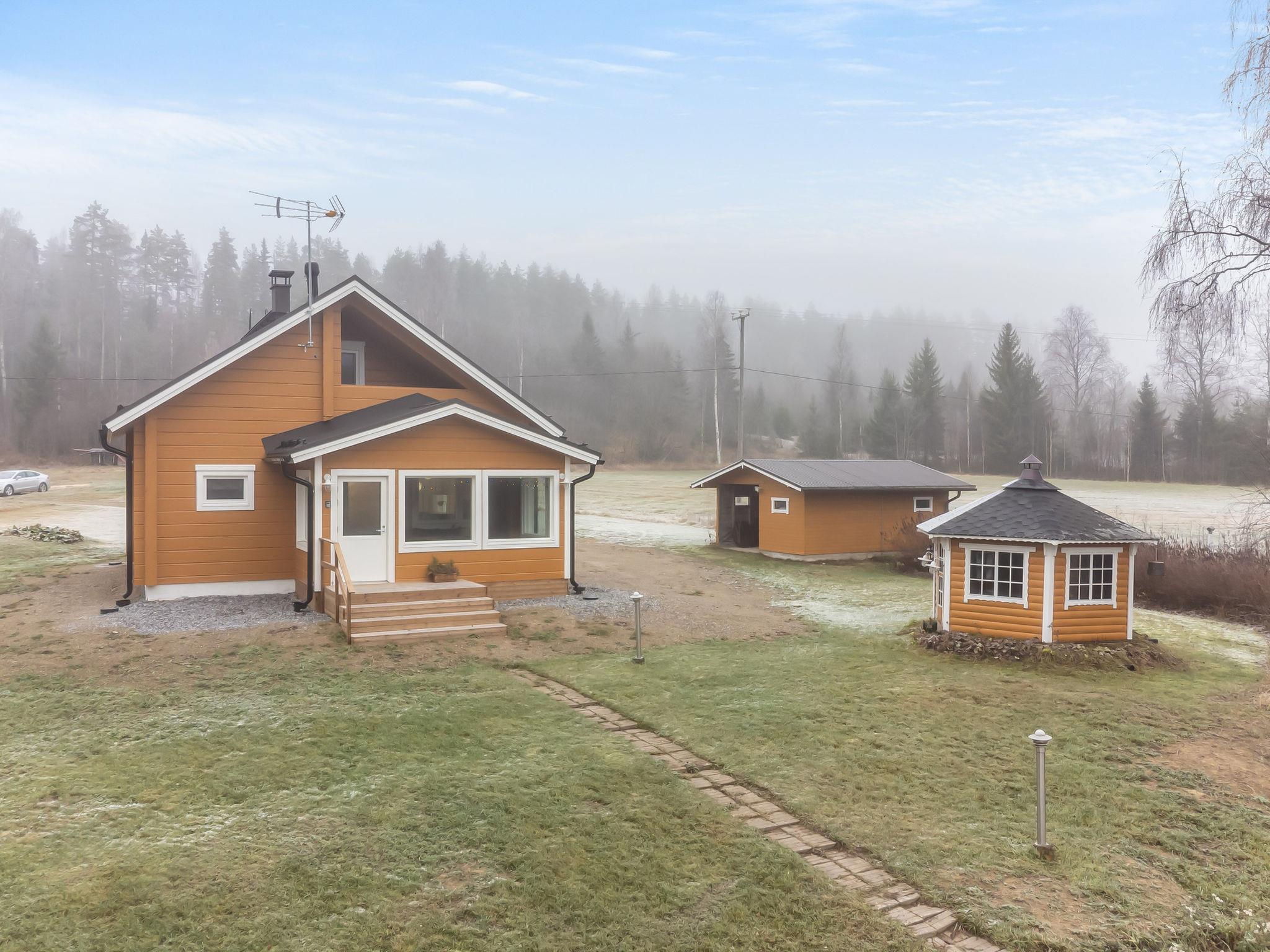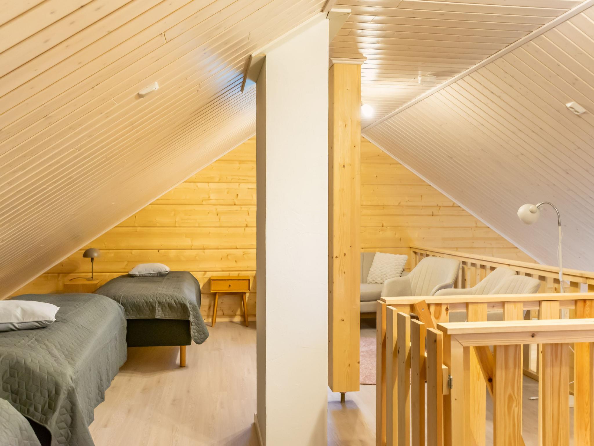 Built in 2025, the cottage has a kitchen-living room and a fireplace in the living room. The bedroom has a double bed and the spacious loft has four beds (steep stairs to the loft). The sauna has a wood-fired stove and the washroom has a shower. The dressing room also has a washing machine and dryer. Separate toilet. There is a balcony upstairs and a glazed terrace downstairs. Air source heat pump. The yard has a barbecue hut, carport, and jetty.