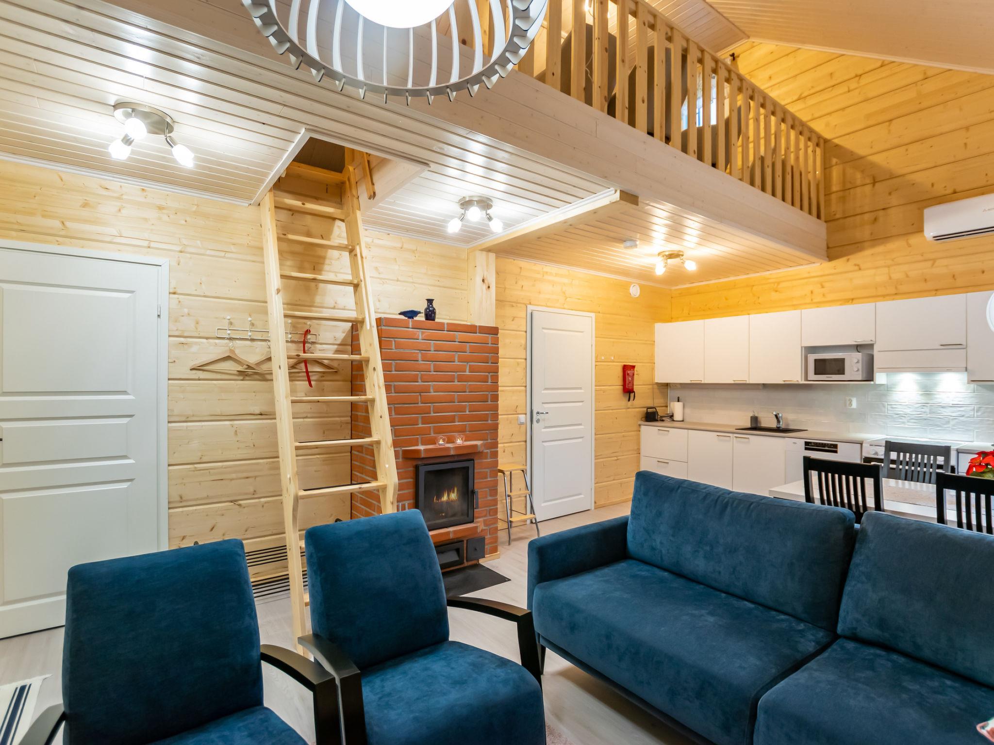 A spacious, partially two-story log cabin with amenities on the shore of Lake Savenkaita. Distance to the shore: 40 m.
