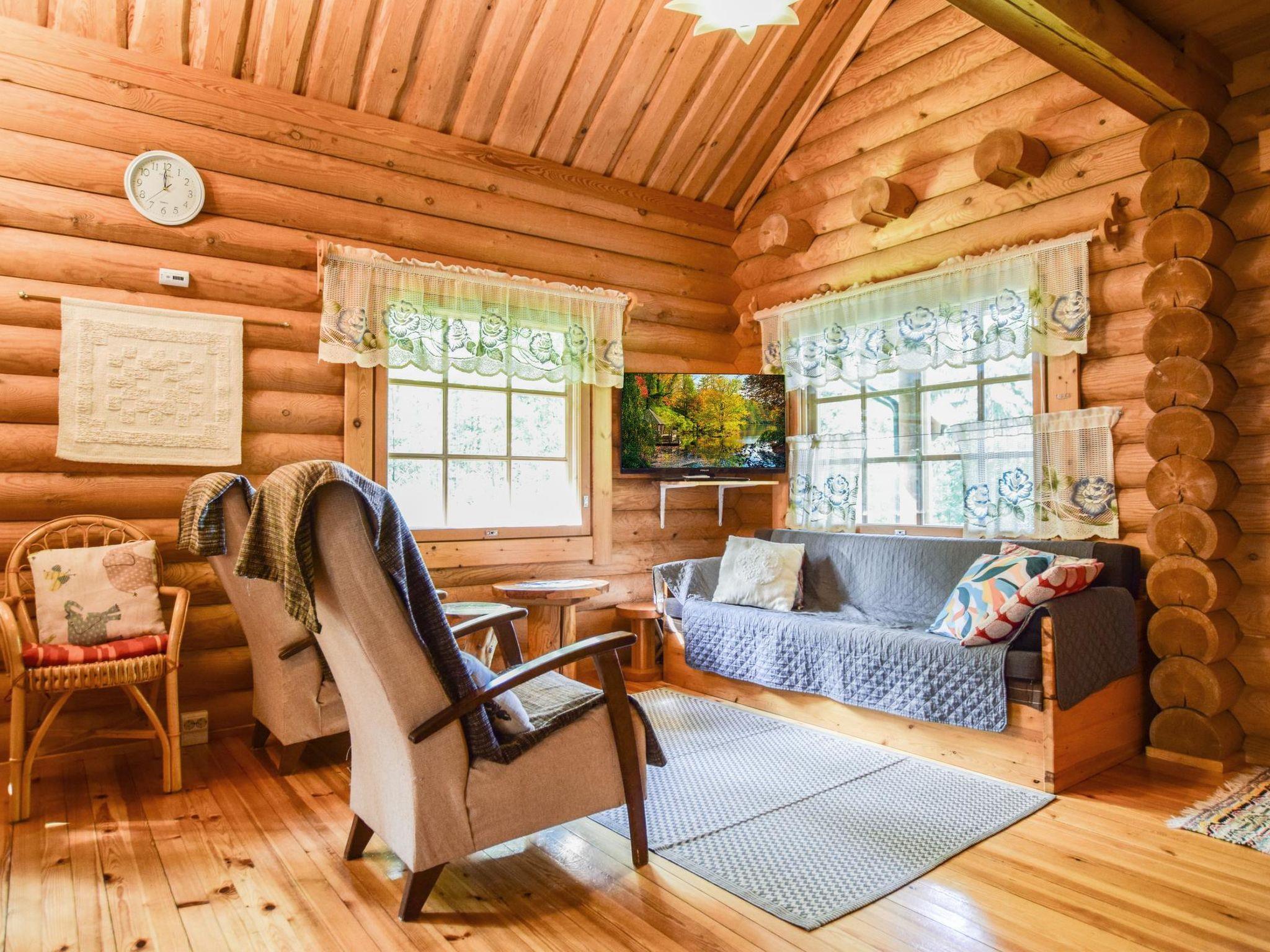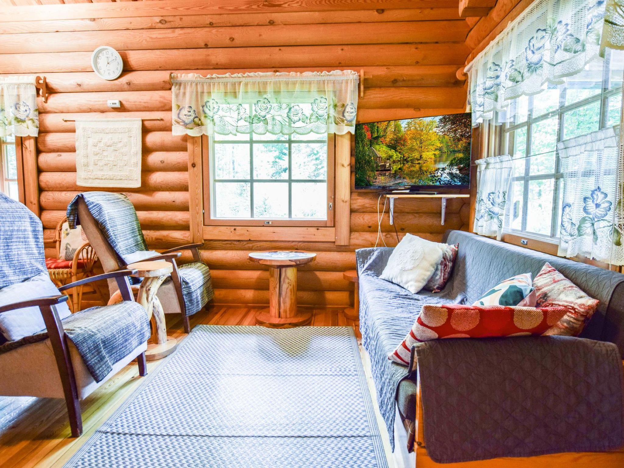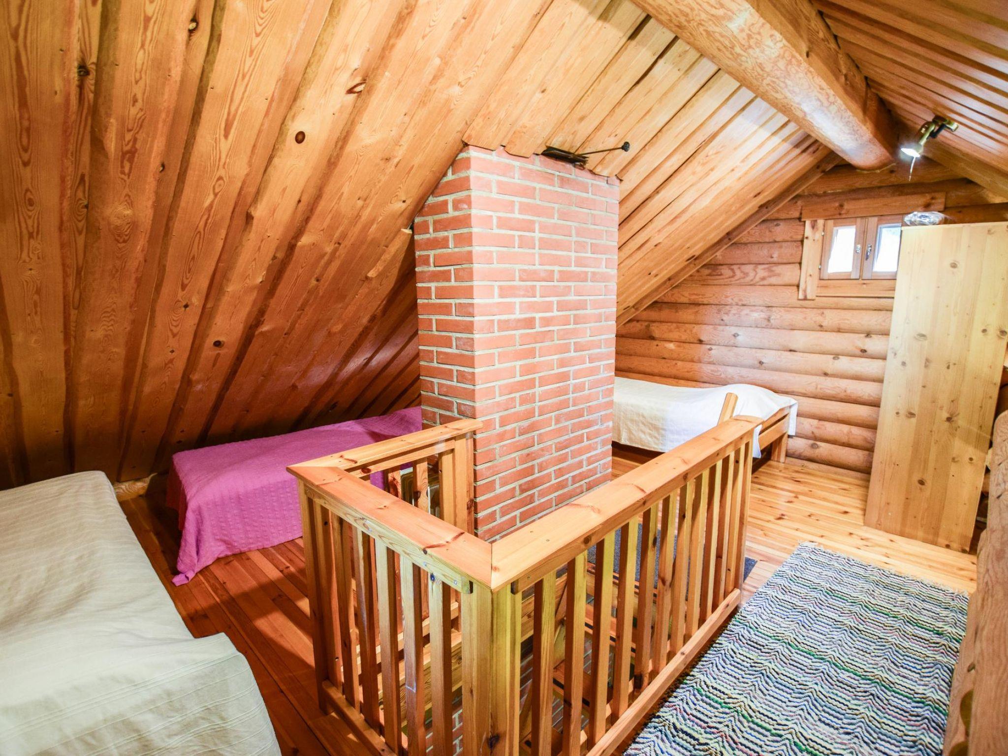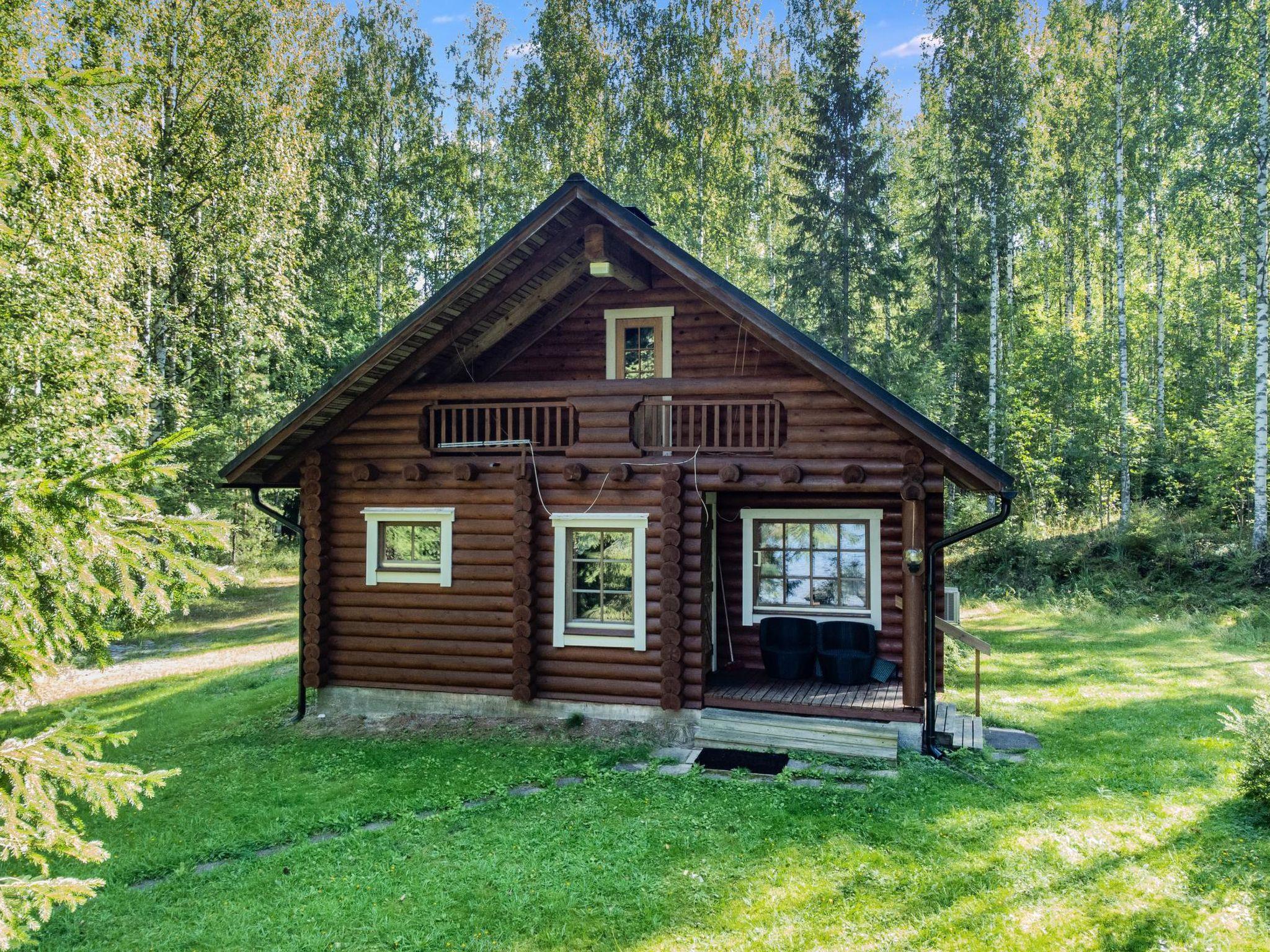Roundlog building 1997, living room/kitchen, bedroom 2 beds, sleeping loft 2 beds and 1 extra bed plus balcony, washroom, sauna, open porch. Living room/kitchen has convertible sofa/bed as optional bed. Cottage has heating pump/inverter air conditioning system, wood-burning stove/kitchen range, underfloor heating in washroom. Lakeshore sauna with dressing room and attached room with 2 summer beds.