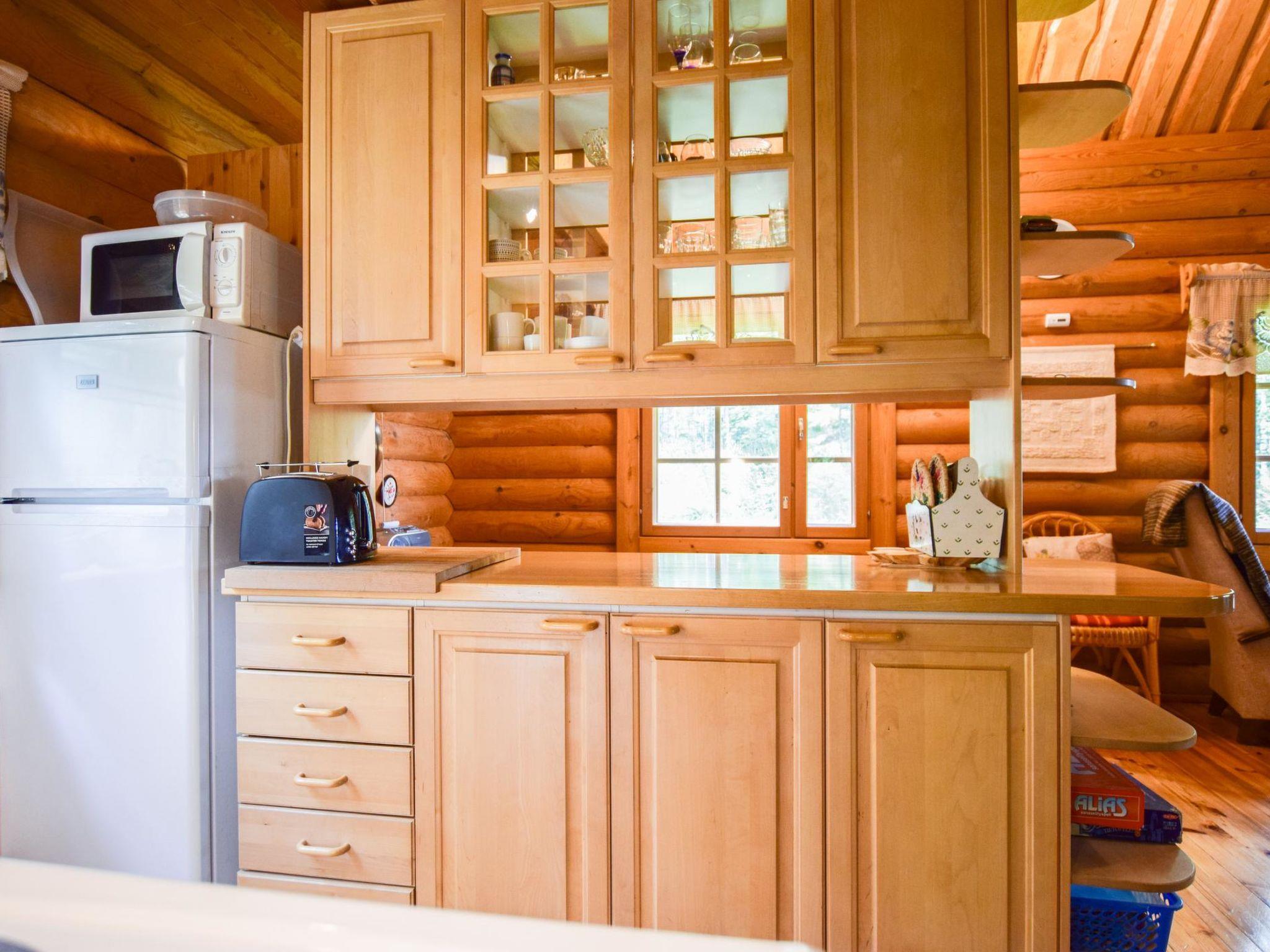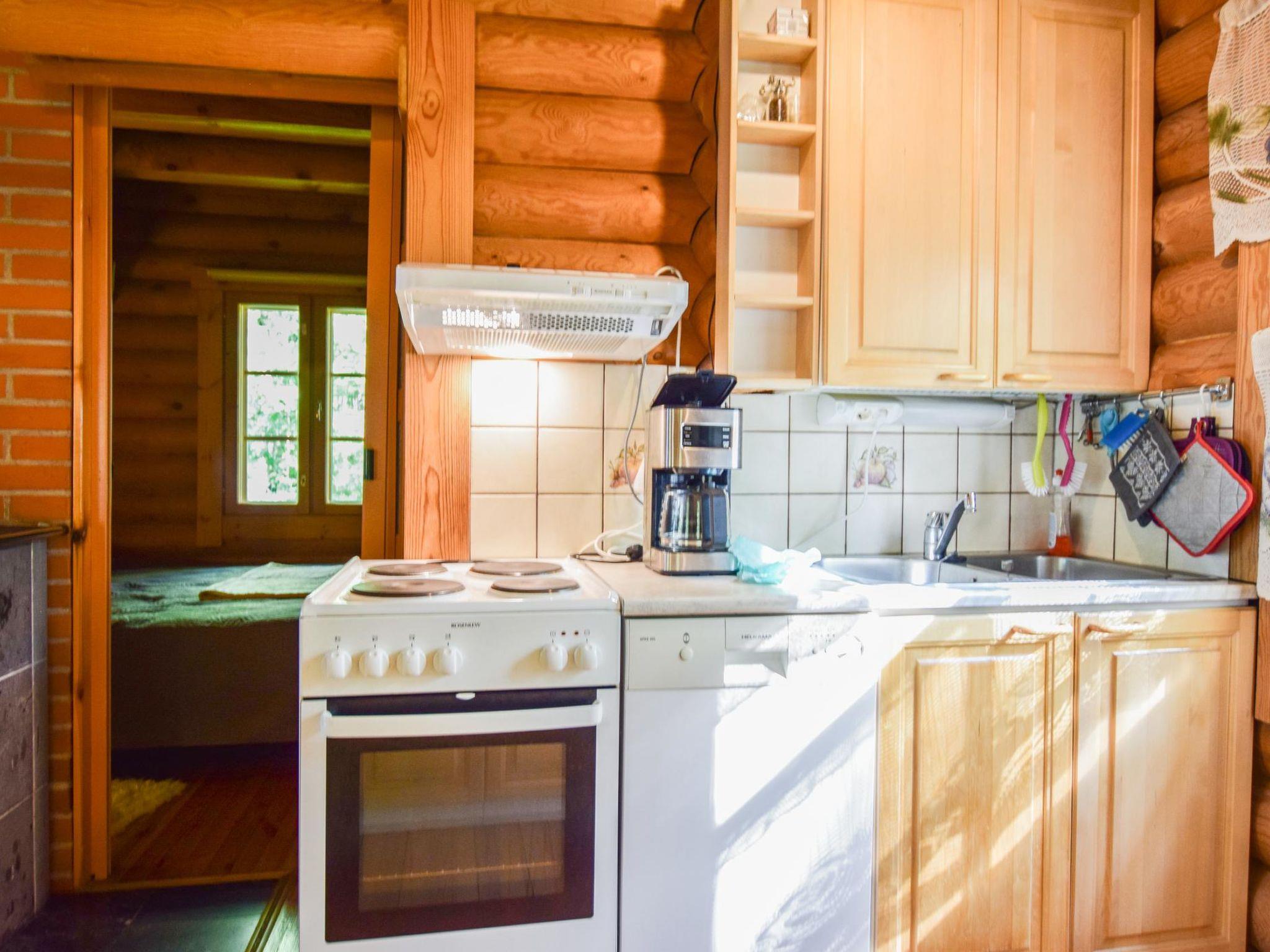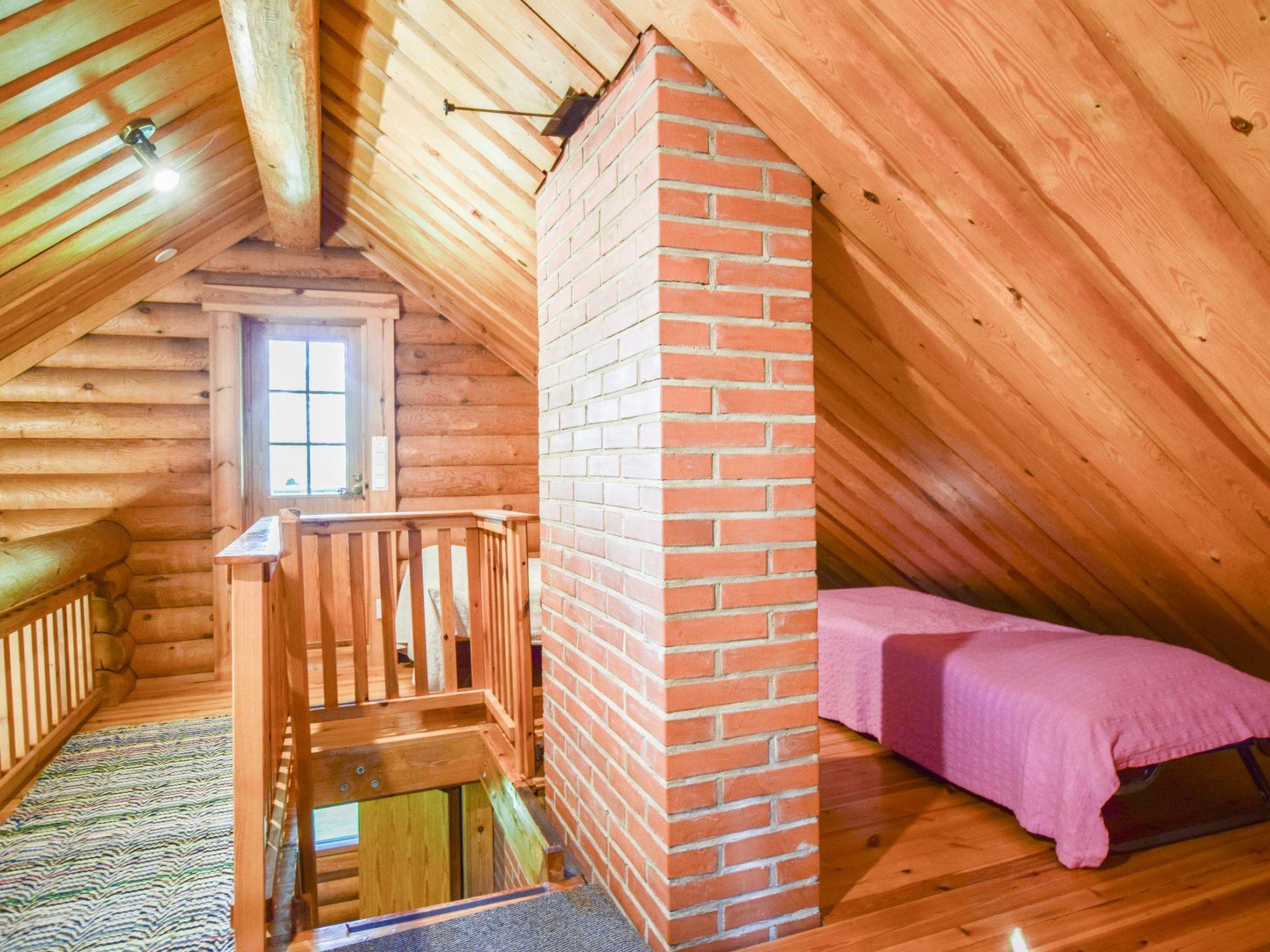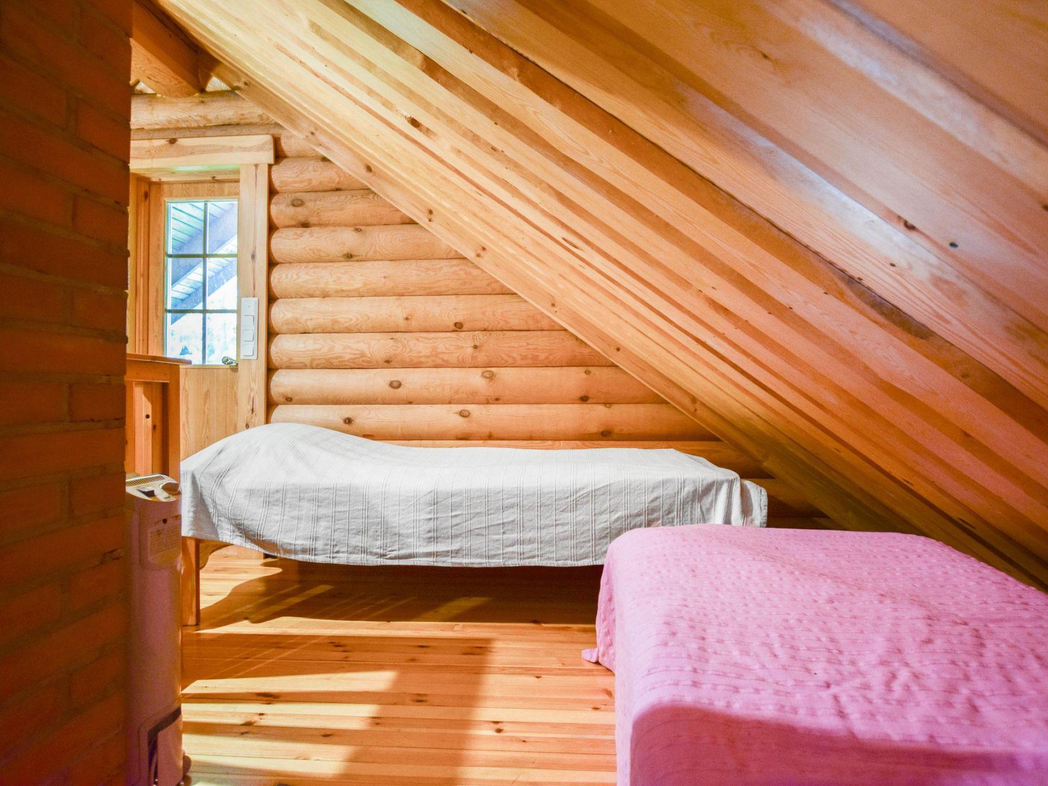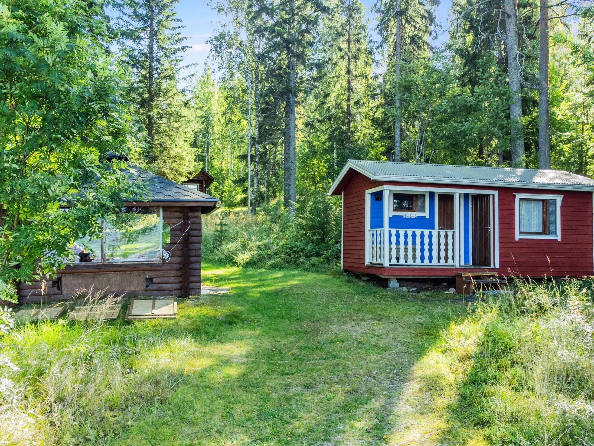 Roundlog building 1997, living room/kitchen, bedroom 2 beds, sleeping loft 2 beds and 1 extra bed plus balcony, washroom, sauna, open porch. Living room/kitchen has convertible sofa/bed as optional bed. Cottage has heating pump/inverter air conditioning system, wood-burning stove/kitchen range, underfloor heating in washroom. Lakeshore sauna with dressing room and attached room with 2 summer beds.