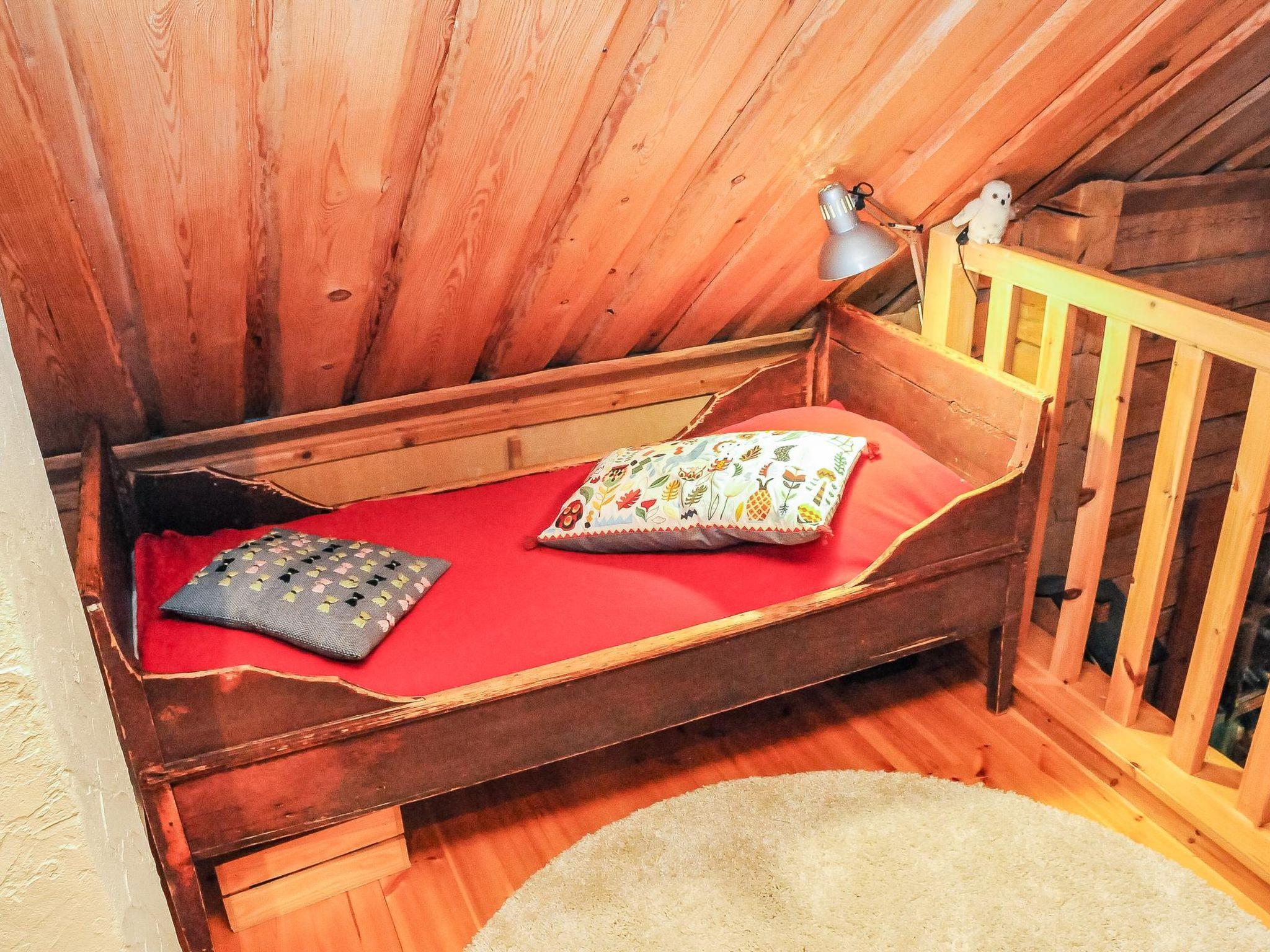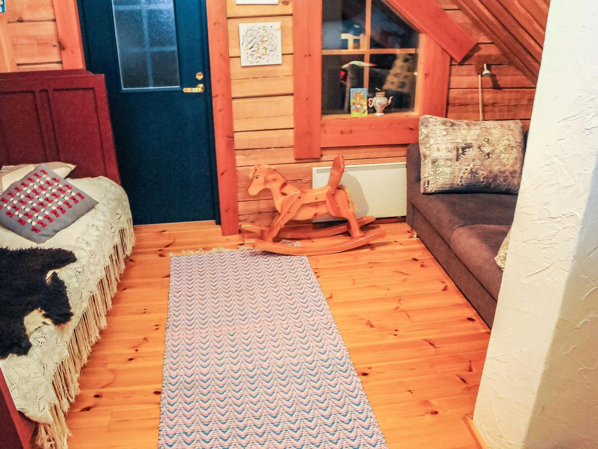 90 km north of Jyväskylä, Lake Keitele 25 m, a pier, private rowing boat, shallow beach with sandy bottom. Log cabin (built in 2011) comprises a living room/kitchen, living area with a heat storing fireplace and air source heat pump, dining table for six, and a sofa. On the ground floor, there is a bedroom with a double bed. Separate WC, sauna with a wood-burning sauna stove, and a bathroom with a shower and hydro massage bath. The upper floor includes another double bed, a sofa bed measuring 135 x 185 cm, and two additional beds (70 x 190 cm and 80 x 170 cm), suitable for children.