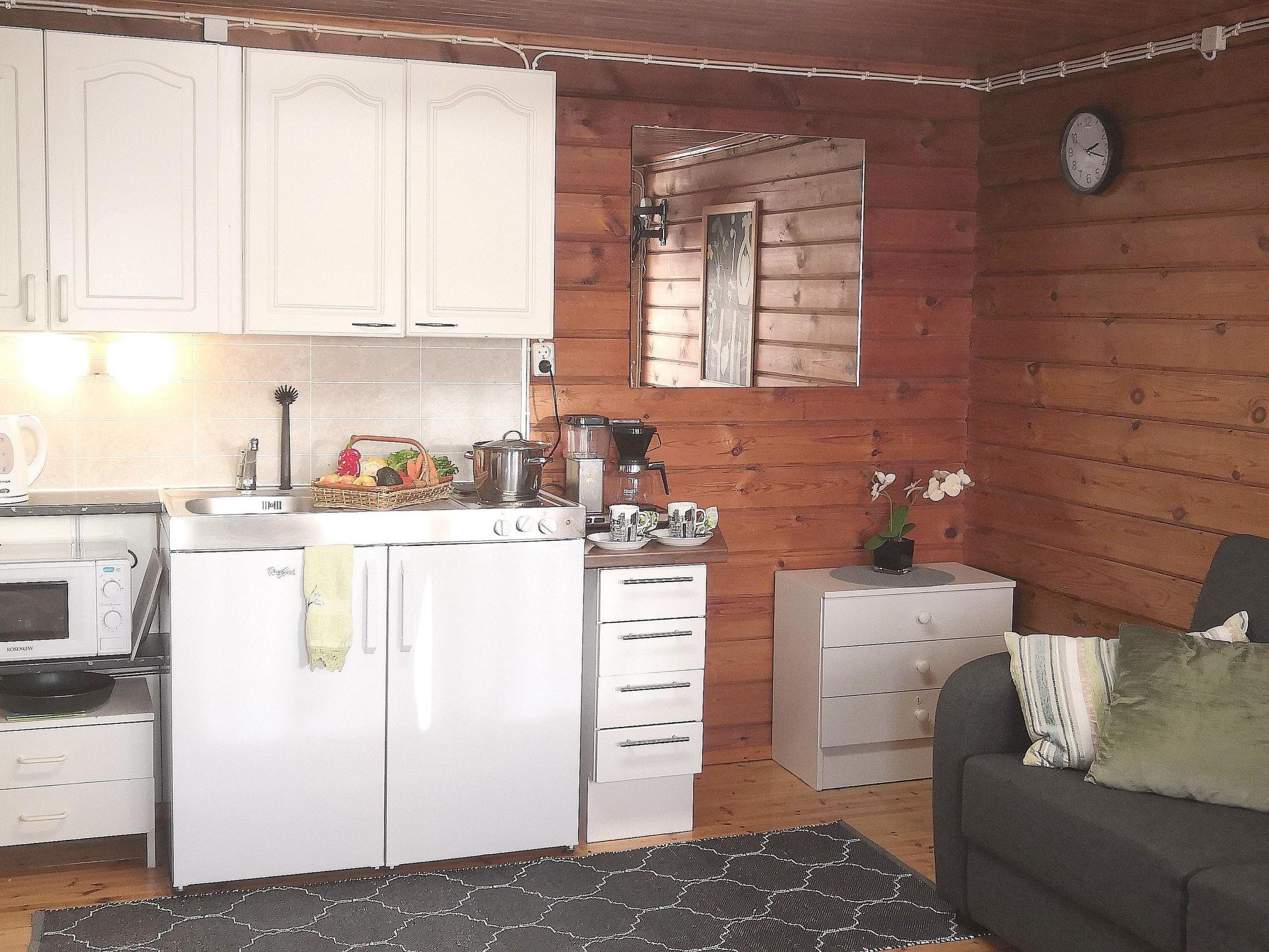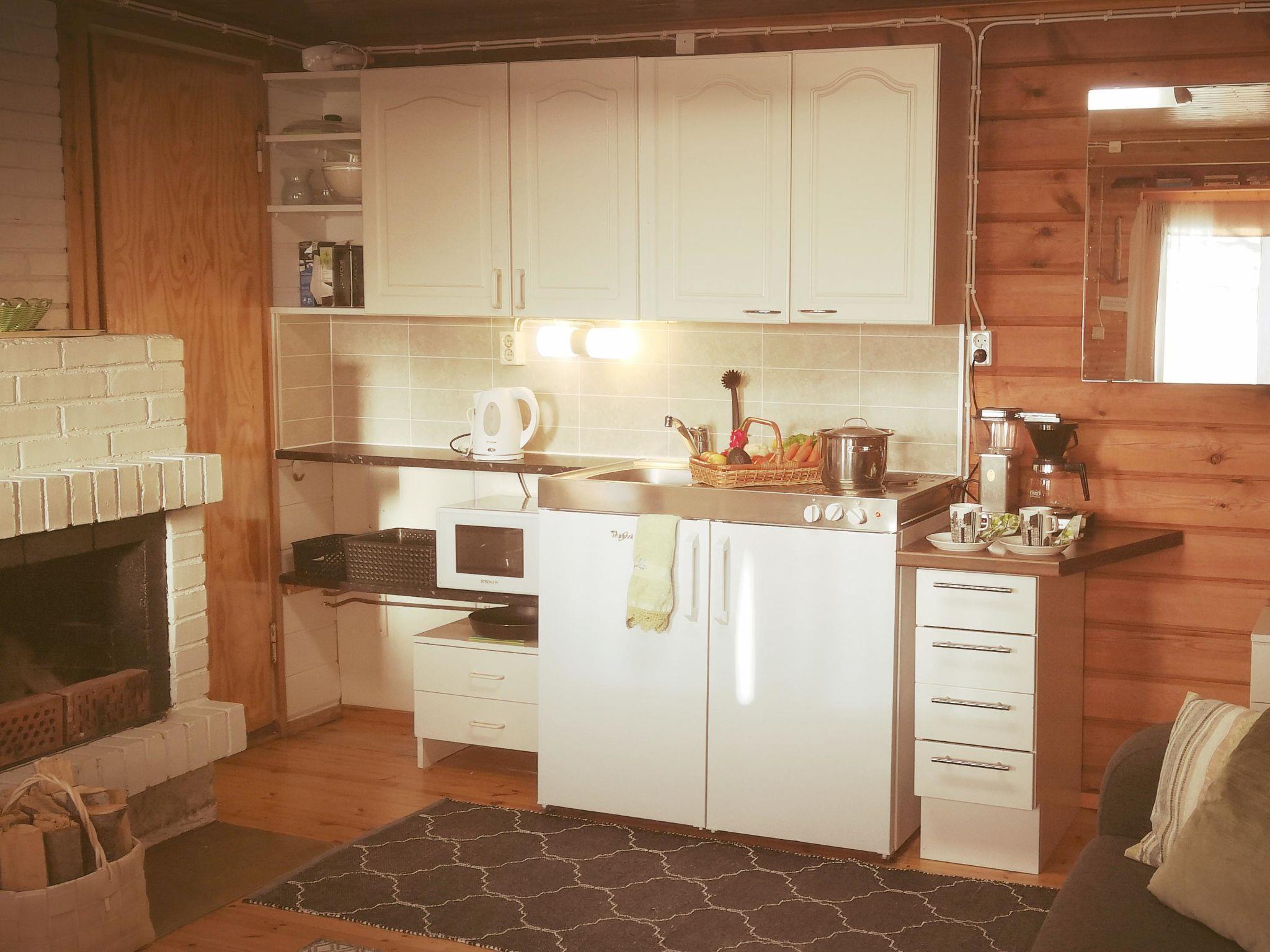 Log cabin 1966, renovated 1990, living room/kitchen sofa bed, bedrooms 2 beds, veranda. Own separate log sauna. Cottage has a mini kitchen.