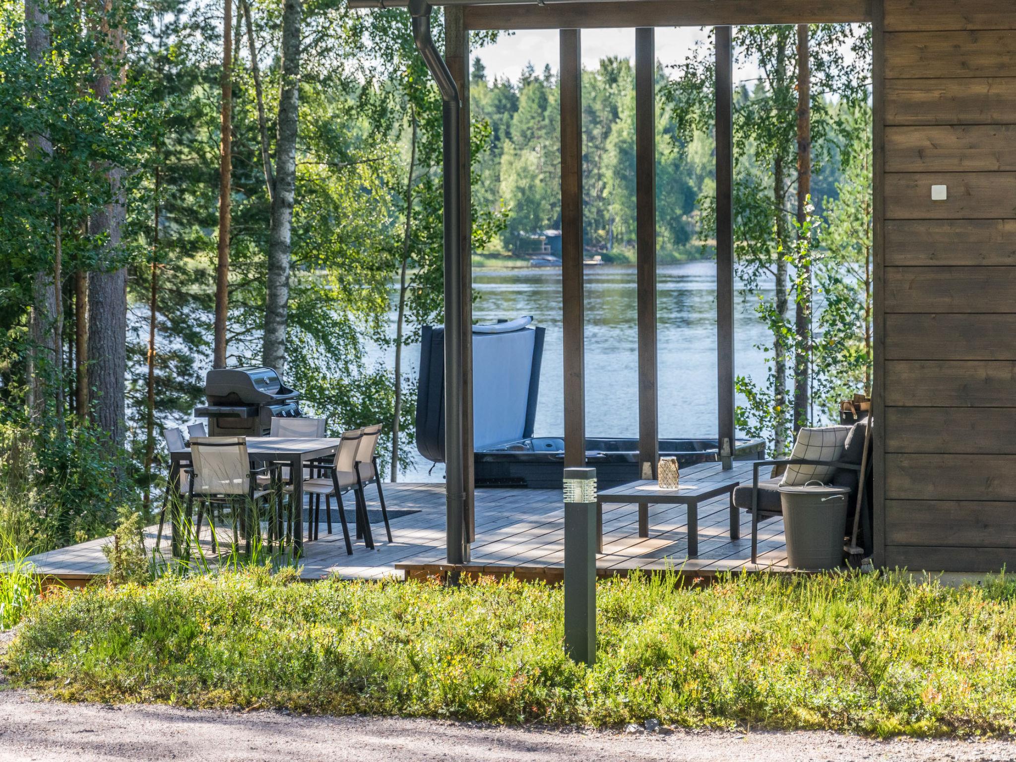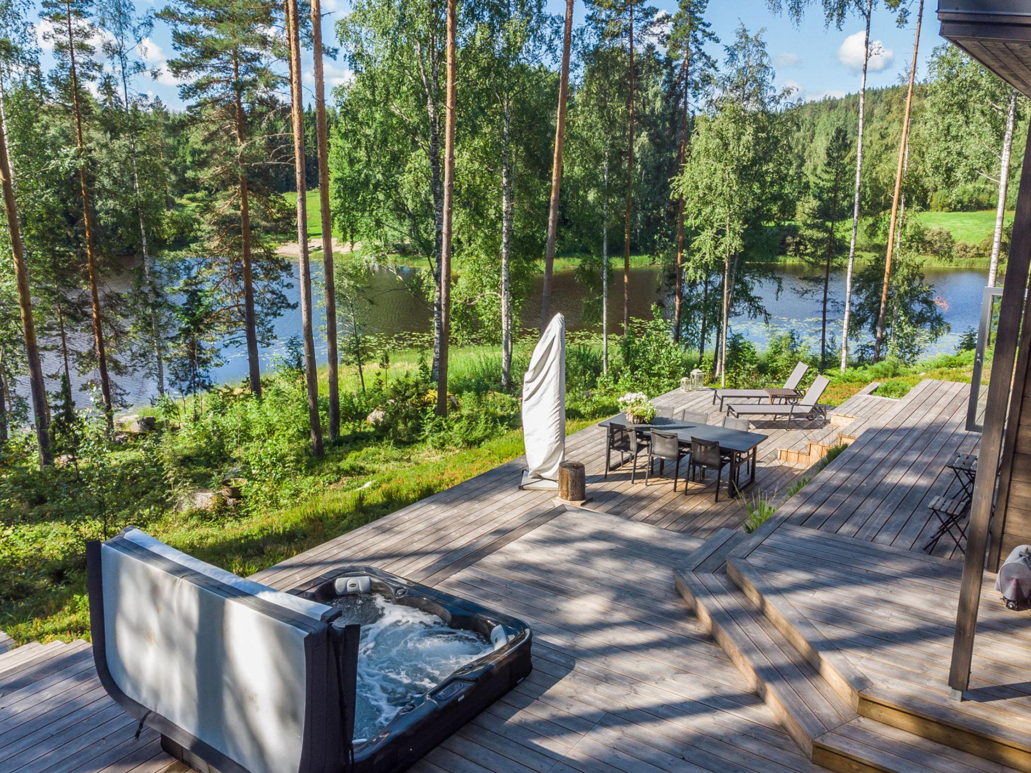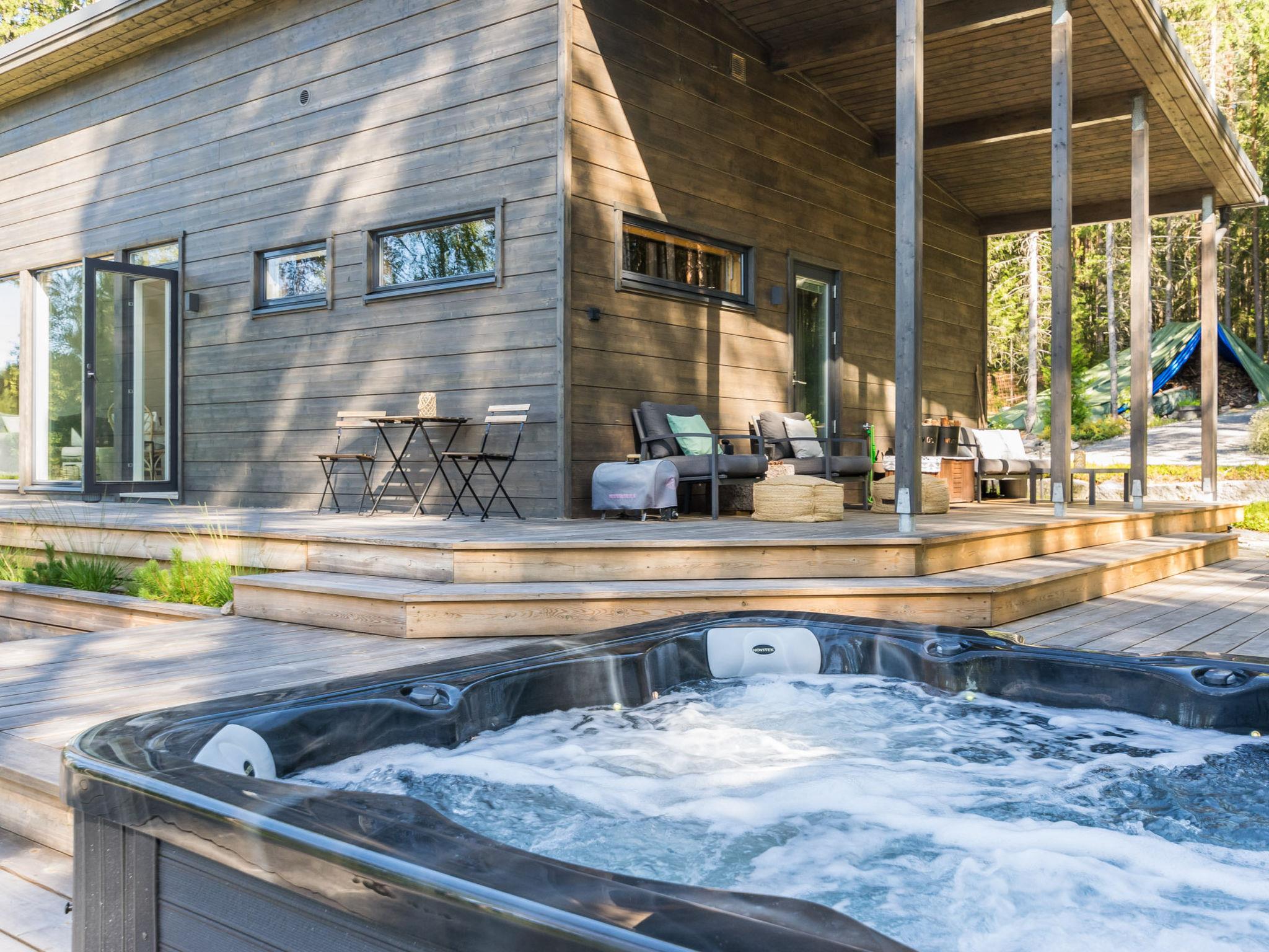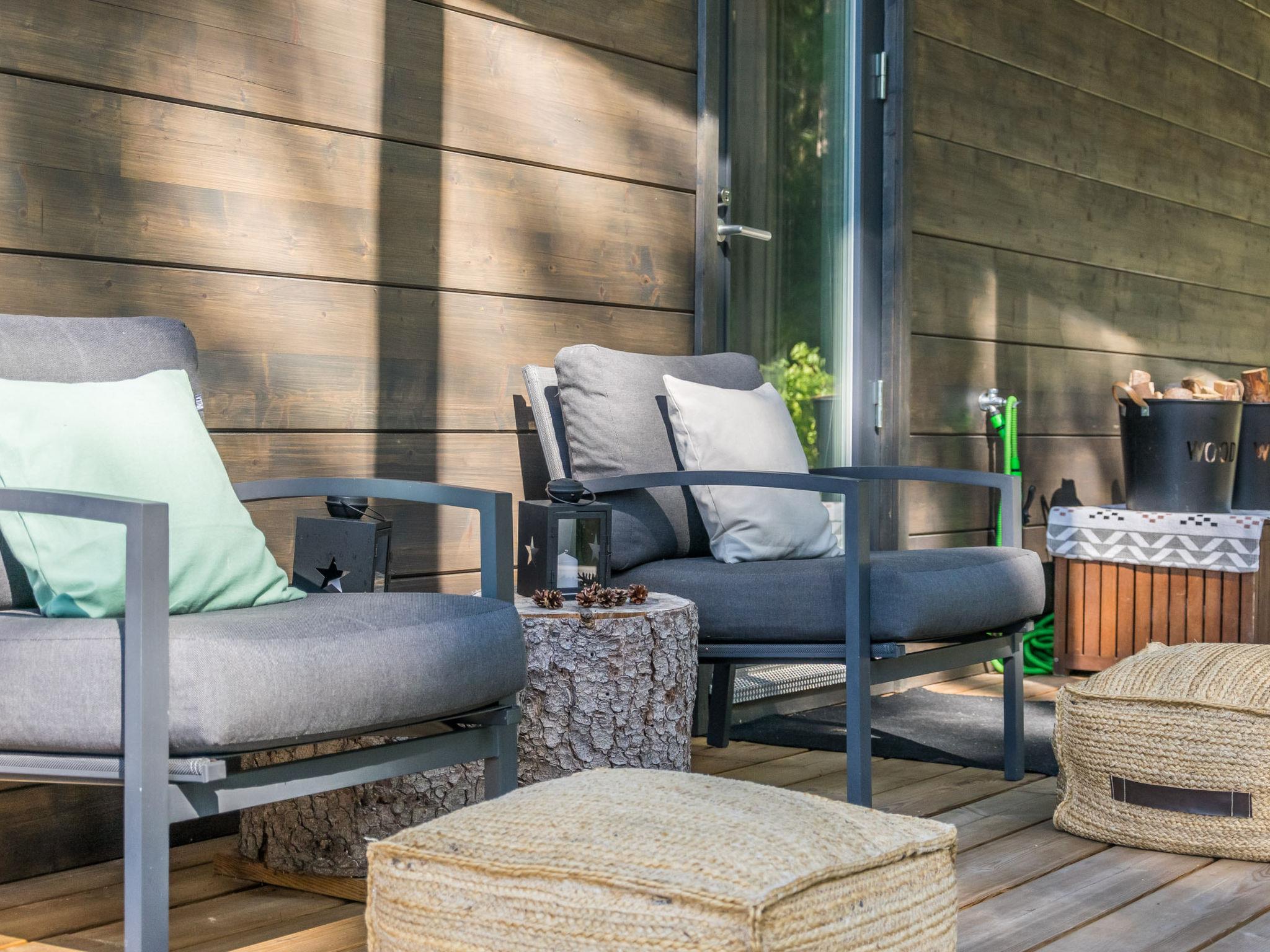 Stylishly decorated and well-equipped cabin in a peaceful location by Lake Tarjanne. The spacious terraces and beautiful interior create a wonderful setting for enjoying a cabin holiday. The sun shines all day on different parts of the yard. The large terrace surrounding the cabin features several outdoor furniture sets. There is a whirlpool on the terrace, offering a lovely view of Lake.