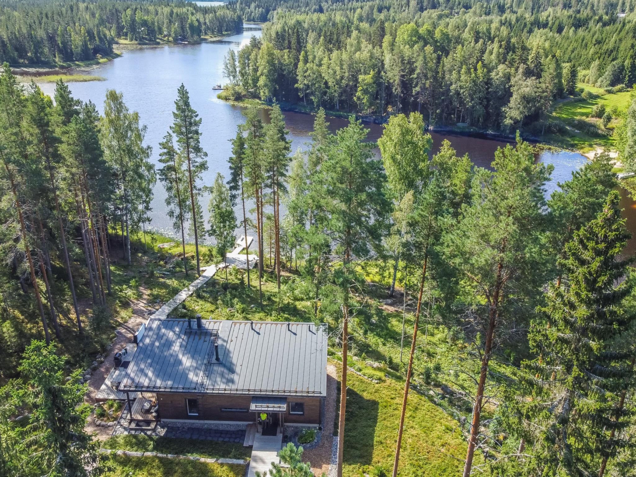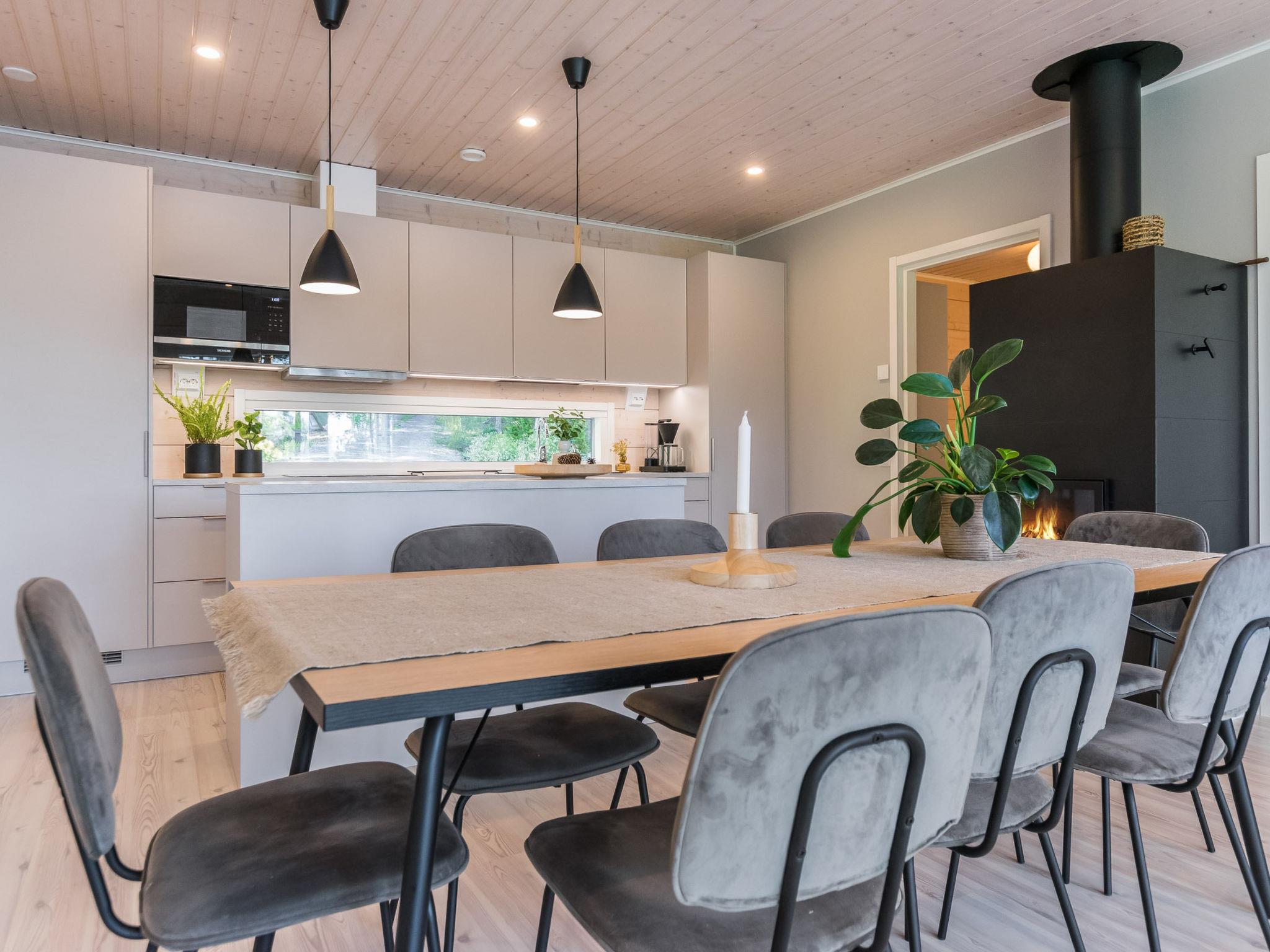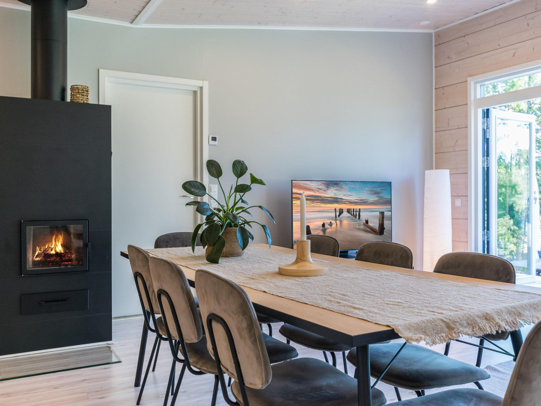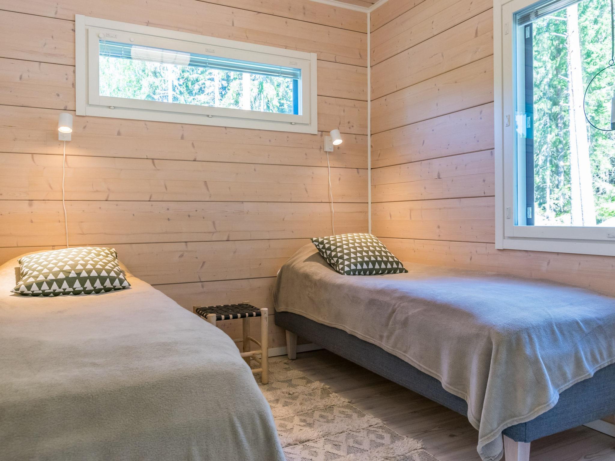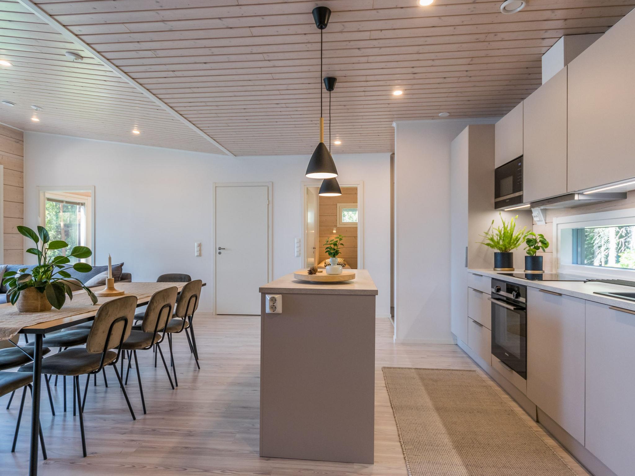 Located 116 km north of Tampere, with Lake Tarjanne just 35 m away, the area has a rapidly deepening gravel bottom, a dock, and a private rowing boat. This log cabin (built in 2021) includes a spacious living room/combined kitchen/living room, a large dining area with seating for eight people, a fireplace, a TV, and a seating group. The cabin has three bedrooms: Bedroom 1 has a double bed, Bedroom 2 has two single beds, and Bedroom 3 has two single beds. Additionally, the sofa in the living room can be converted into an extra mattress for two (140x200 cm). The cabin also features a utility room. The sauna has both a wood-burning and an electric stove. The bathroom includes two showers.