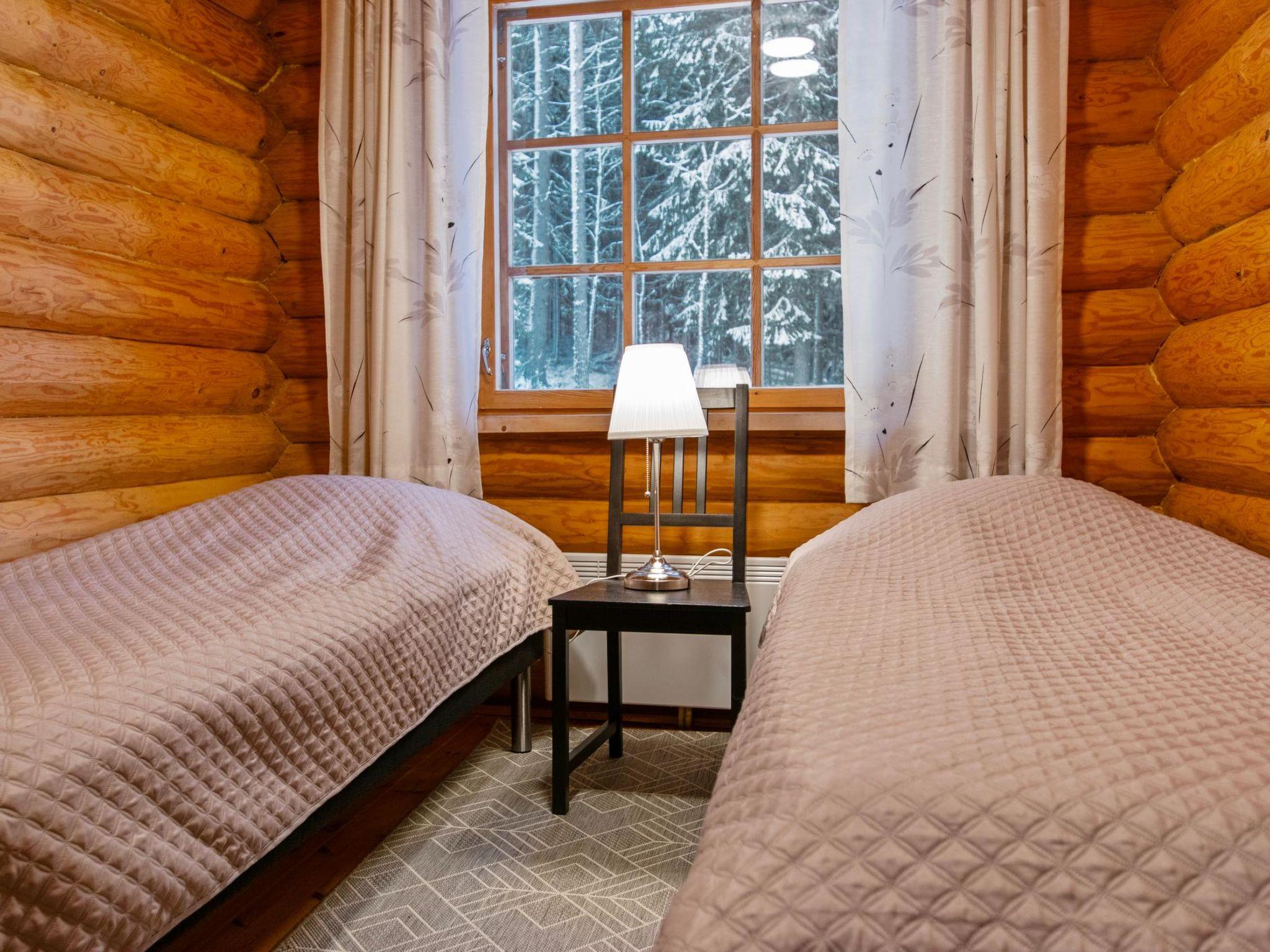 Cozy round log cabin in Karhe, Ylöjärvi, located in a beautiful spot on the shore of Lake Kitari, just about 35 km from Tampere. The cabin has 2 sleeping alcoves (with curtains at the doorways), each with two beds. The large living area has an open fireplace, a TV, a dining table for four, and a sofa. The living area windows offer a wonderful view of the lake. The cabin also has a separate kitchen. The sauna has a wood-burning stove, and the washroom includes a shower and a WC.