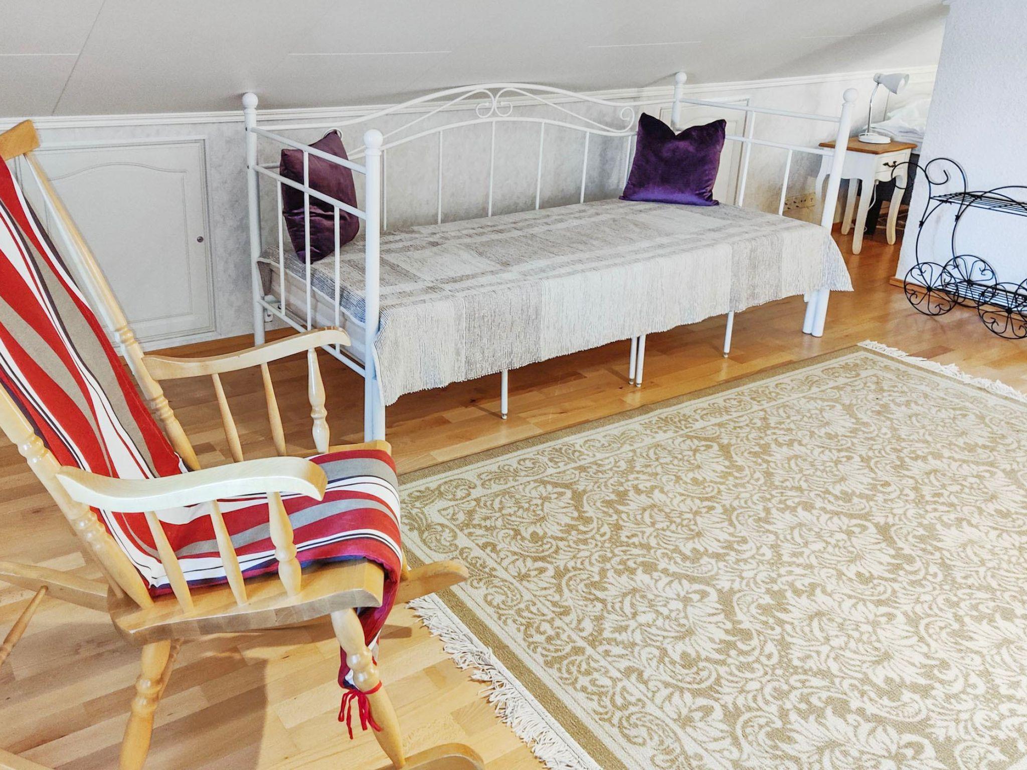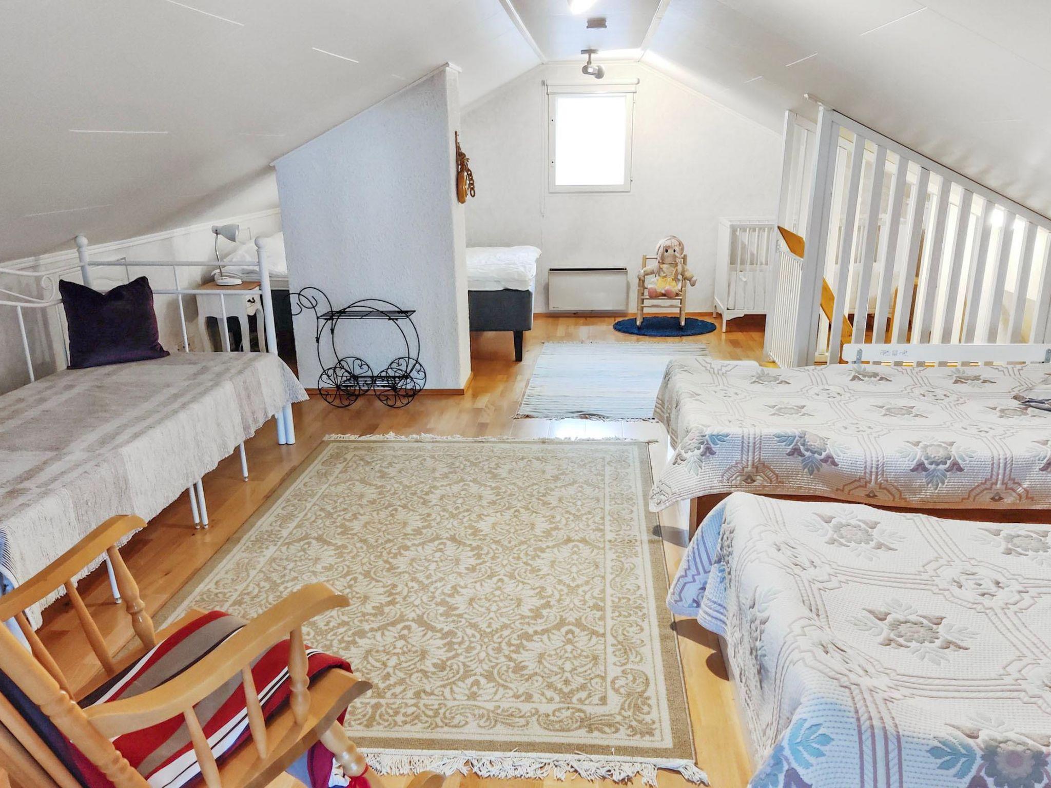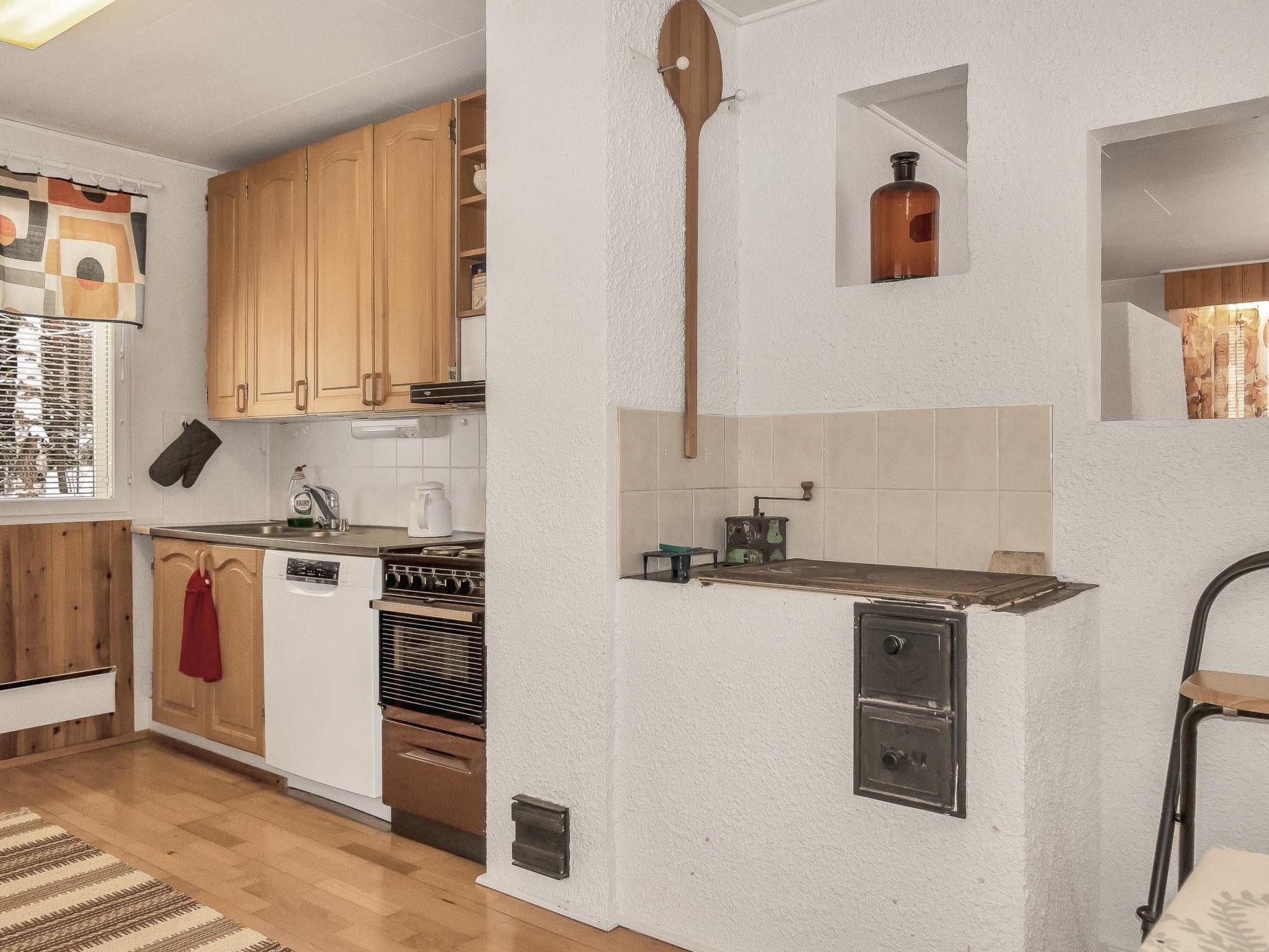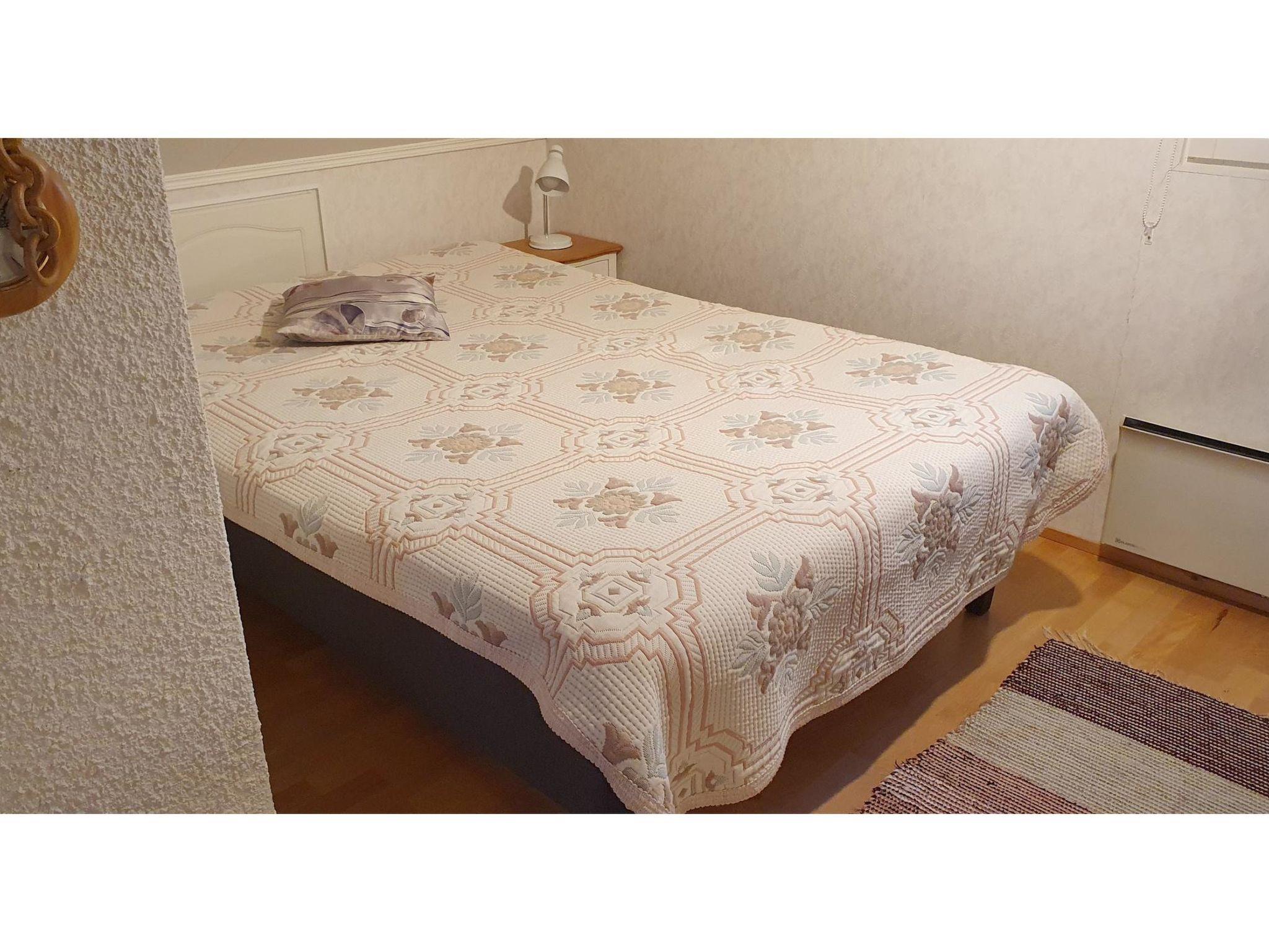Log paneled cabin, built in 1997. Living room / kitchen with sofa bed, upstairs a double bed and two single beds (beds are 1 m wide) and sofa bed, steep stairs to the loft. Washroom / toilet, covered terrace and balcony. There is shower in the cabin, but no indoor sauna.