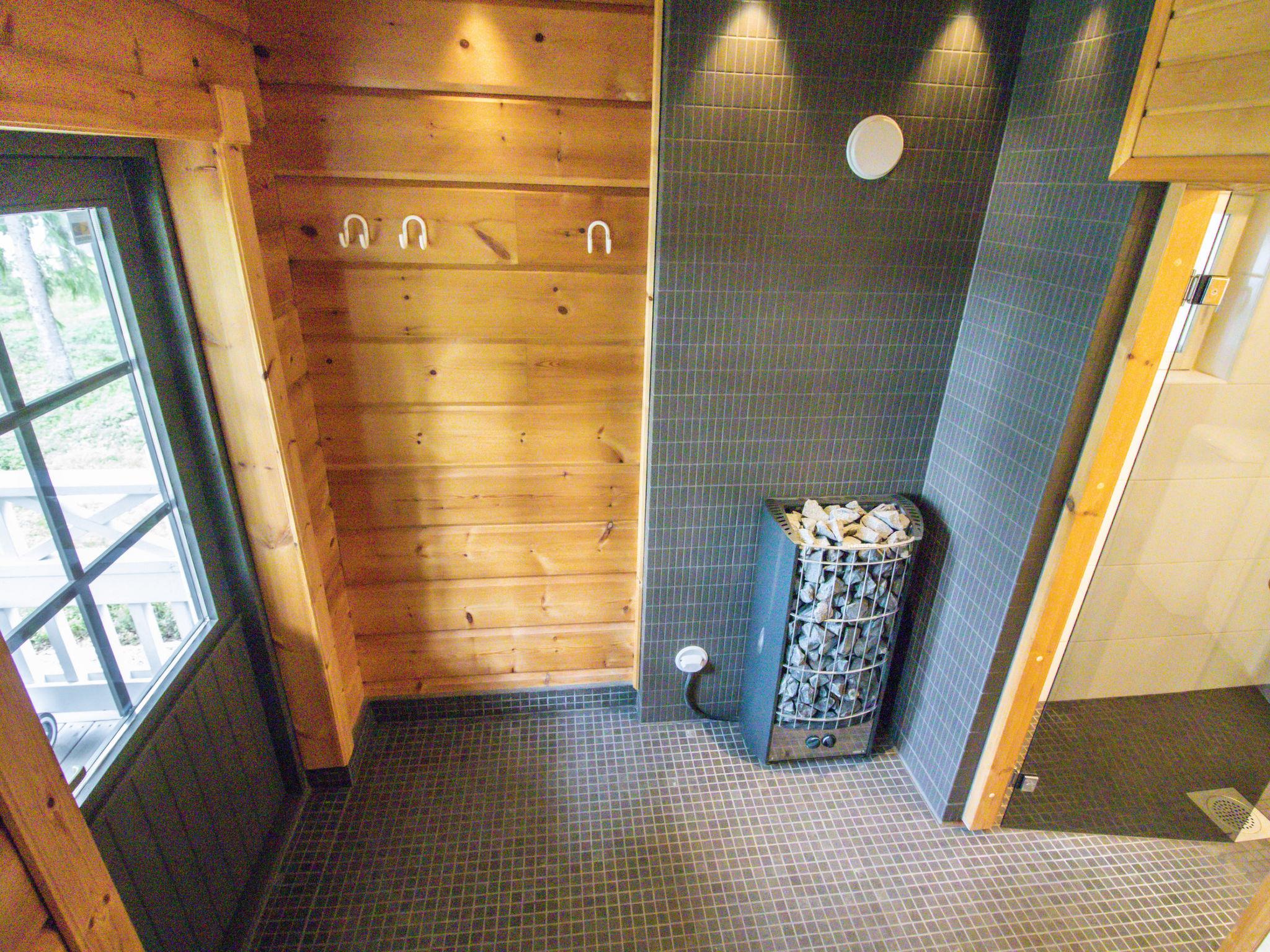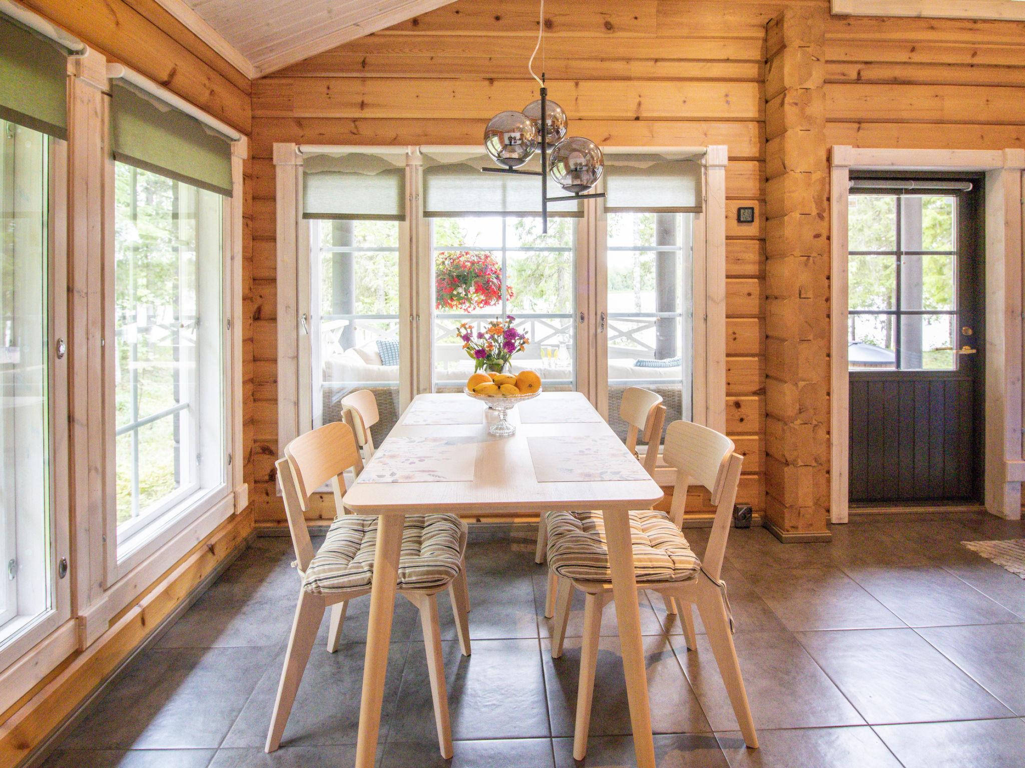Villa White Water is a two-story Honkarakenne holiday home with thermal log construction. It has 80 m2, a living room, a kitchen-living room, two bedrooms, the first has 2 beds (width 90 cm), the second bedroom has a double bed (width 160 cm, beds available separately). The loft has 2 beds (width 80 cm). Electric sauna, washroom (1 shower) and a separate toilet. The cottage has underfloor heating, an air-source heat pump and a fireplace.
