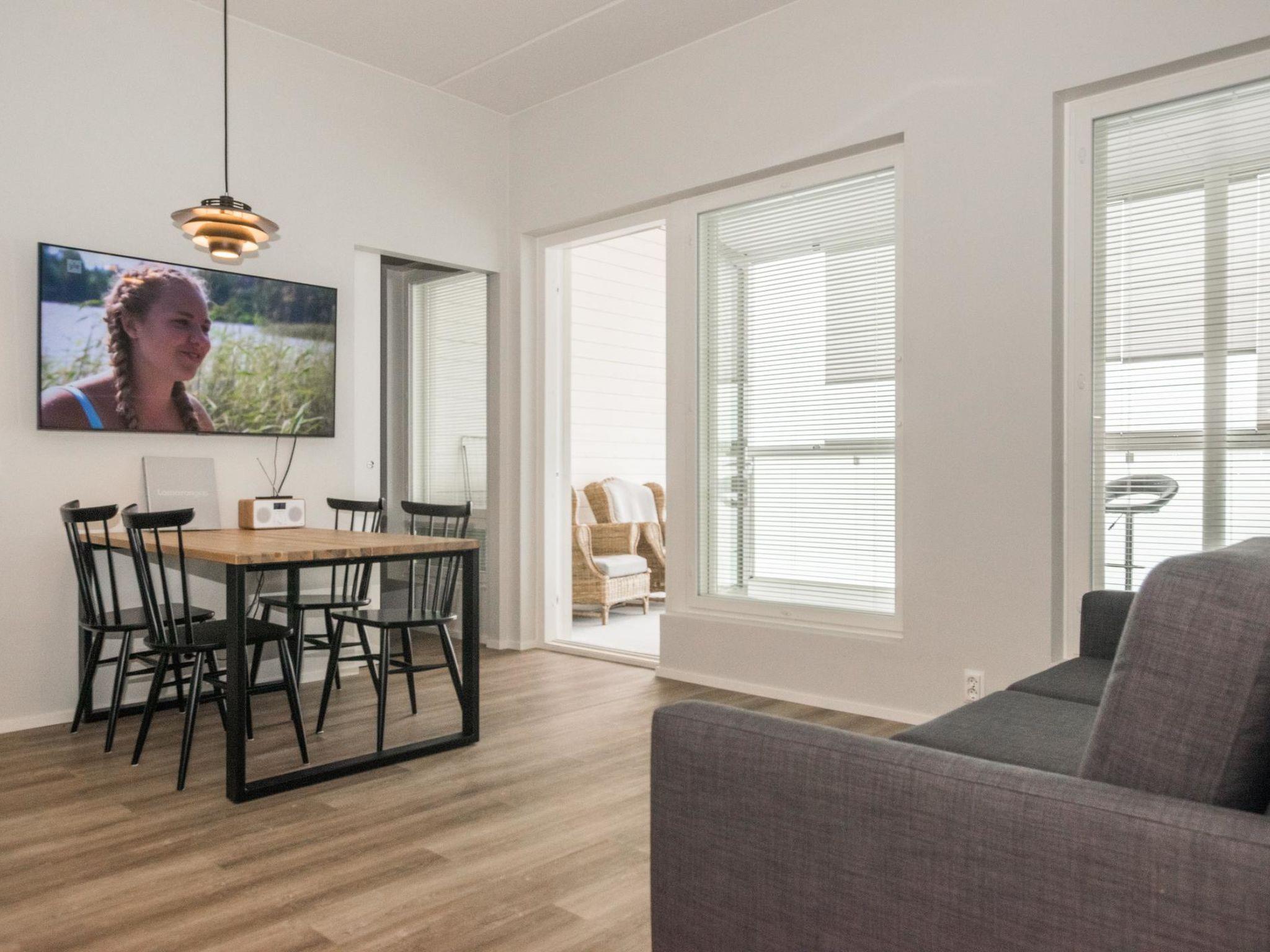 Dagmarin Kulma was built in 2023. It features a living room/kitchen, a living area with a sofa bed (140x190cm for two), and a sleeping alcove with a double bed. There is also an electric sauna, bathroom with shower, WC, washing machine, and a dryer. The spacious glazed balcony has a sofa set for relaxation. The building's inner courtyard offers a parking space with the option for car heating or electric car charging.
