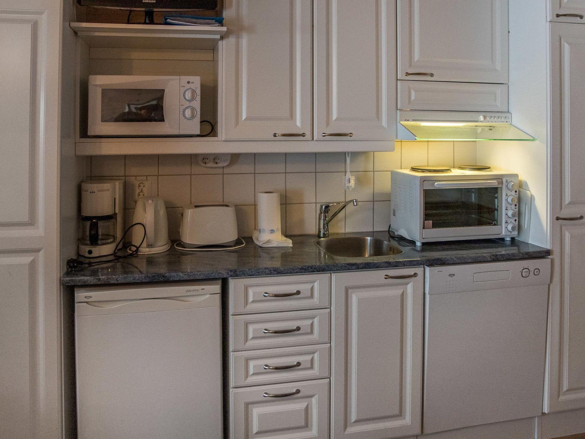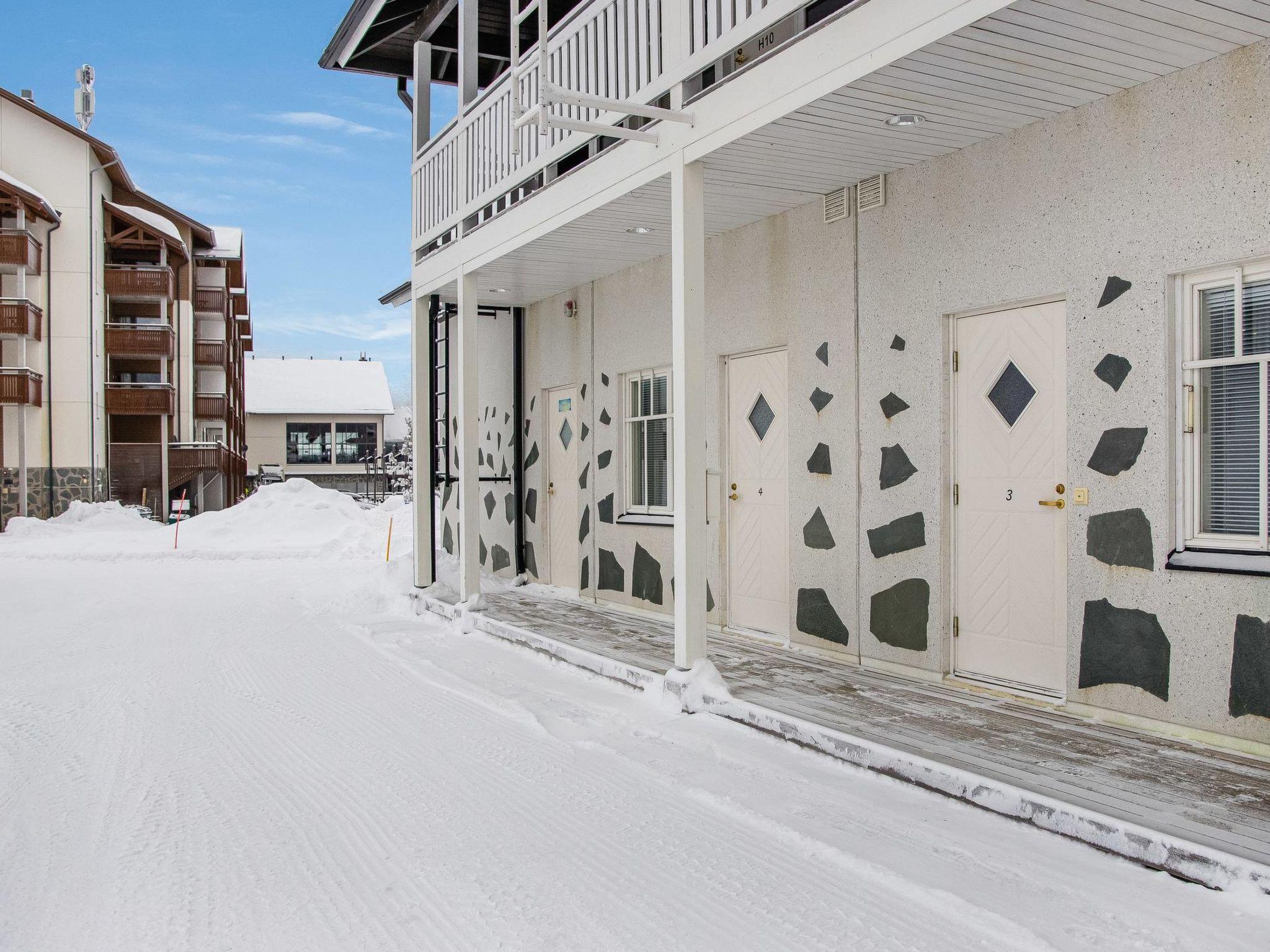 40 km north-east of Kolari, lake Ylläsjärvi 4 km, swimming beach 5,5 km. Apartment in an apartment hotel for 4 people, build 2005. Livingroom/kitchen with 2 beds, electric sauna, shower/toilet. There is no baking oven in the apartment.