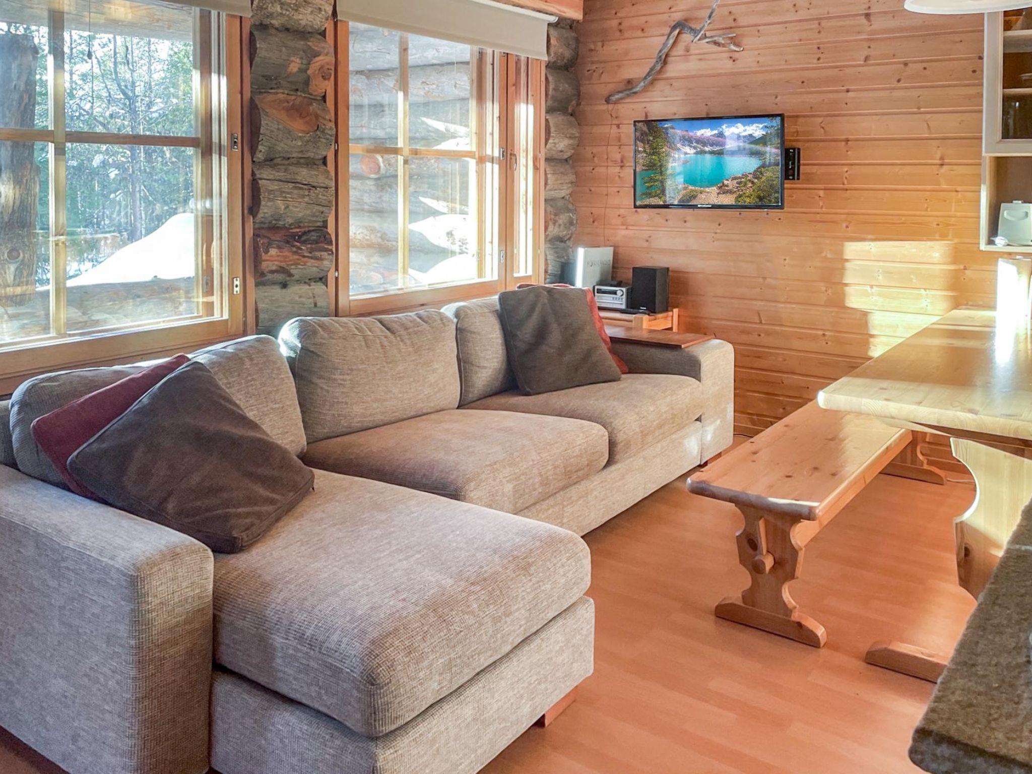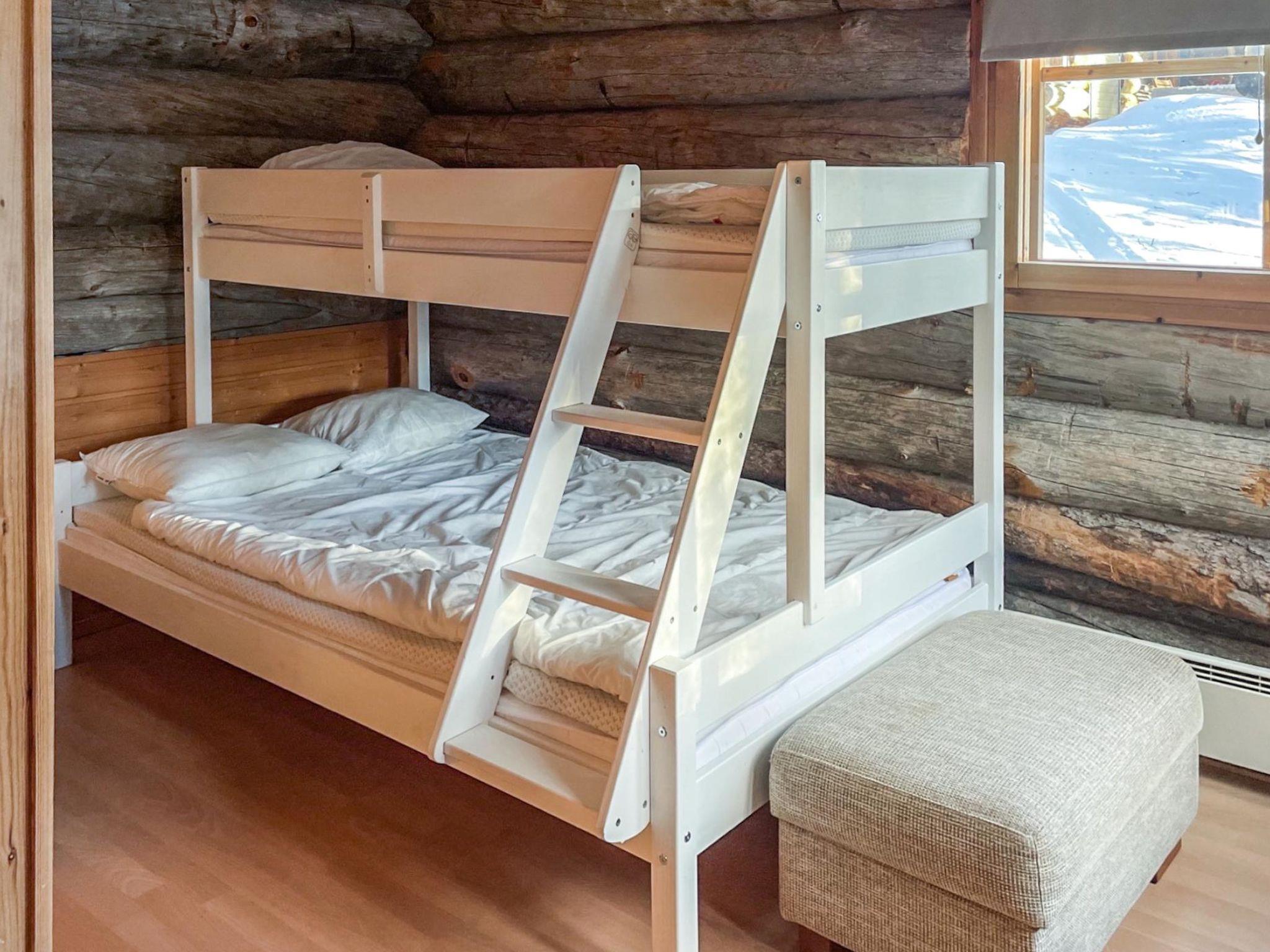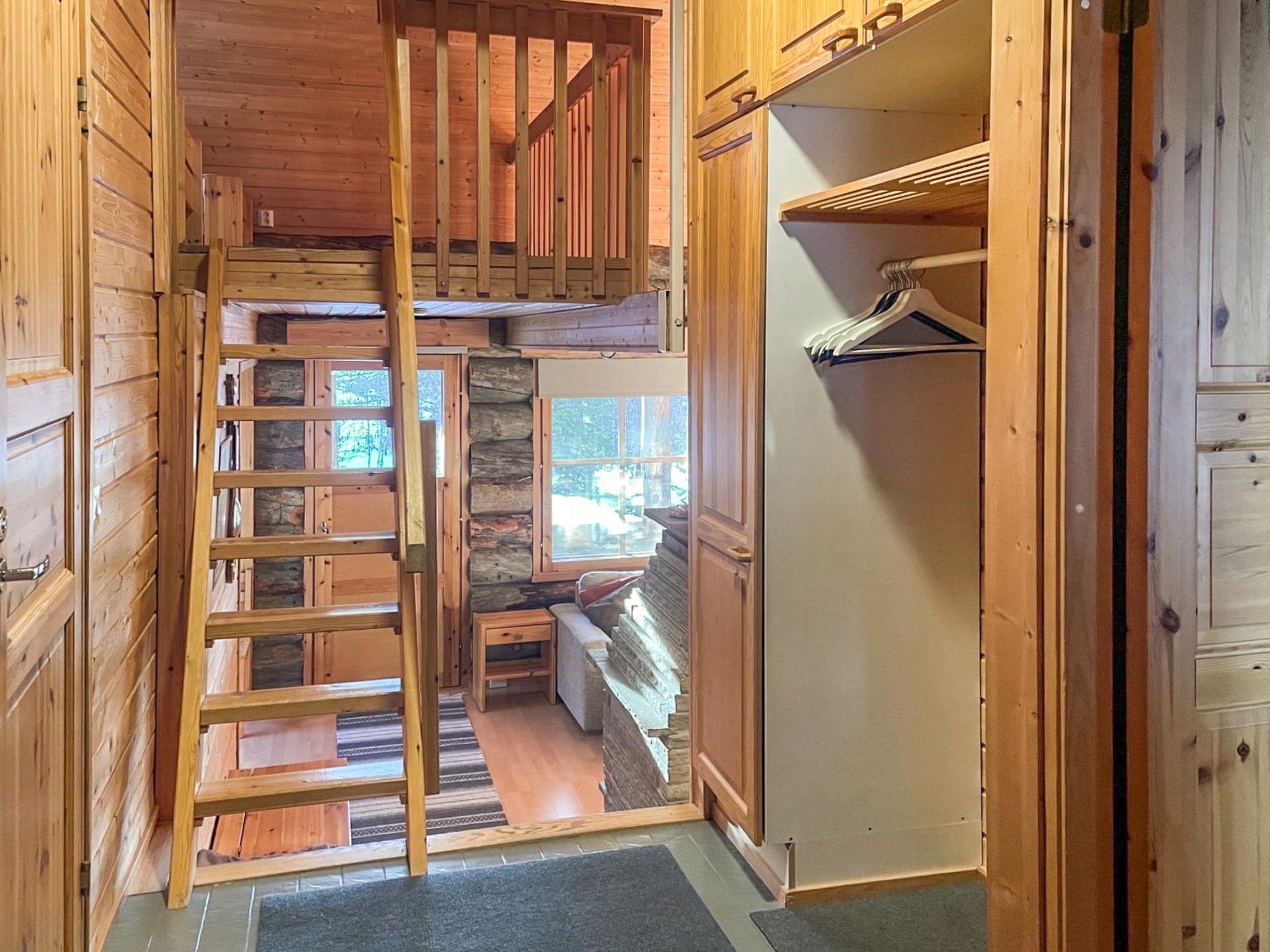 A row house apartment located 165 km north of Rovaniemi, in Ylläsjärvi village. Built 1989. Combined living room kitchen, bedroom with doublebed, alcove with bunk bed, loft (12 m², low room height, steep stairs) 2 beds, electric sauna, washing room/toilet, terrace, storeroom.