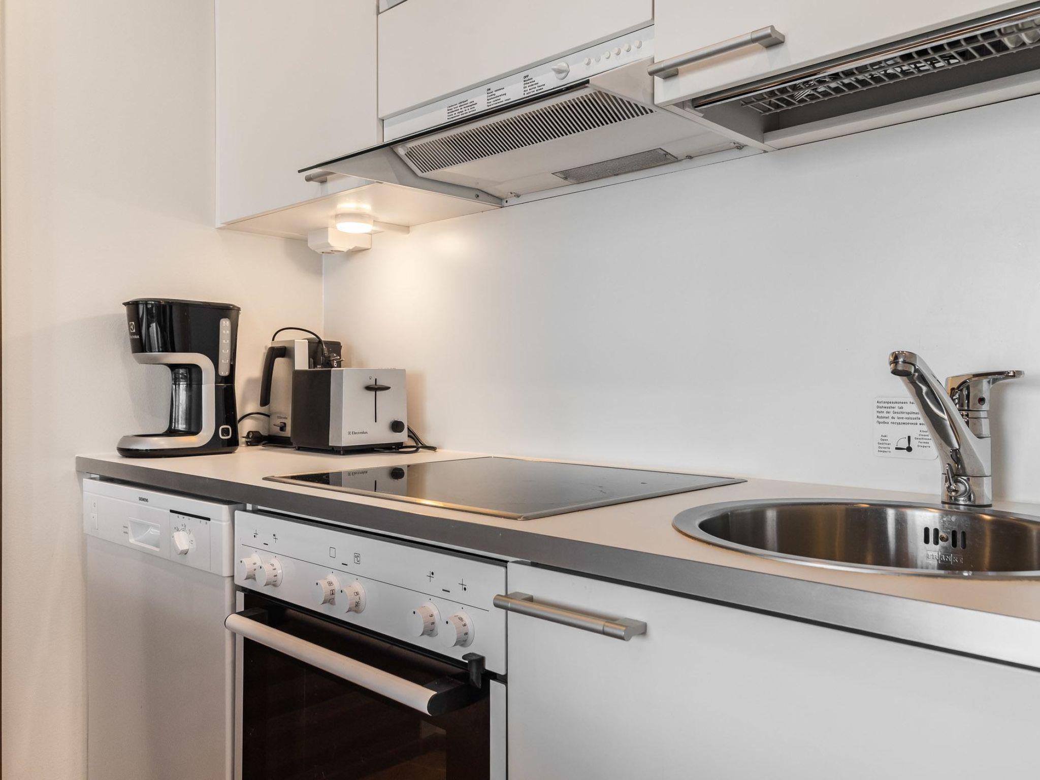 Apartment hotel located 165 km north of Rovaniemi, in the Ylläsjärvi village near the Sport Resort Ylläs. Built 2009. Livingroom/kitchen, one bedroom with two separate beds (80 x 200 cm, side by side in the photo but can be separated) and a desk for remote working, one sleeping alcove with a bunk bed (top bed 80 cm wide, bottom bed 120 cm wide), electric sauna, washing room, separate toilet.