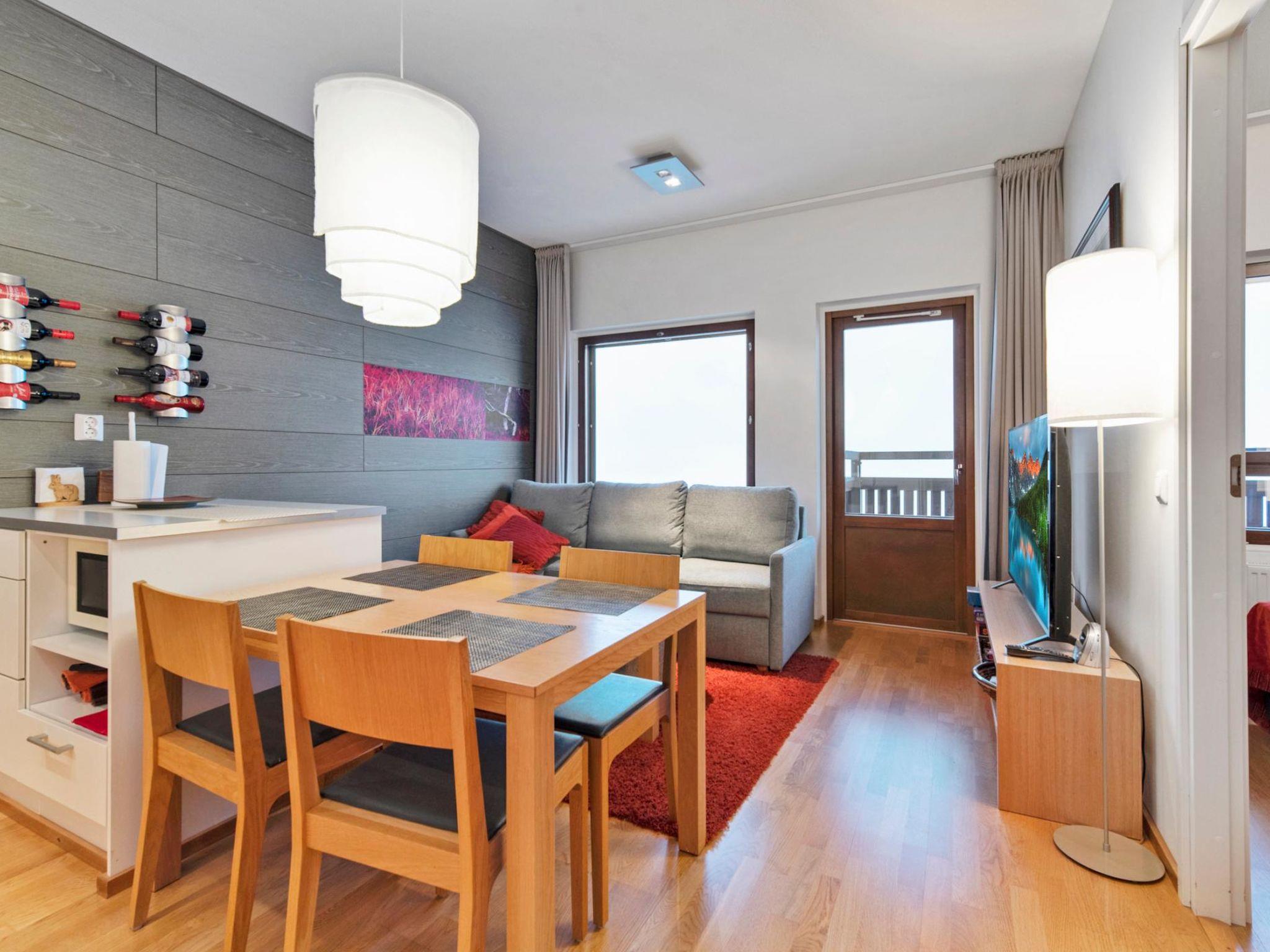 Apartment hotel located 165 km north of Rovaniemi, in the Ylläsjärvi village near the Sport Resort Ylläs. Built 2009. Livingroom/kitchen , one bedroom with two separate beds, one sleeping alcove with a bunk bed (top bed 80 cm wide, bottom bed 120 cm wide), electric sauna, washing room, separate toilet. In addition: Common ski maintenance room, apartment specific storage.