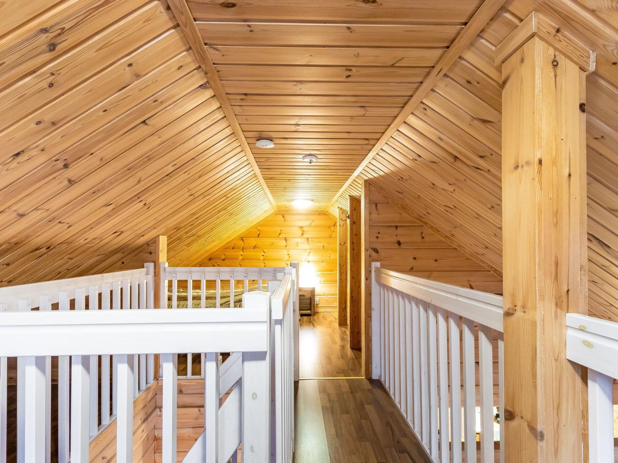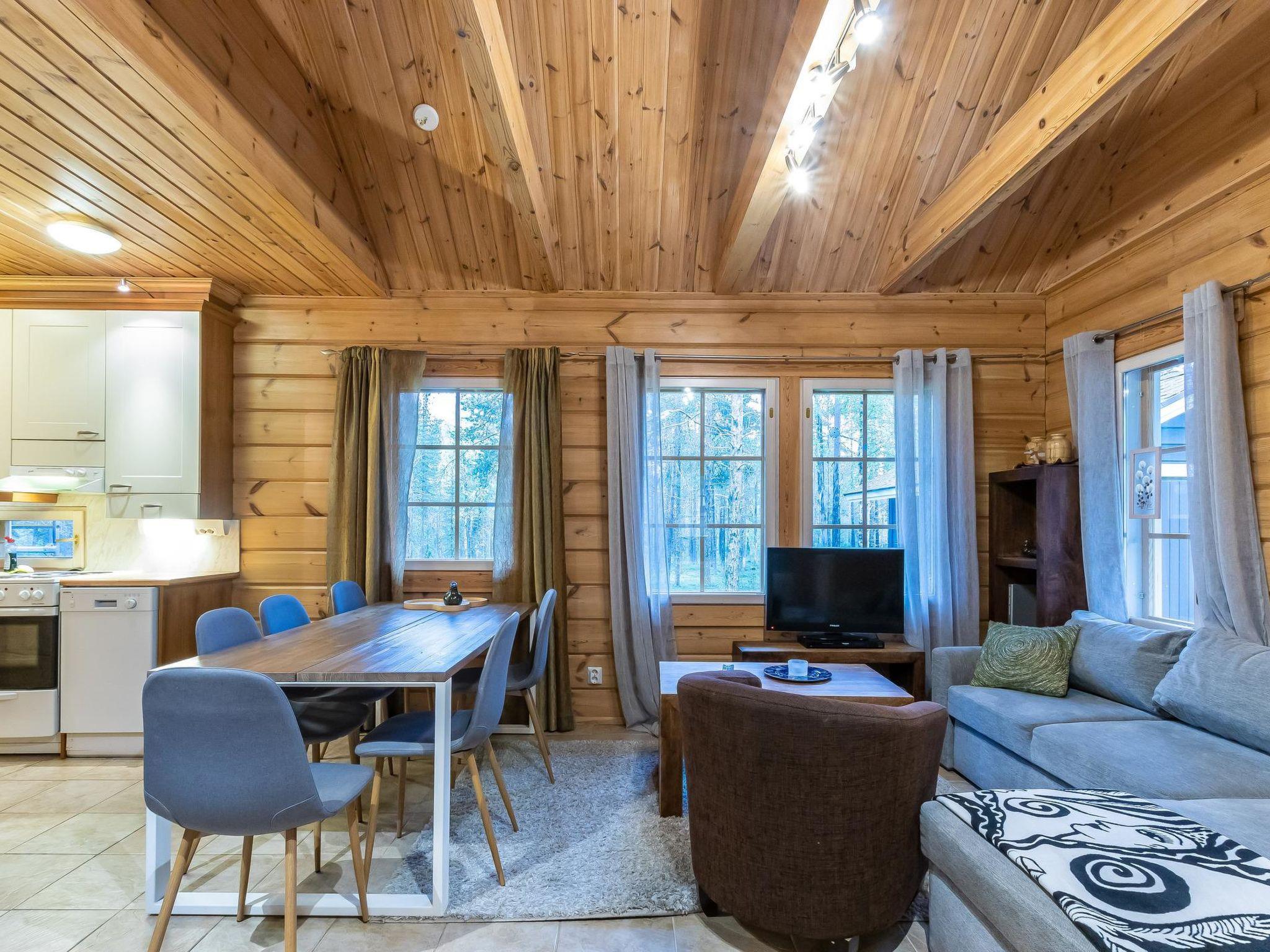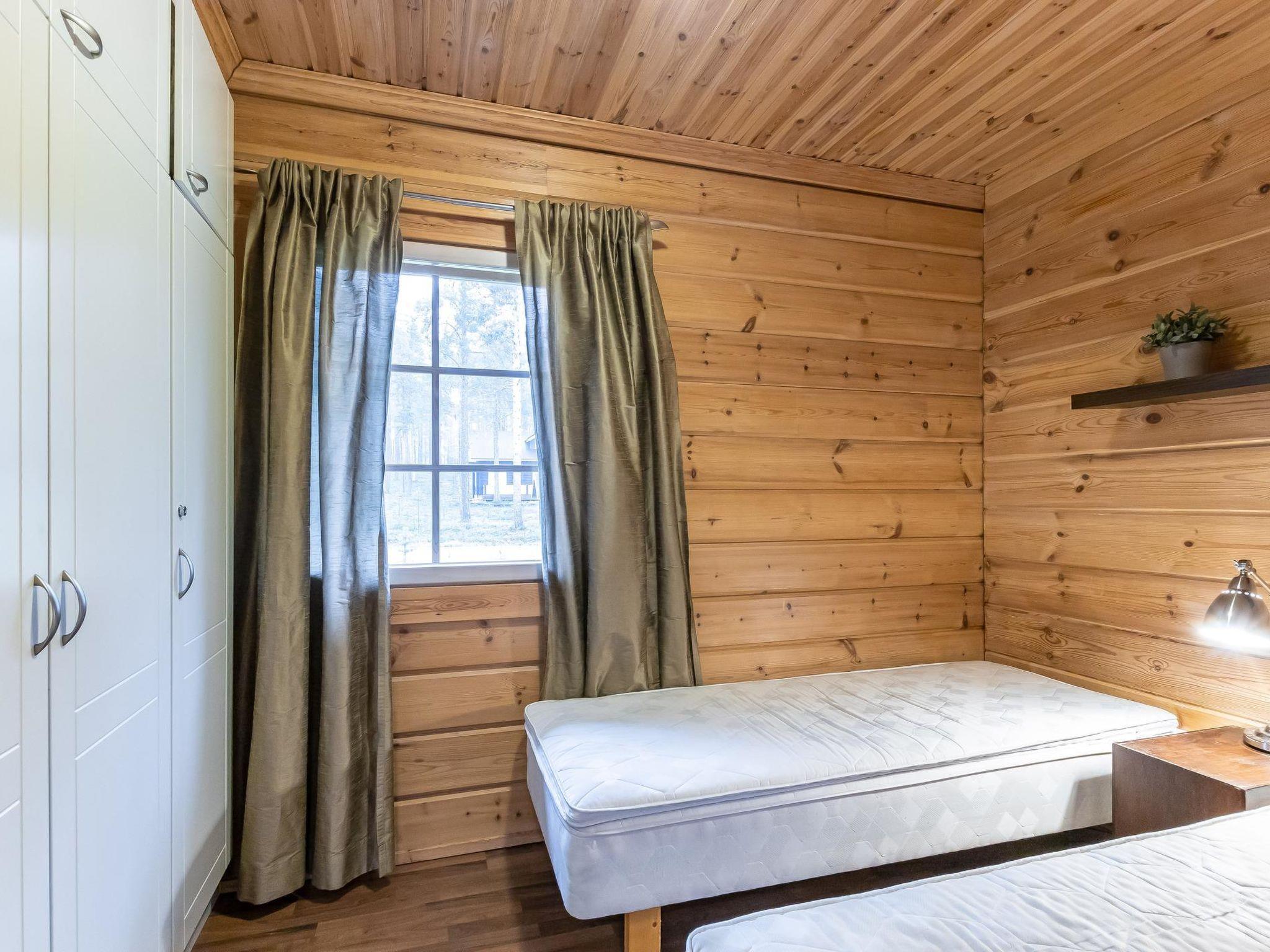 Semi-detached cottage 2008, large living room convertible sofa/bed, cooking corner, 2 bedrooms 2 beds in each, sleeping loft (17 m², highest point 2 m) 2 beds, sauna (electric stove), washroom. Child’s travel bed.