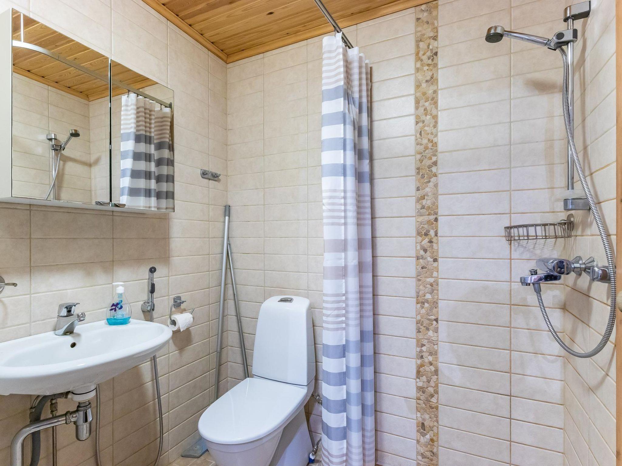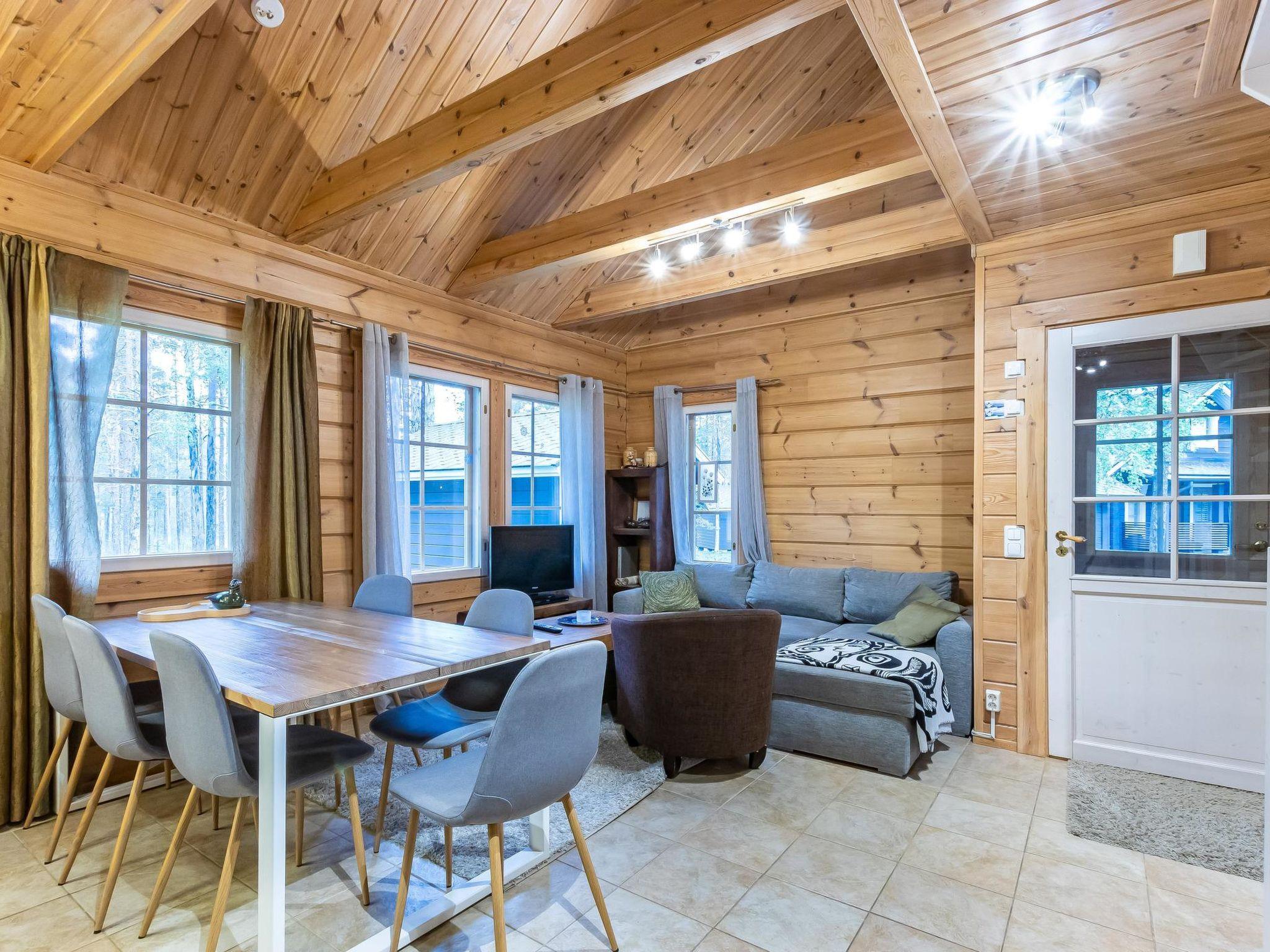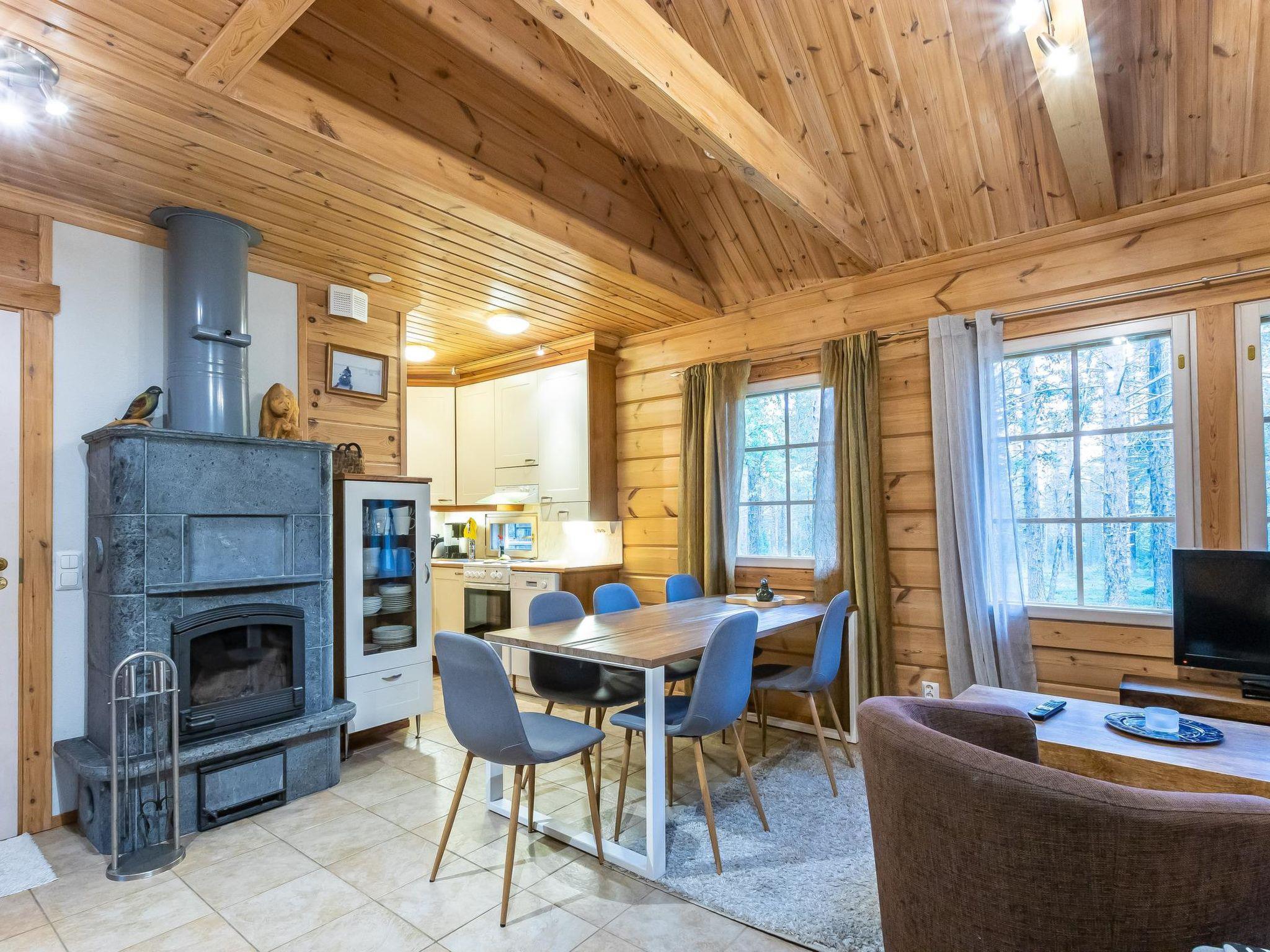 Semi-detached cottage 2008, large living room convertible sofa/bed, cooking corner, 2 bedrooms 2 beds in each, sleeping loft (17 m², highest point 2 m) 2 beds, sauna (electric stove), washroom. Child’s travel bed.