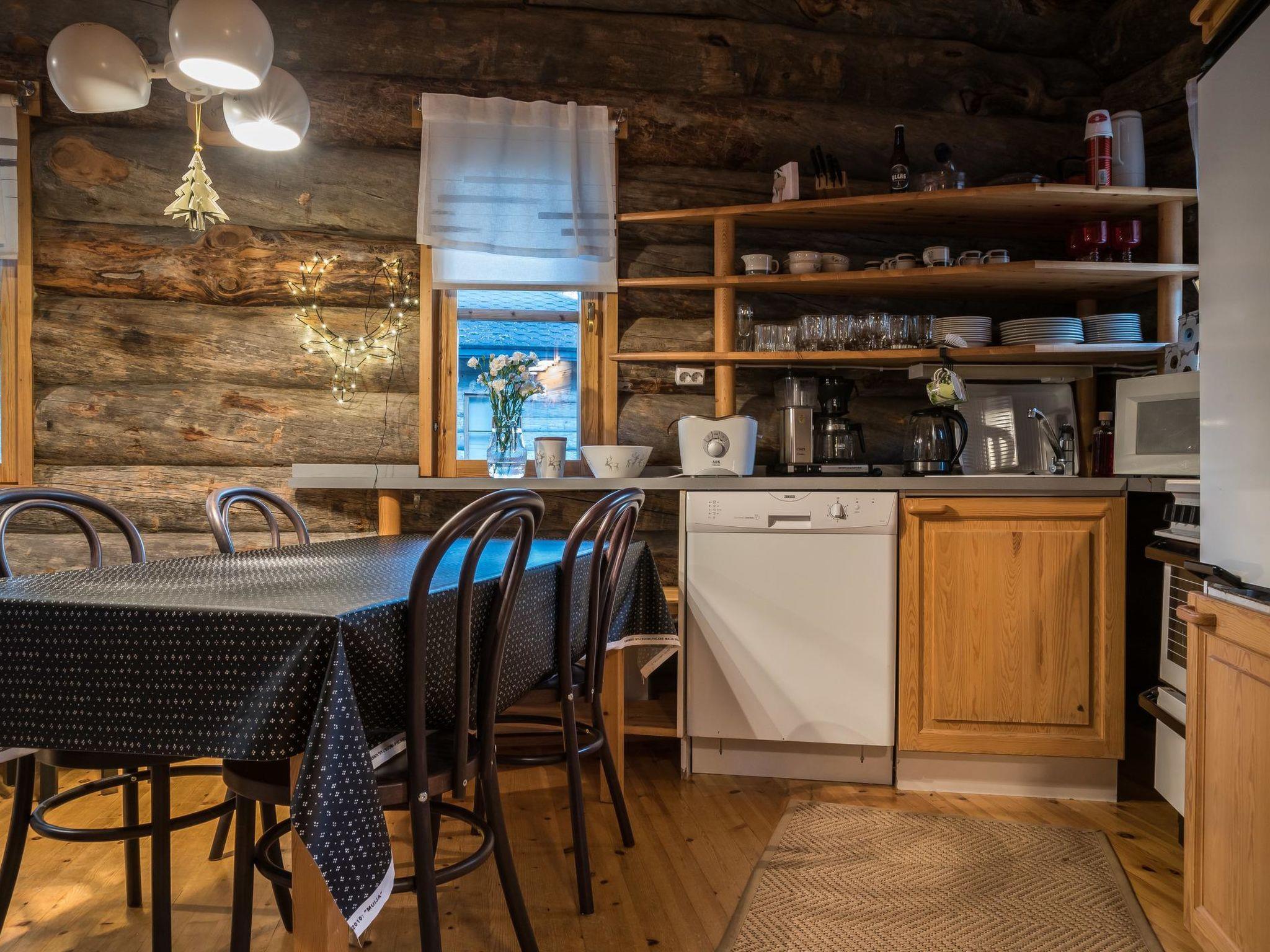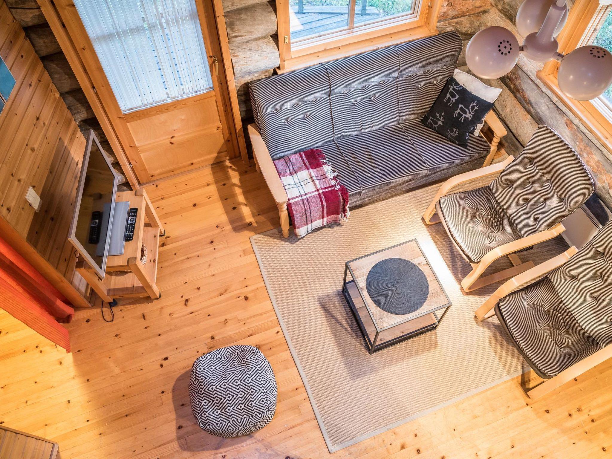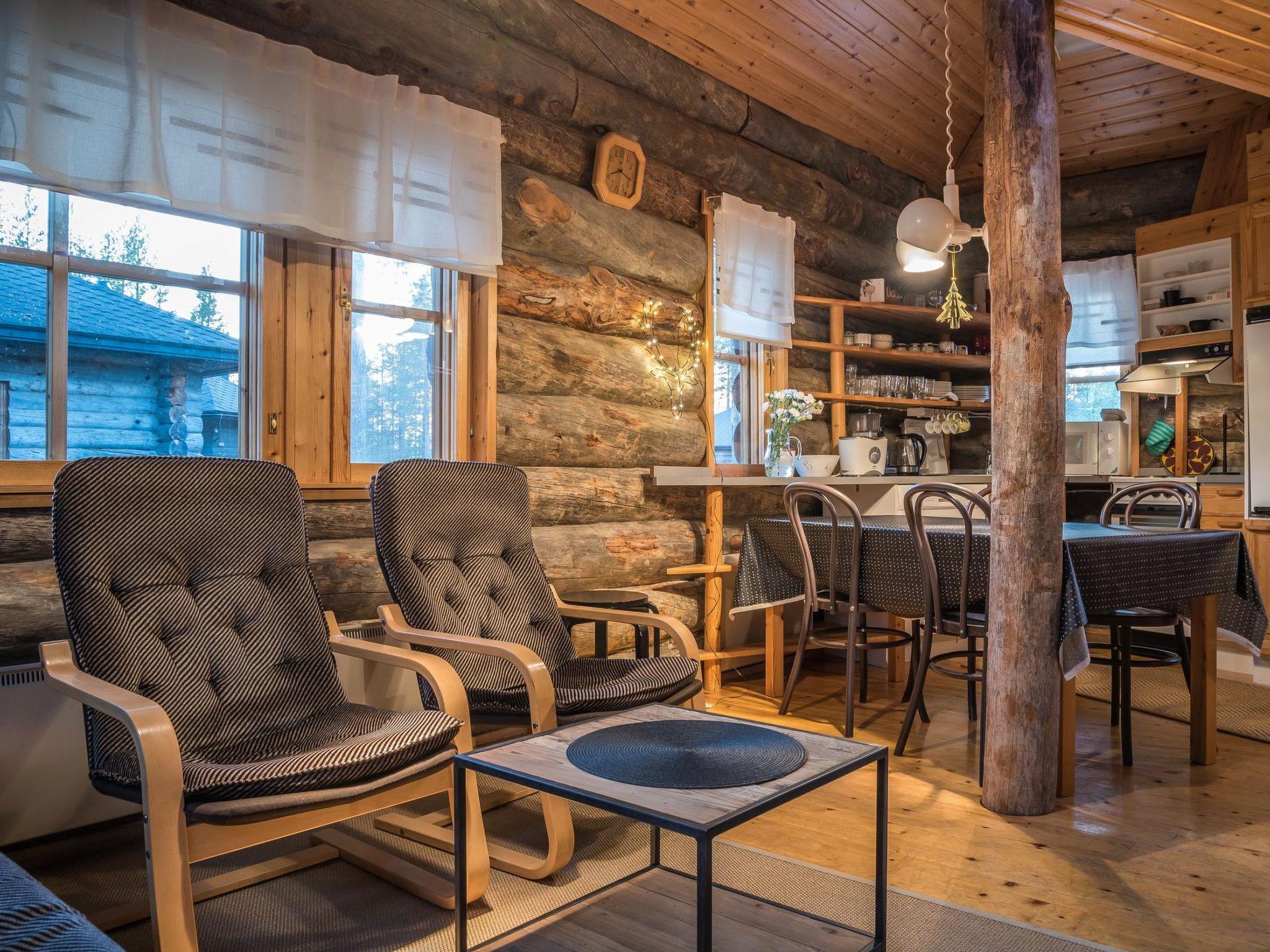 40 km north of Kolari, lake Ylläsjärvi 2 km, swimming beach 3,5 km. Log duplex apartment. Livingroom/kitchen, one bedroom with double bed, loft (25 m²) with one bed and three mattresses, electric sauna, shower/toilet. Open porch.