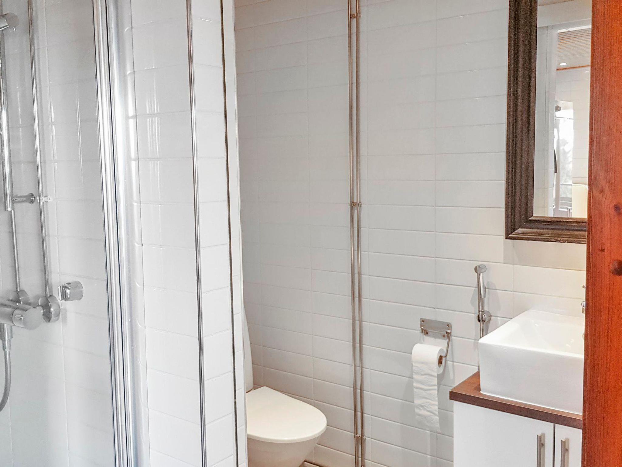 40 km north-east of Kolari, lake Ylläsjärvi 4 km, swimming beach 5,5 km. Appartment in a appartment hotel, built 2008. Livingroom/kitchen, 1 bedroom with a double bed (width 180 cm), 2 bedrooms each with two separate beds, sleeping alcove with bunk bed, electric sauna, washing room/toilet. Tumble dryer.