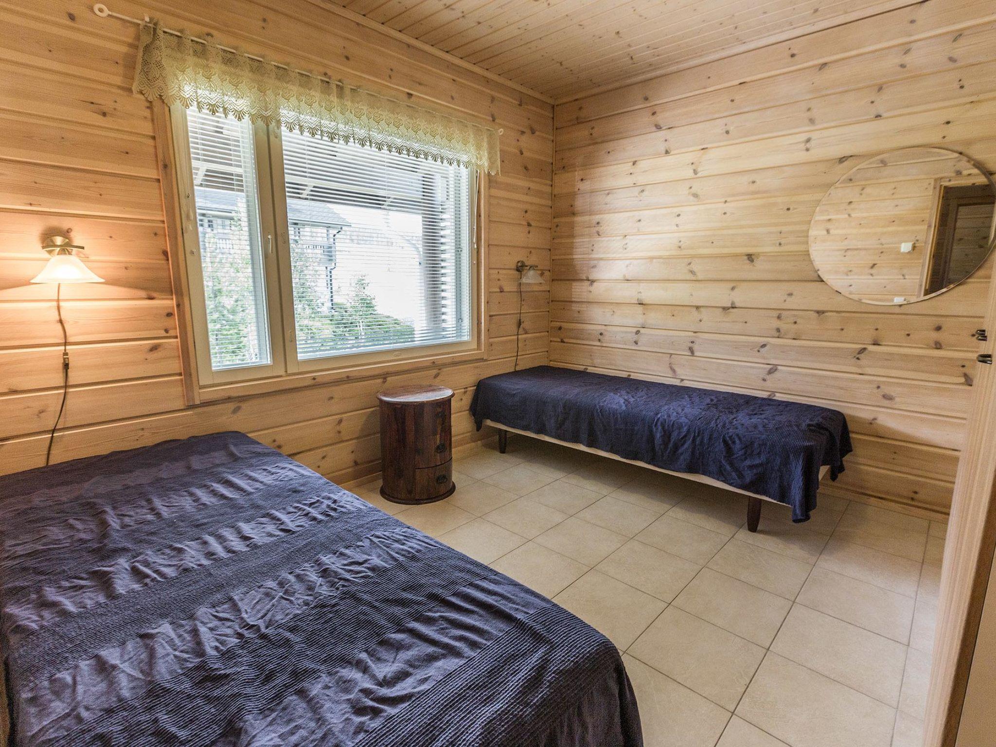 40 km north-east of Kolari, lake Ylläsjärvi 3,5 km, swimming beach 5,5 km. Wooden row-house apartment, built 2008. Livingroom/kitchen, three bedrooms each with two separate beds, loft (7 m²) with four separate beds, electric sauna, shower/toilet and separate toilet. Basement level: utility room +toilet, heated garage, ski maintenance space. Please notice that there is no fireplace.
