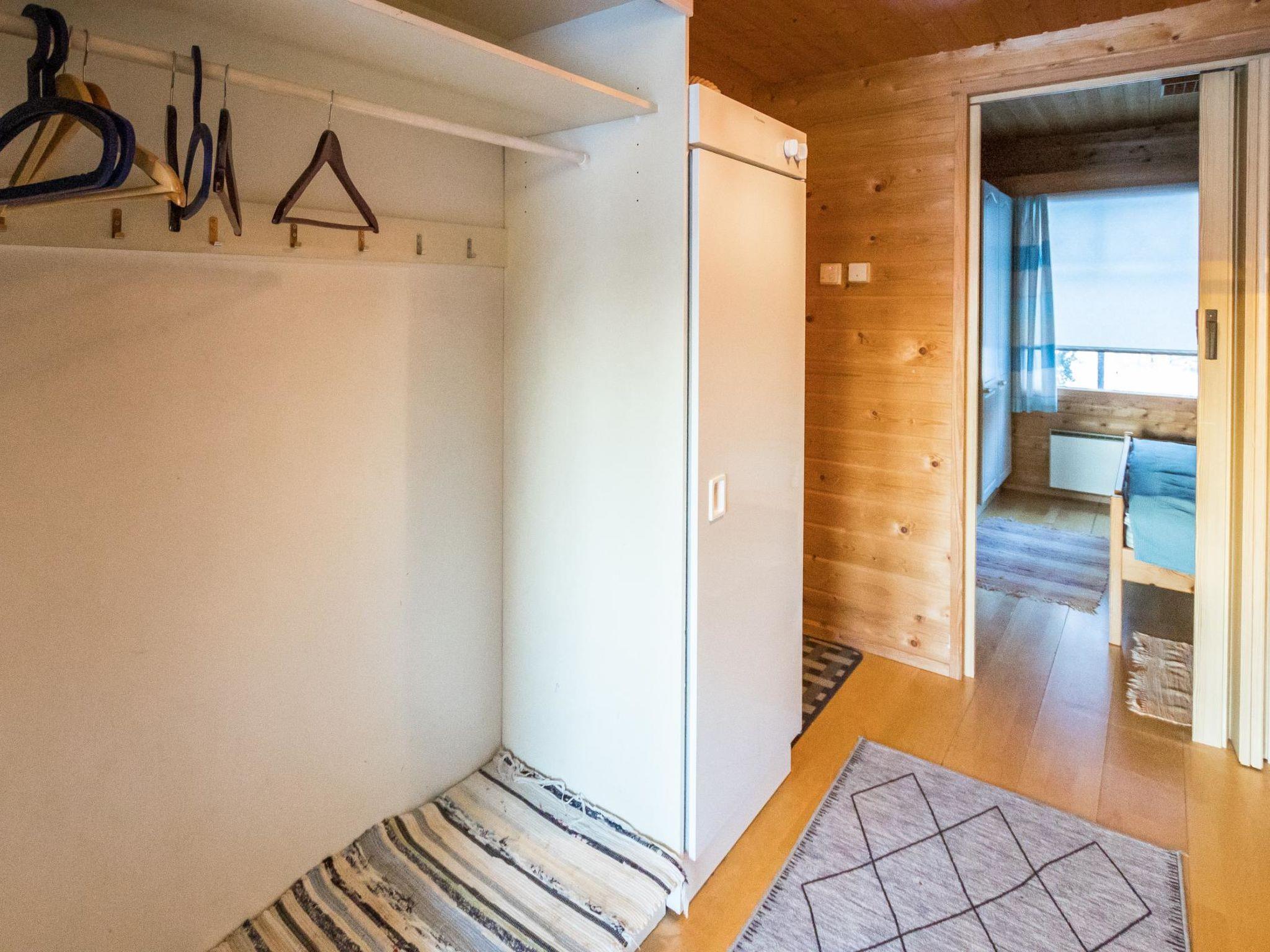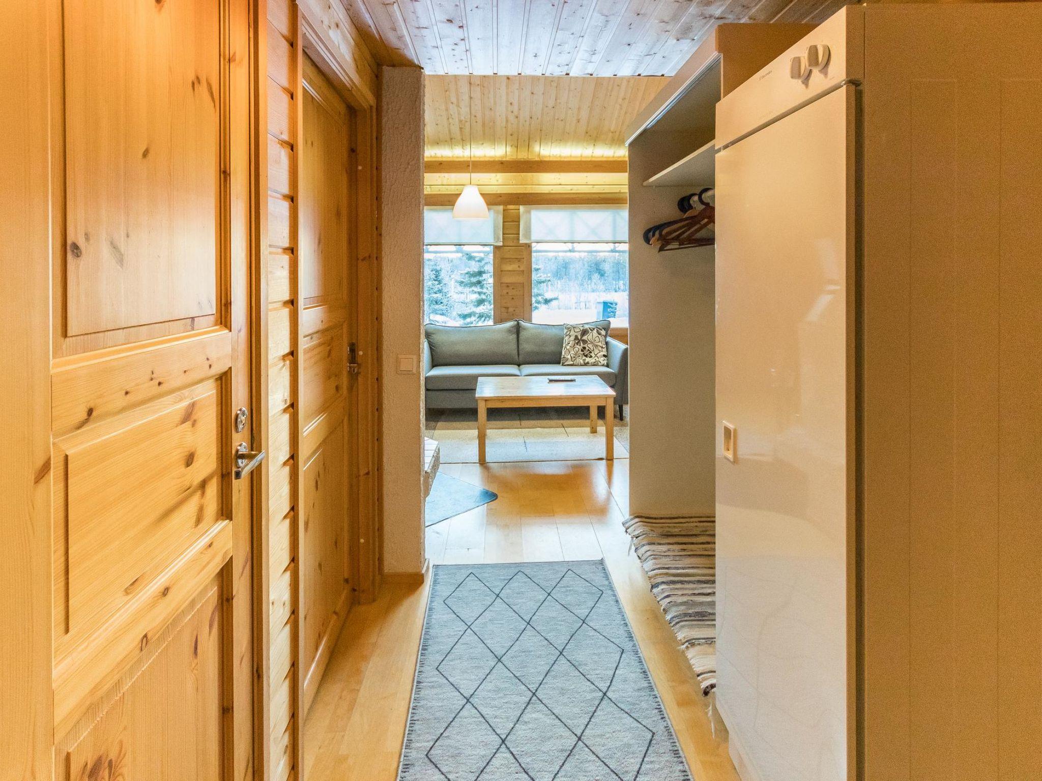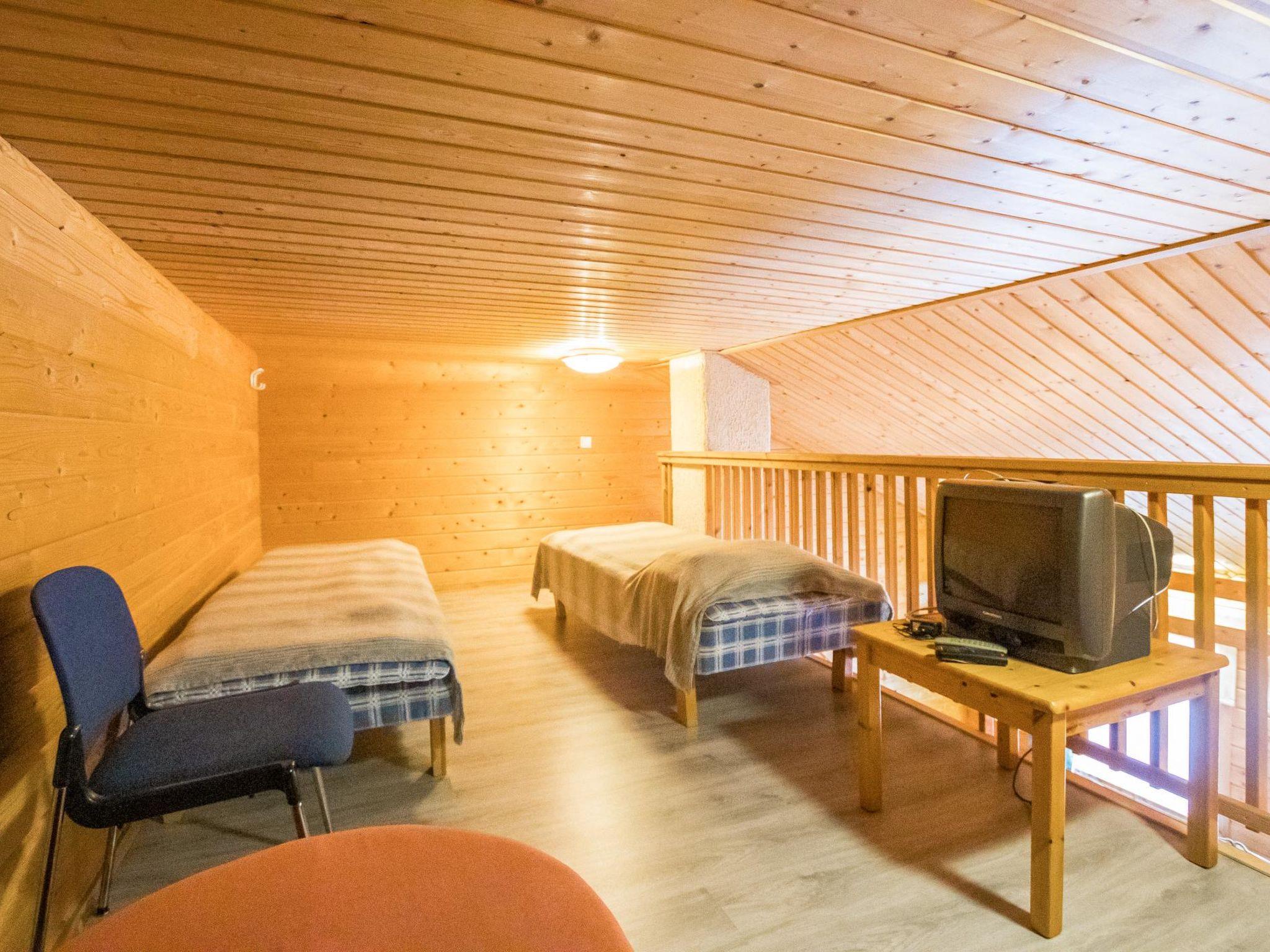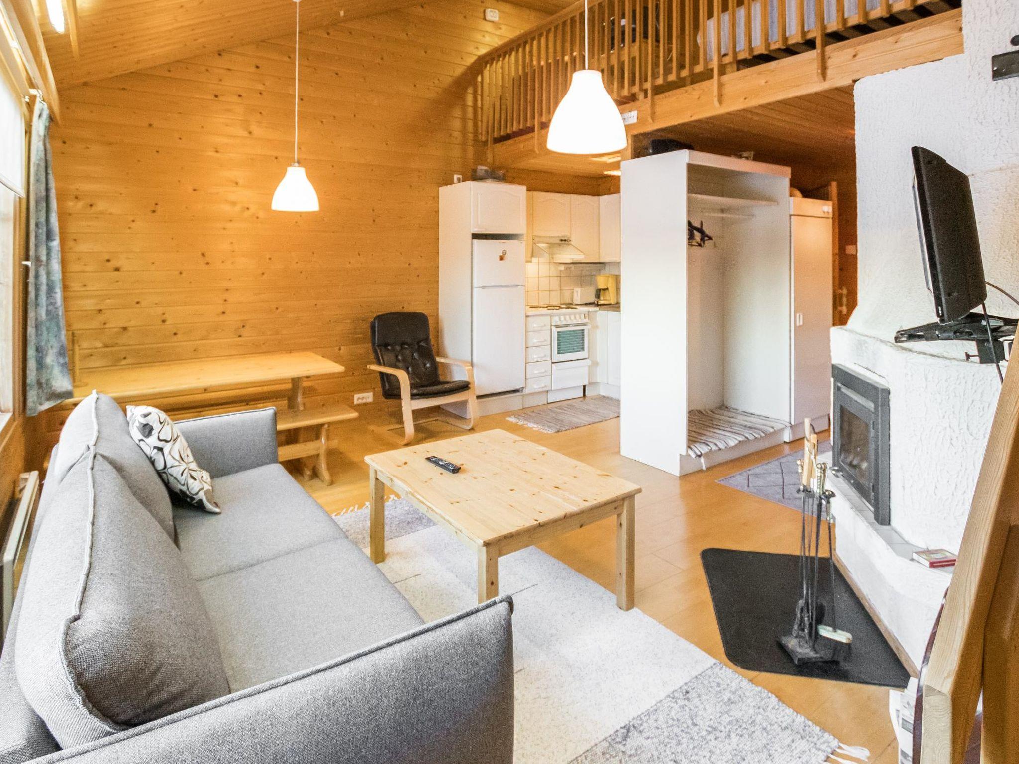 A row house apartment located 165 km north of Rovaniemi, in Ylläsjärvi village, near new scenic road. Built 1989. Combined living room kitchen, bedroom with double bed, loft (12 m²) 2 beds and sofa bed, electric sauna, washing room, toilet.