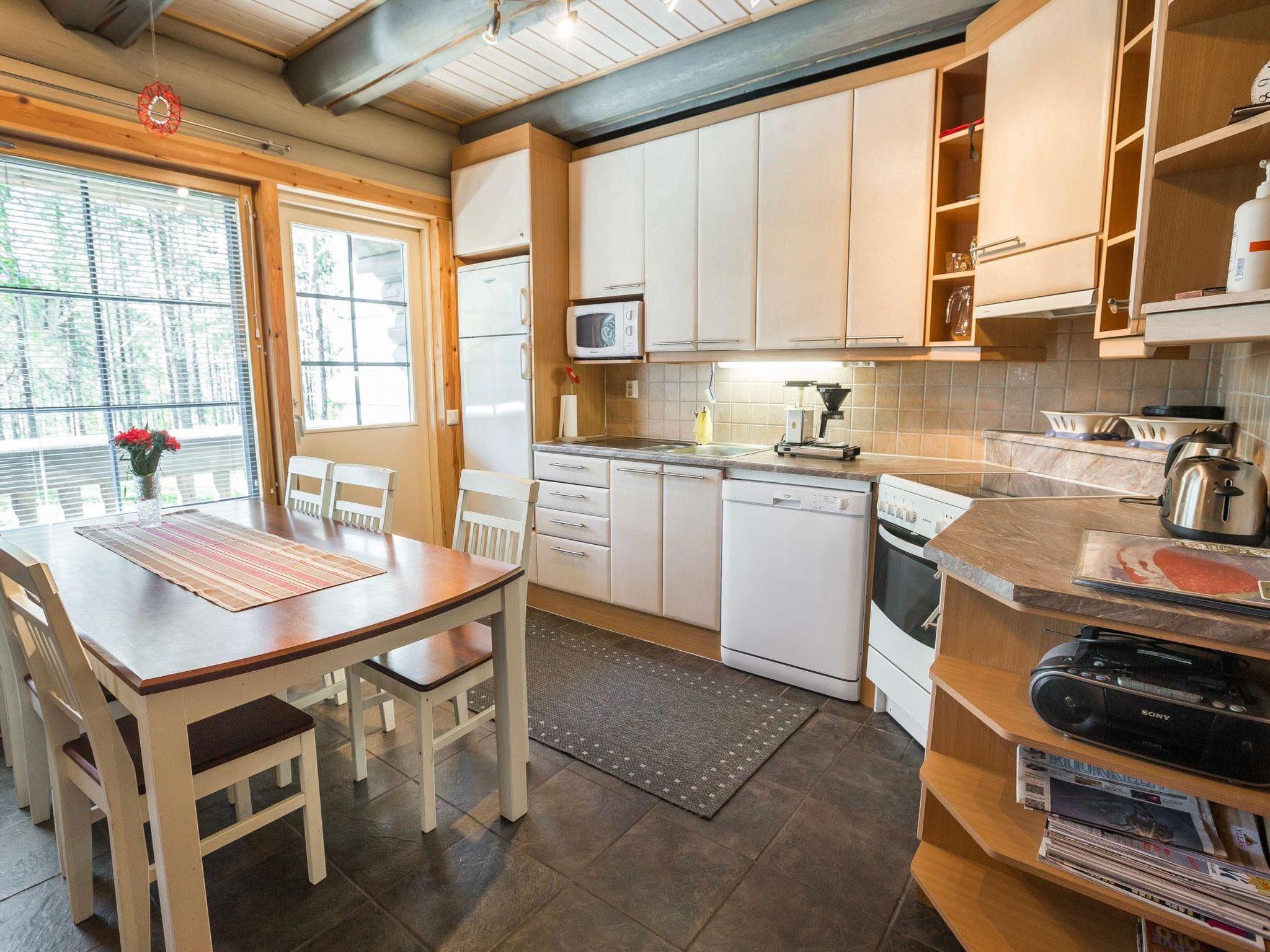 40 km north-east of Kolari, lake Ylläsjärvi 3 km, swimming beach 4,5 km. Log duplex apartment. Area 100 m² of which 30 m² on the loft. Livingroom/kitchen, two bedrooms each with two separate beds, loft with a large alcove with four beds, in loft TV for DVDs. Electric sauna, shower, separate toilet. Two porch, Wifi
